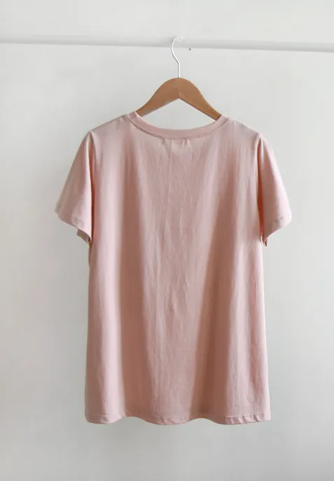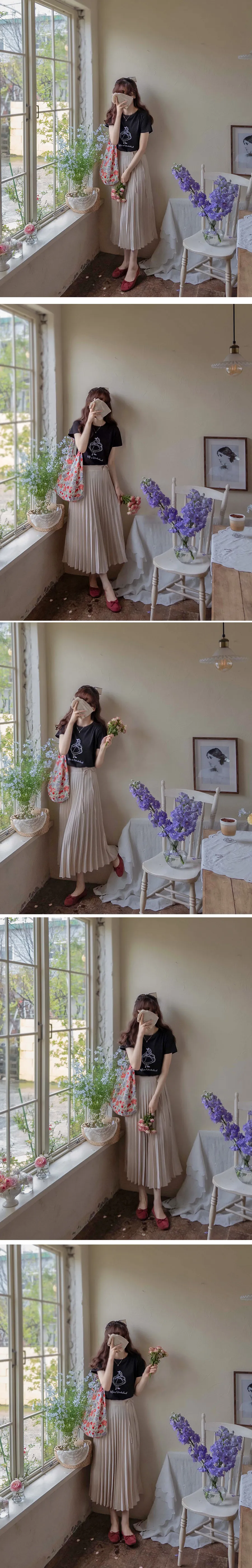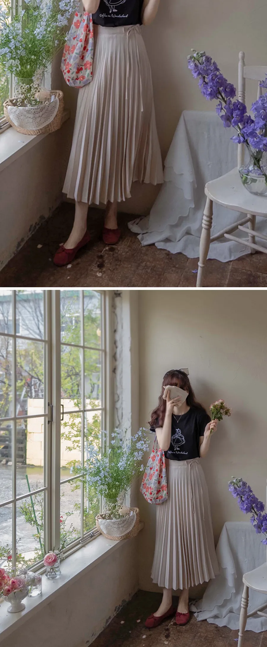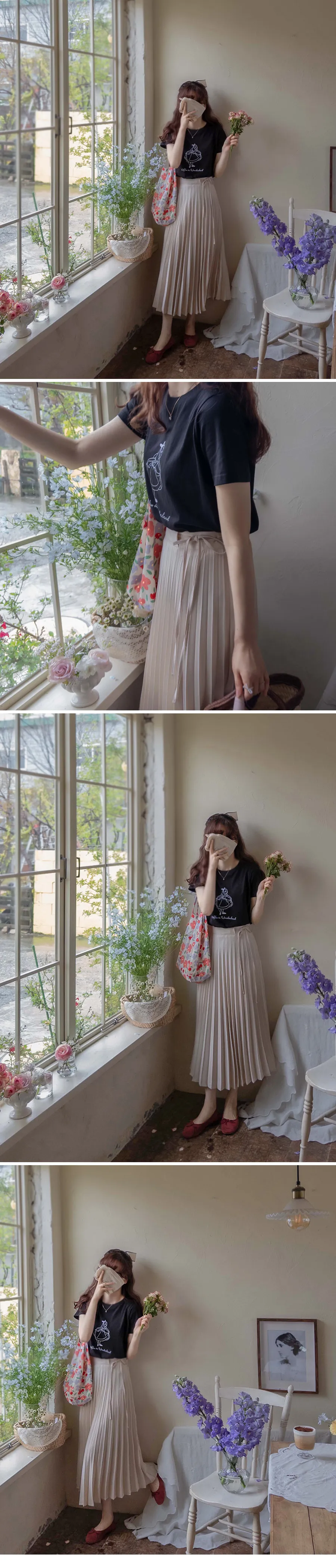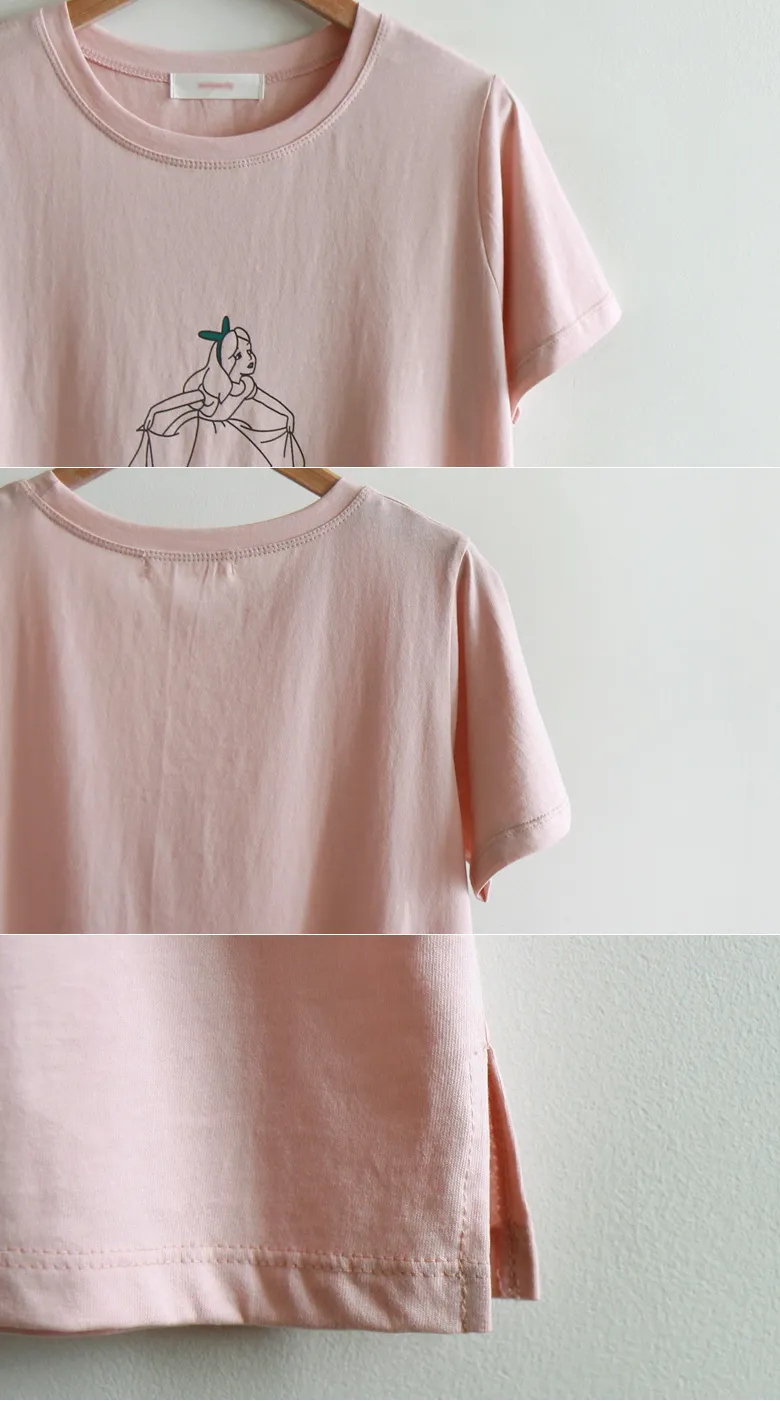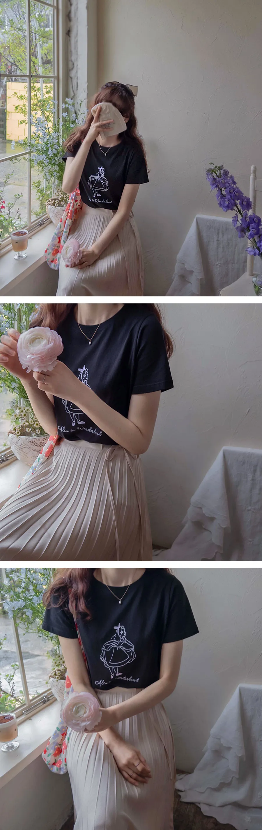 【柔和色調的T卹,穿起來很舒服】【可愛的愛麗絲印花】【可以換成不同的顏色】【印花搭配起來很活潑】【底部的開叉也很漂亮】 [從現在起整個季節都可以使用。][