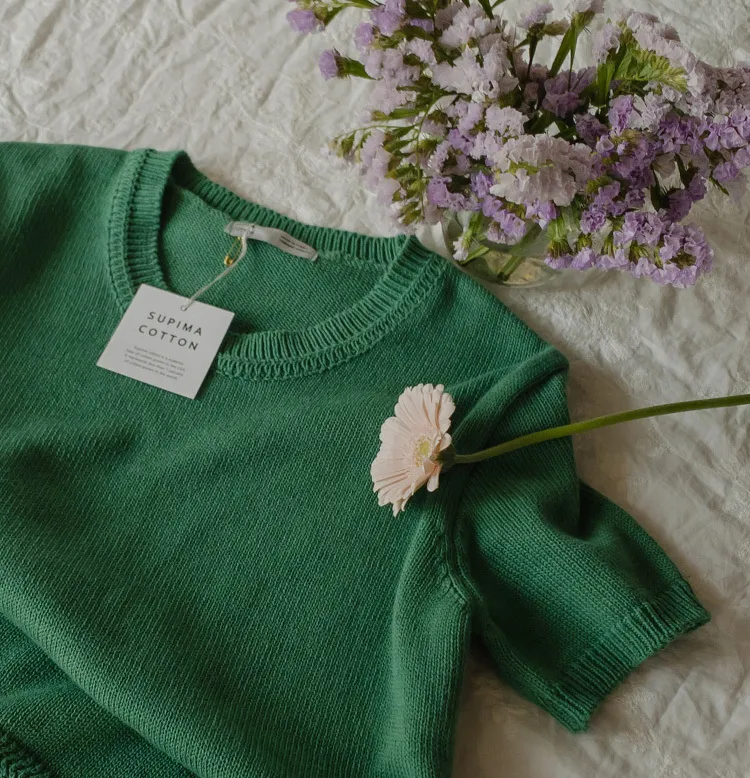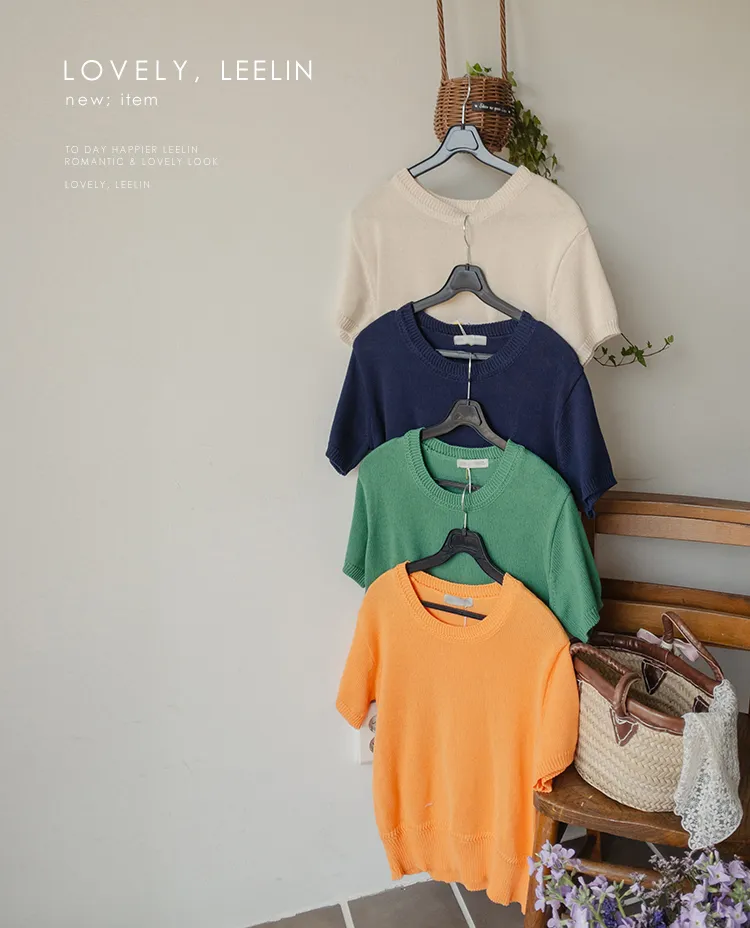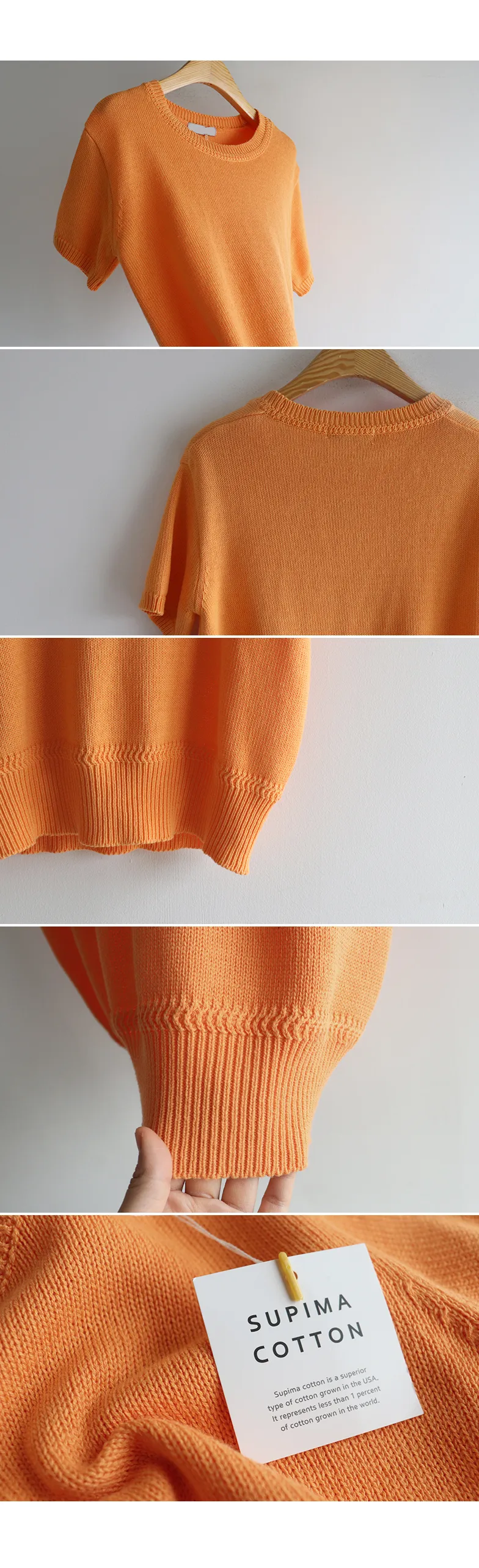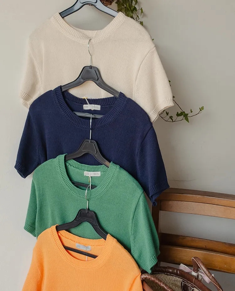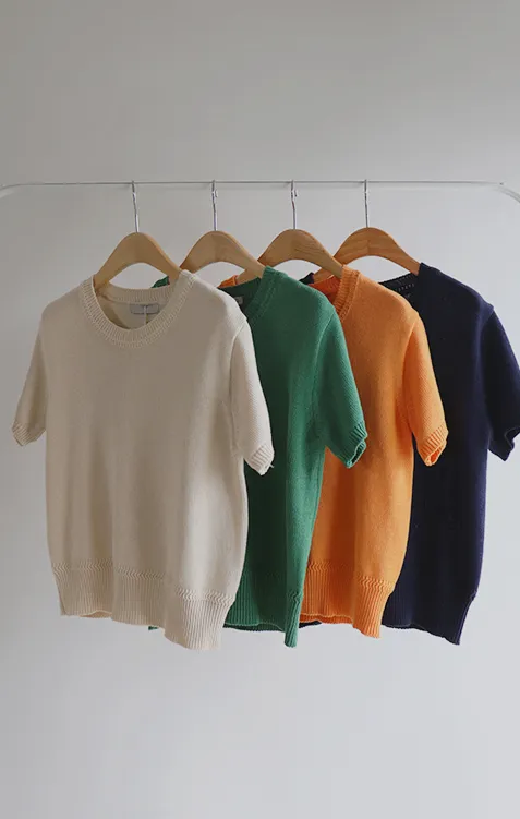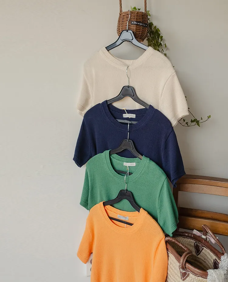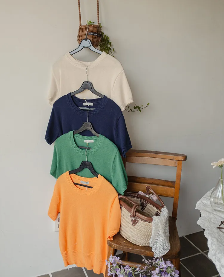 【從現在開始整個夏天-時尚短袖針織♡】【舒適觸感!!】【100%棉布料,奢華光澤】【簡潔設計】
