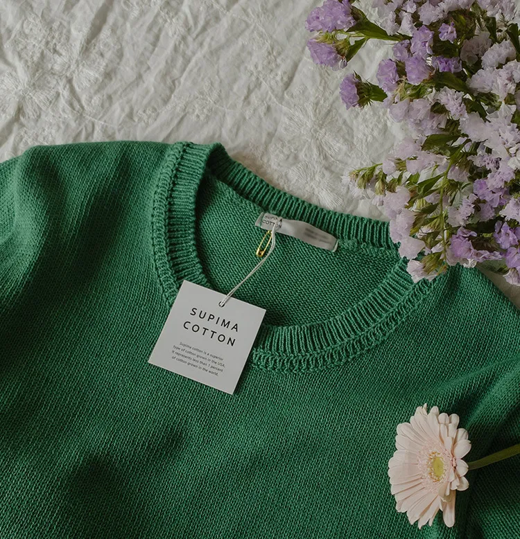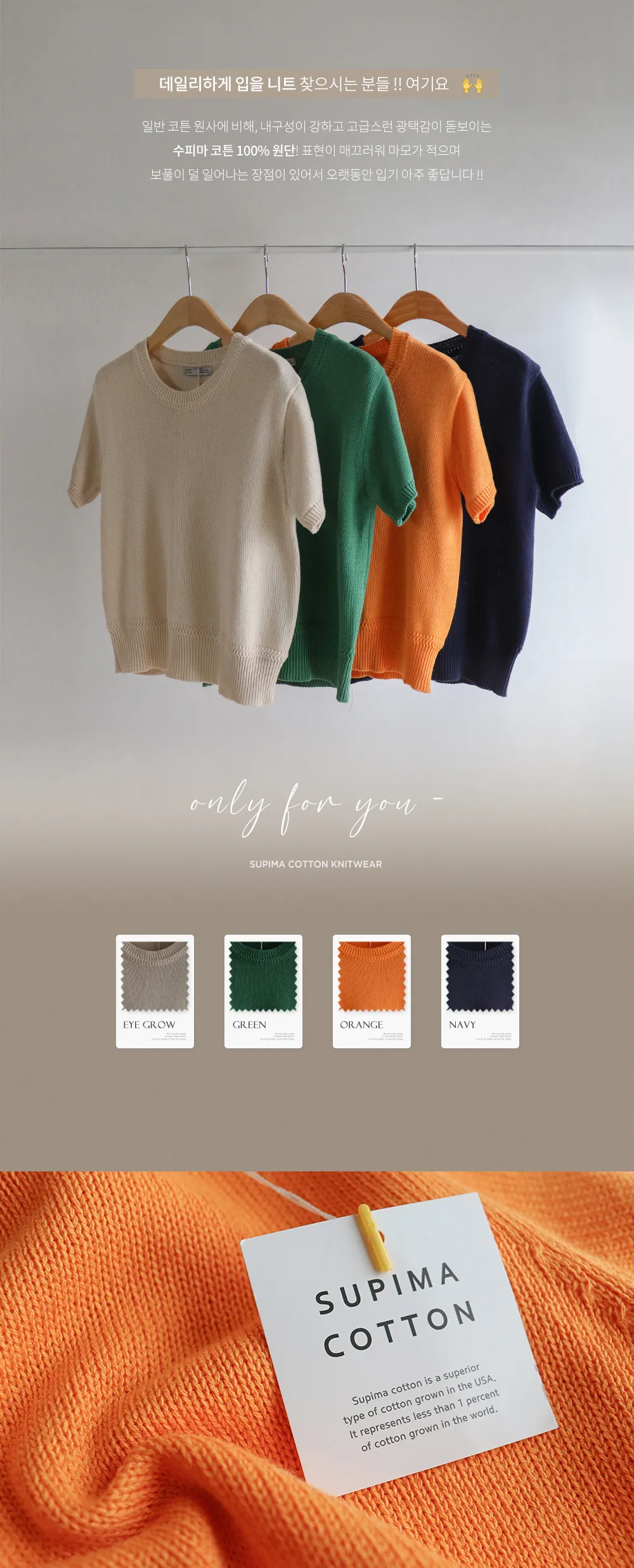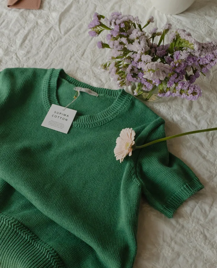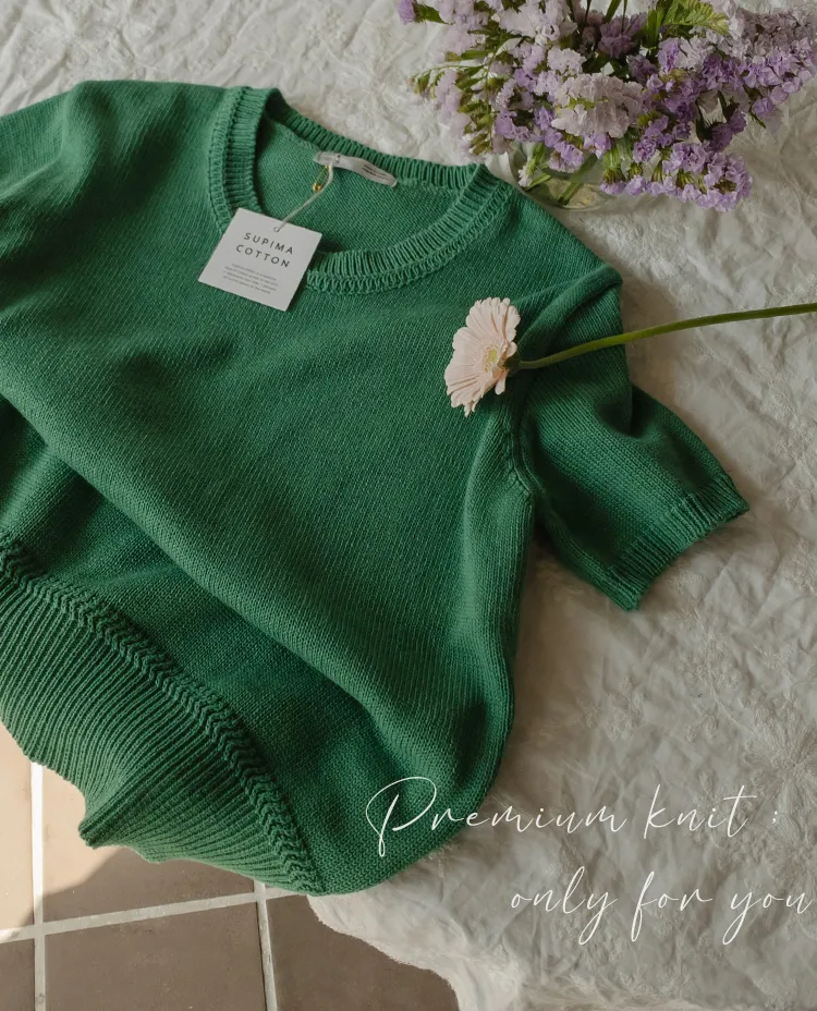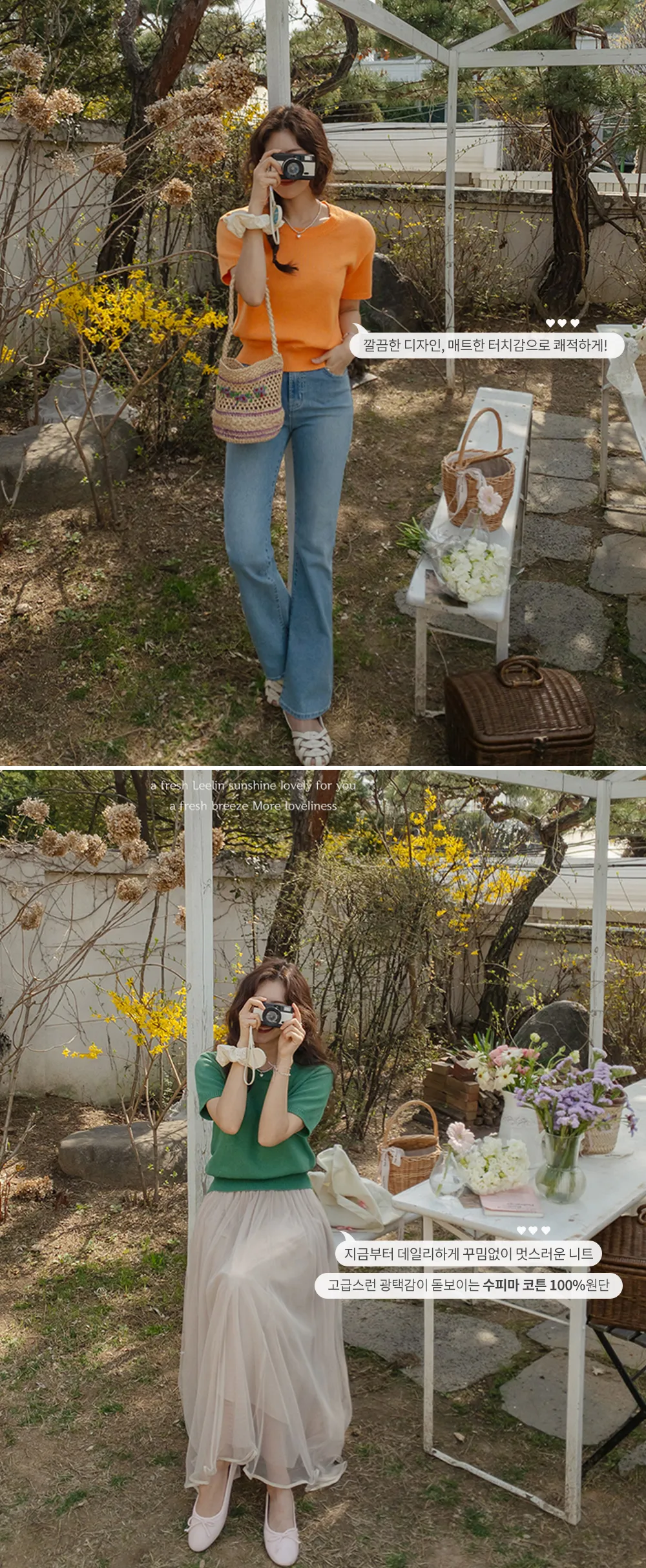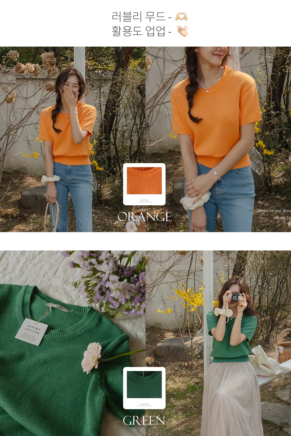 【從現在開始整個夏天-時尚短袖針織♡】【舒適觸感!!】【100%棉布料,奢華光澤】【簡潔設計】
