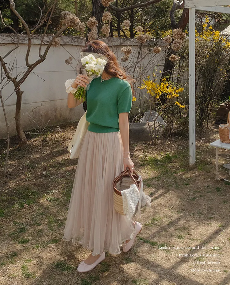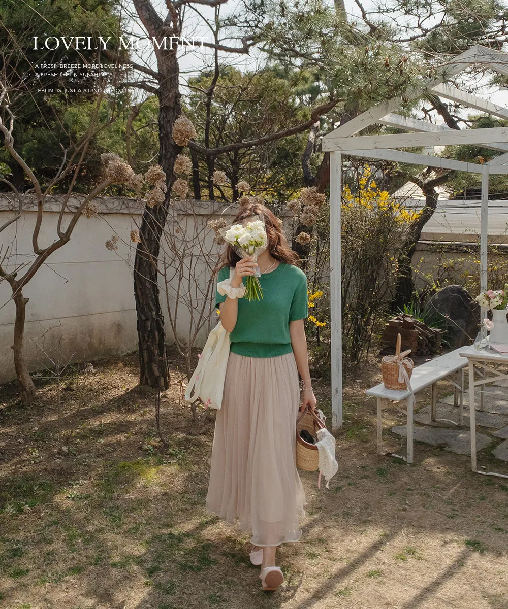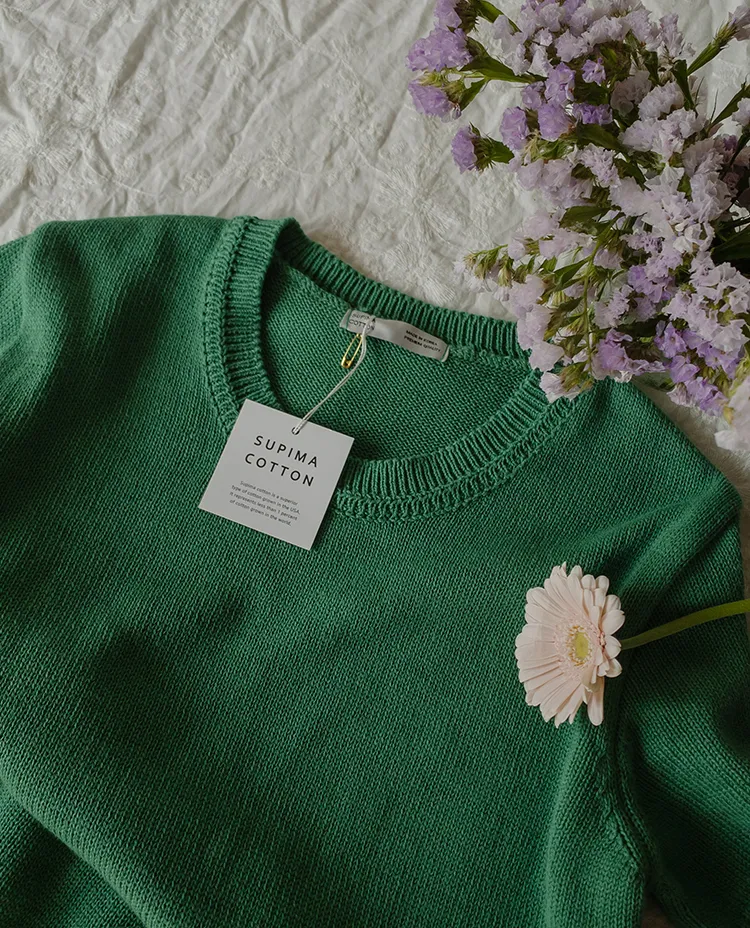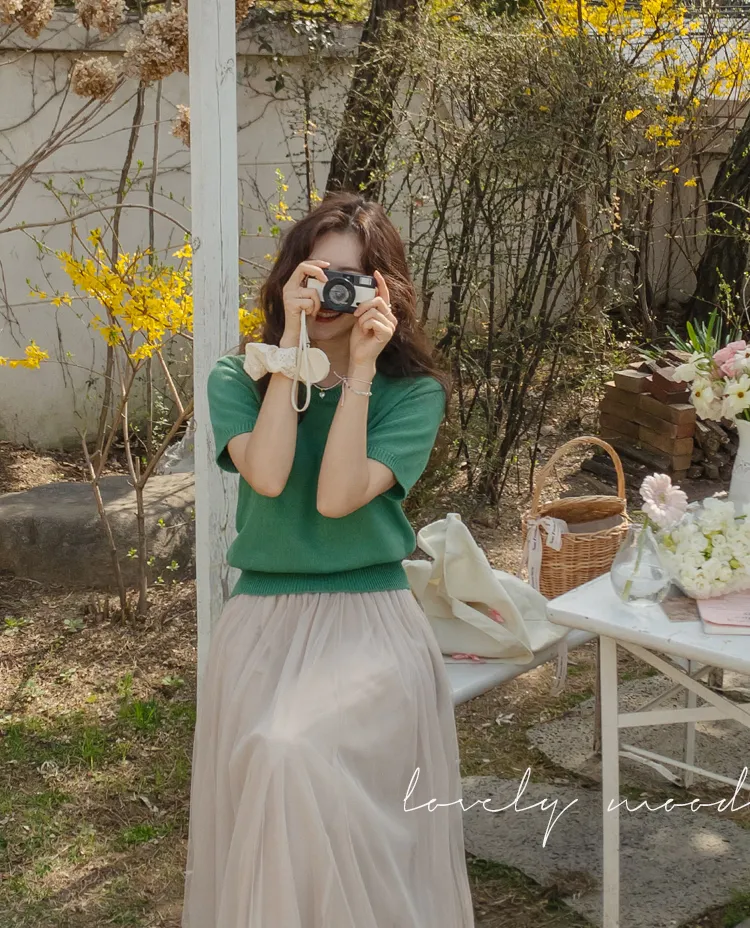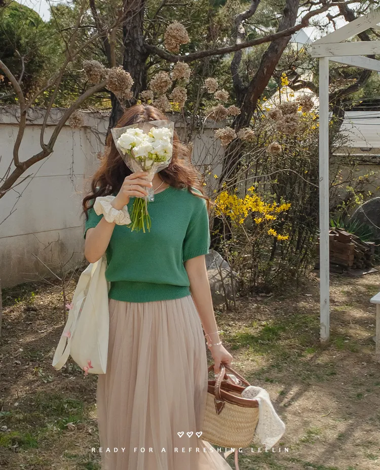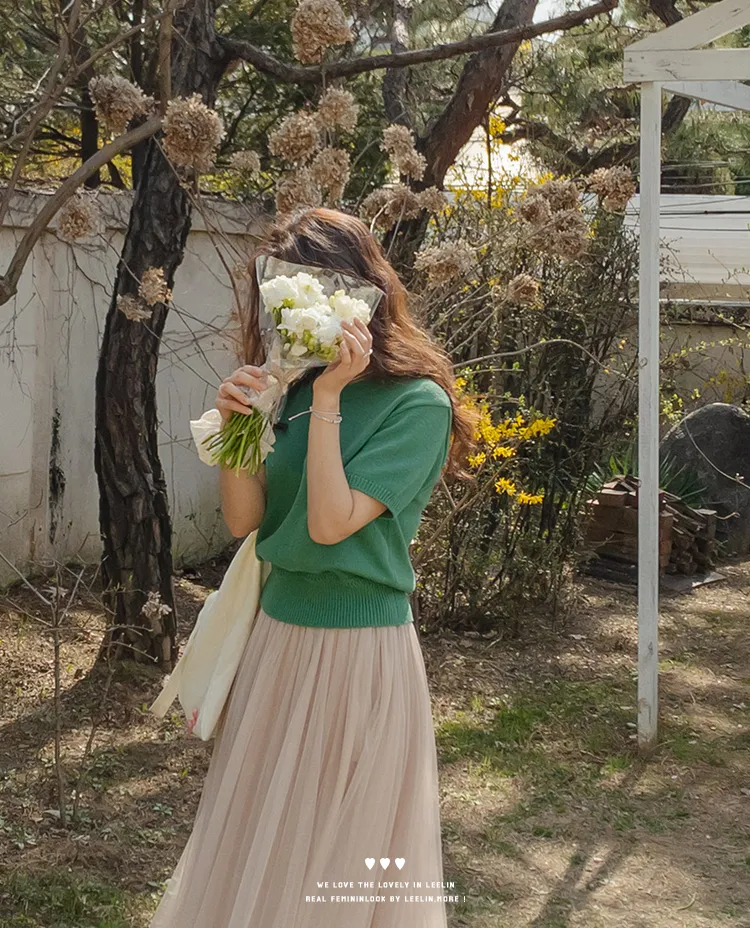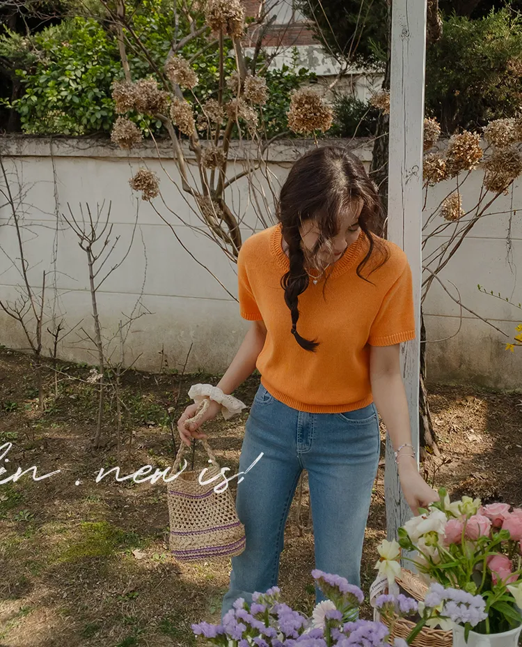 【從現在開始整個夏天-時尚短袖針織♡】【舒適觸感!!】【100%棉布料,奢華光澤】【簡潔設計】
