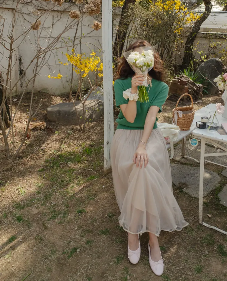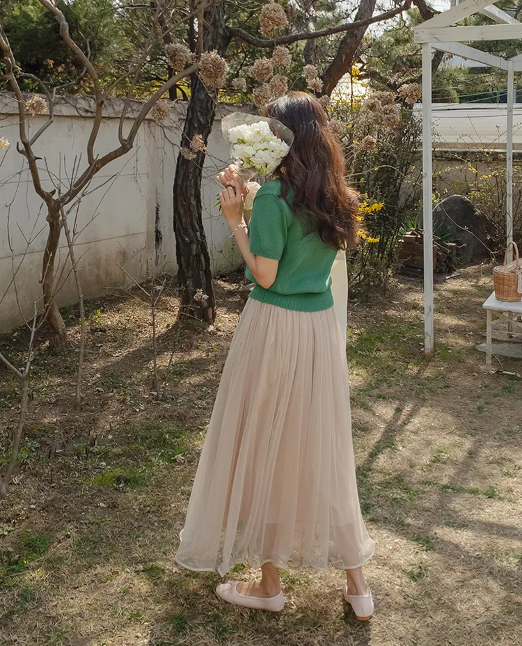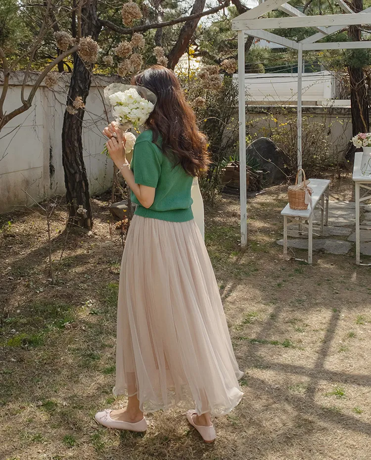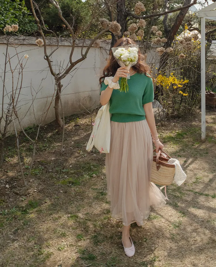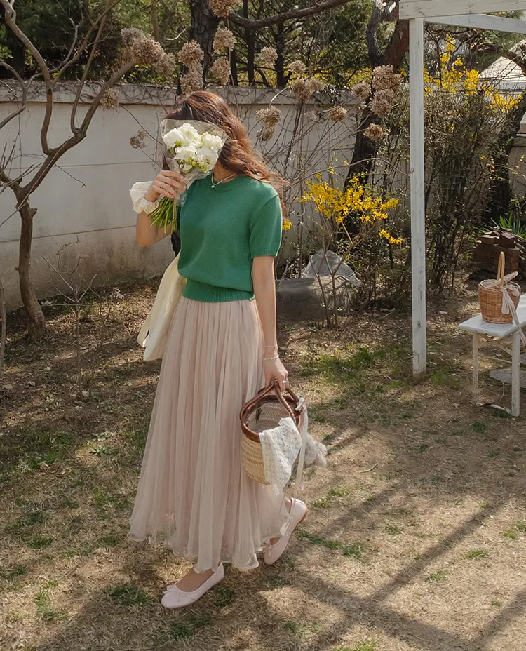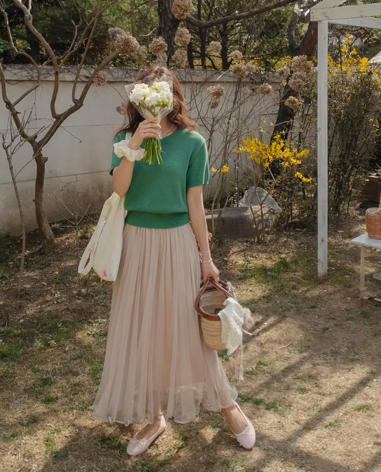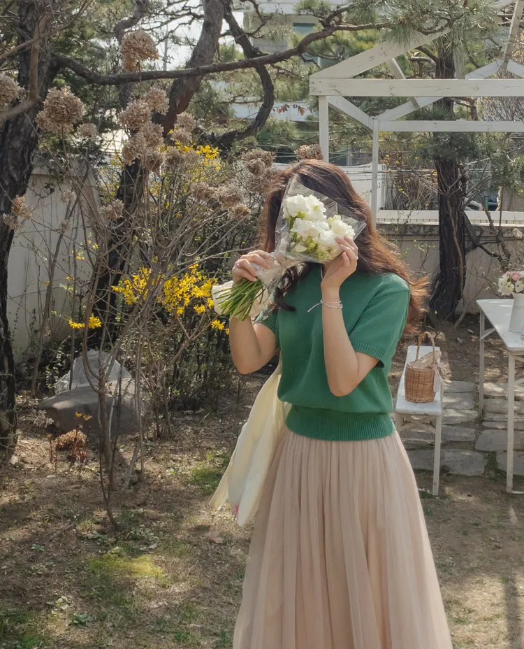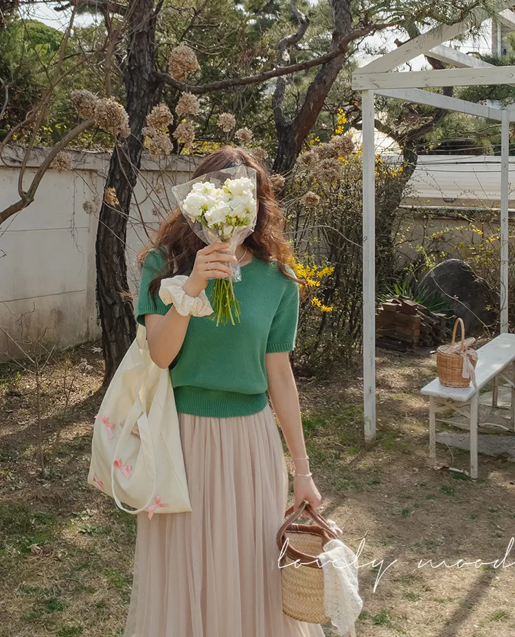 【從現在開始整個夏天-時尚短袖針織♡】【舒適觸感!!】【100%棉布料,奢華光澤】【簡潔設計】
