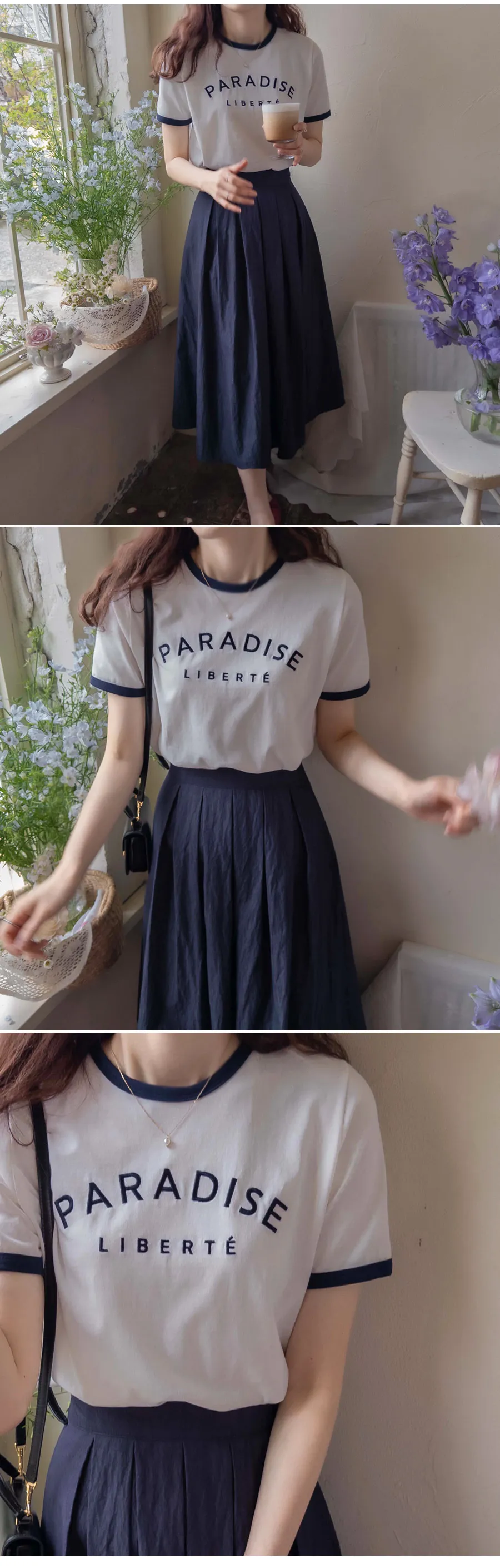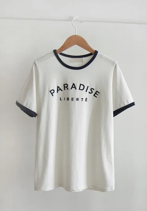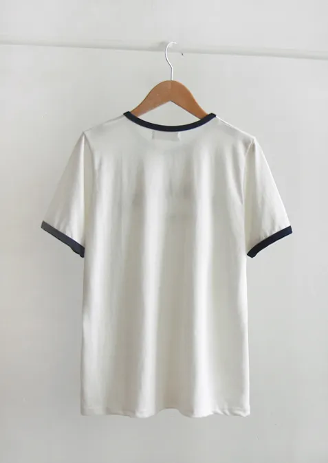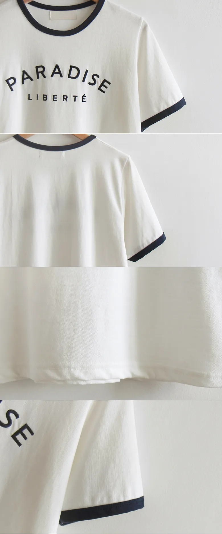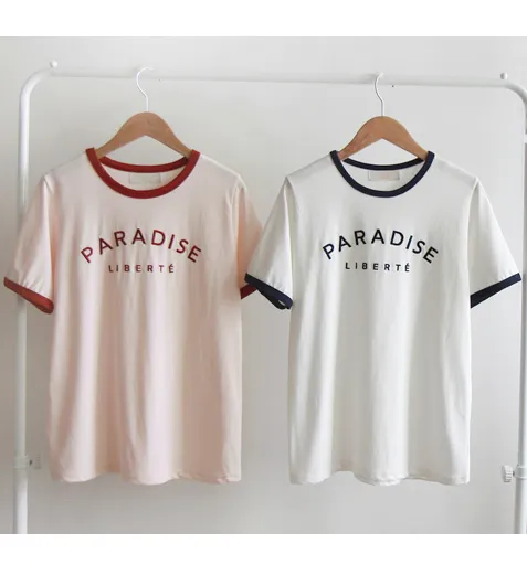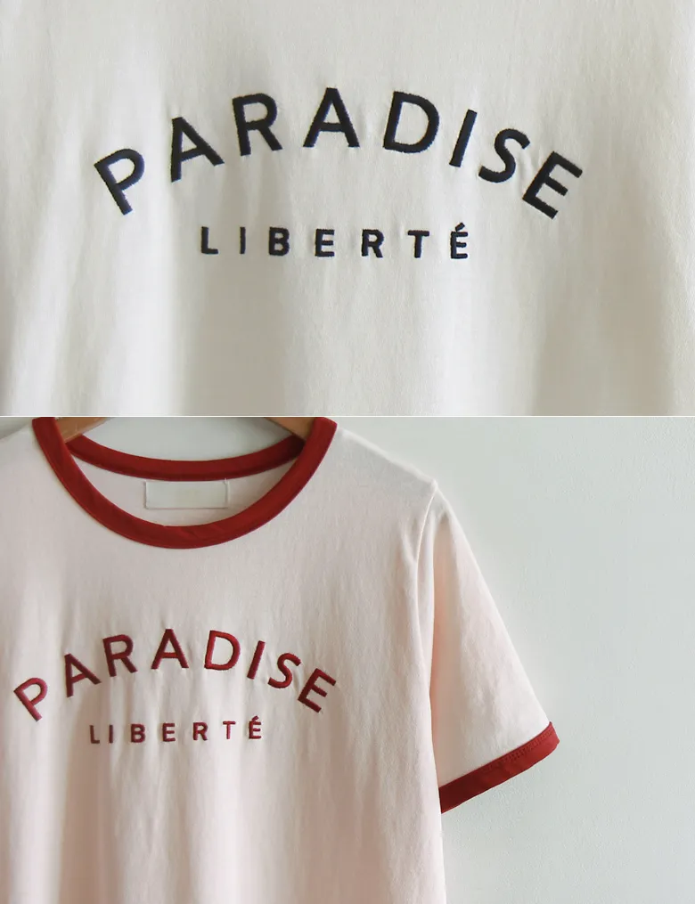 [領口和袖口的配色營造出愉快的心情][以字母刺繡為特點,充滿精緻感][柔和的色彩使其明亮且易於穿著][穿著舒適][推薦穿著舒適的T 卹] [從現在開始直到夏天]