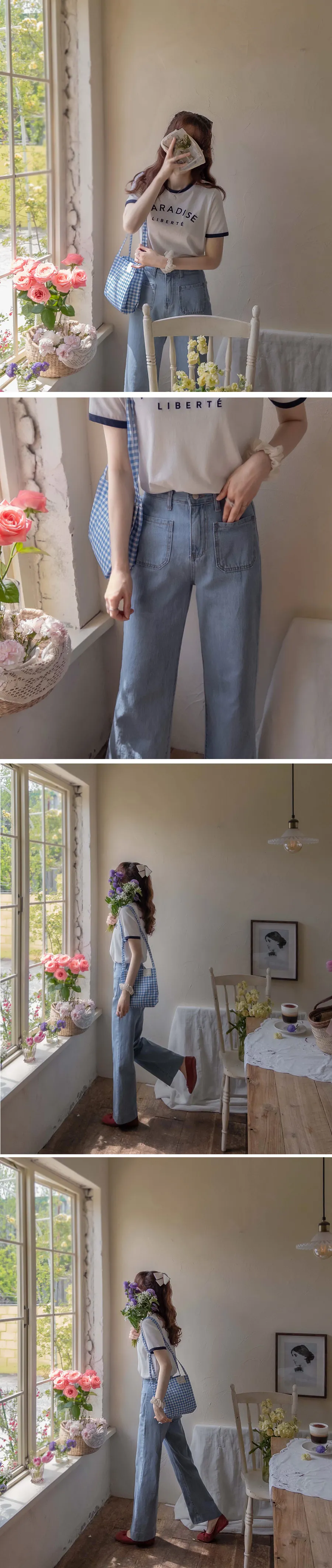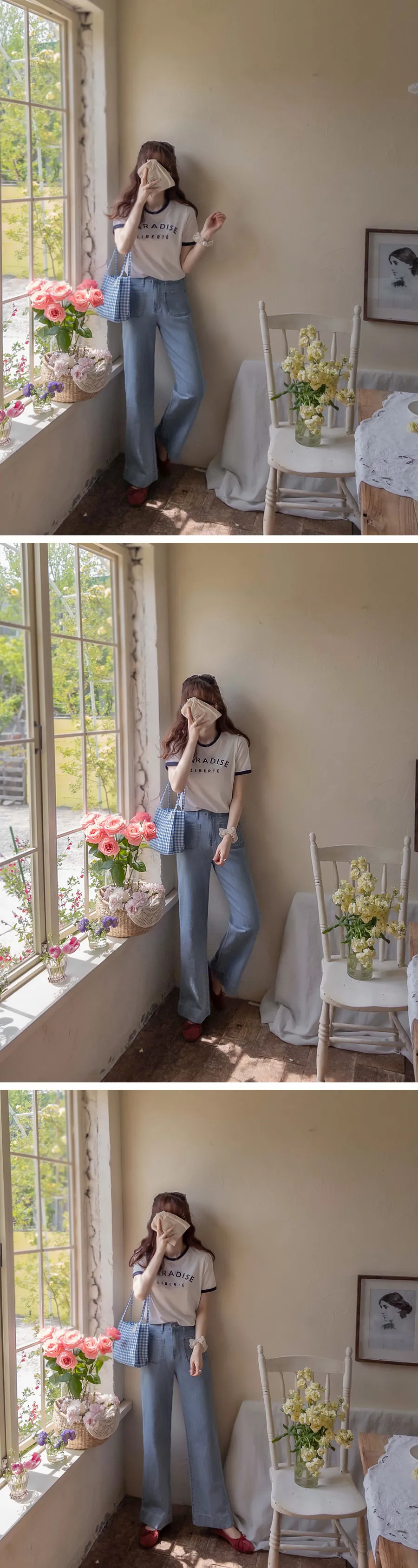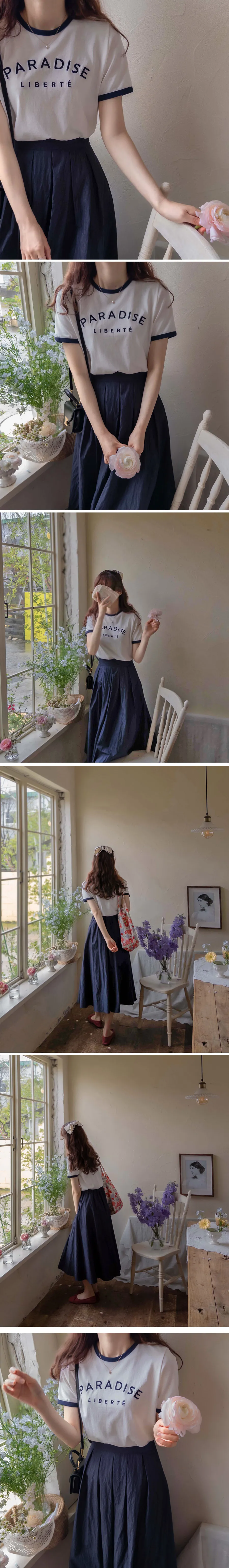 [領口和袖口的配色營造出愉快的心情][以字母刺繡為特點,充滿精緻感][柔和的色彩使其明亮且易於穿著][穿著舒適][推薦穿著舒適的T 卹] [從現在開始直到夏天]