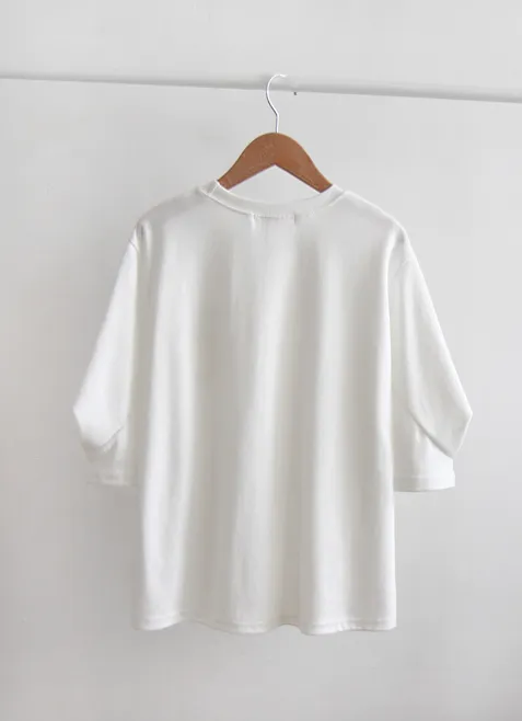 點綴立體珍珠裝飾胸針印花漂亮袖線剪裁上衣