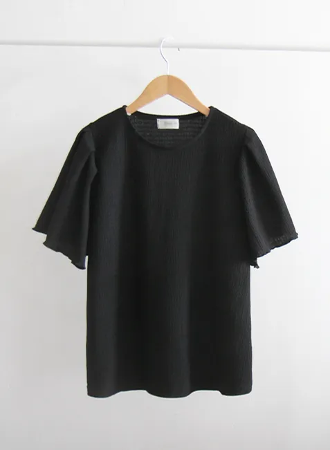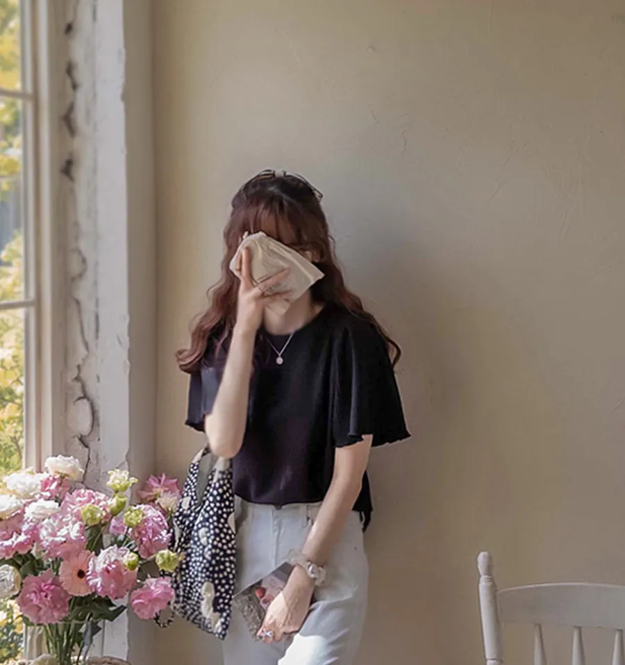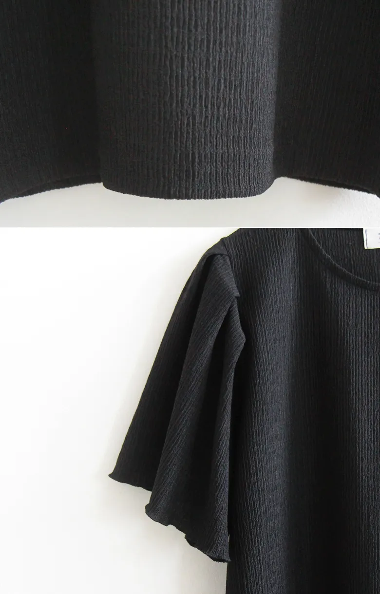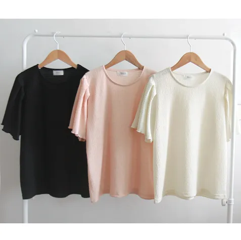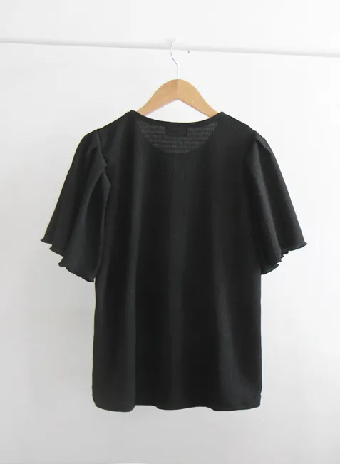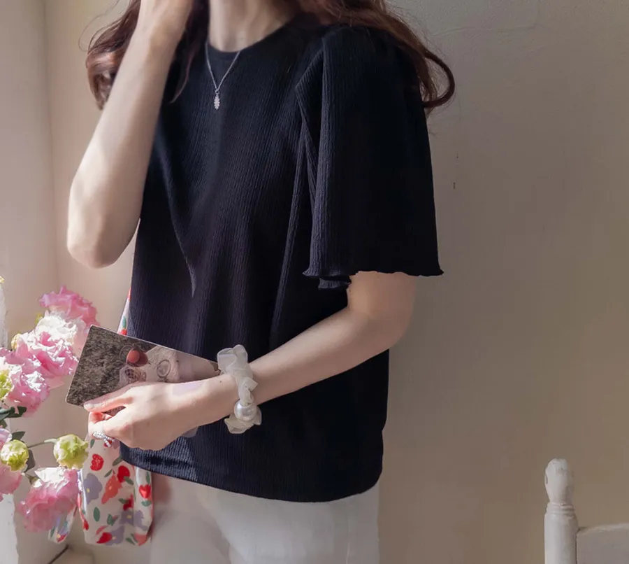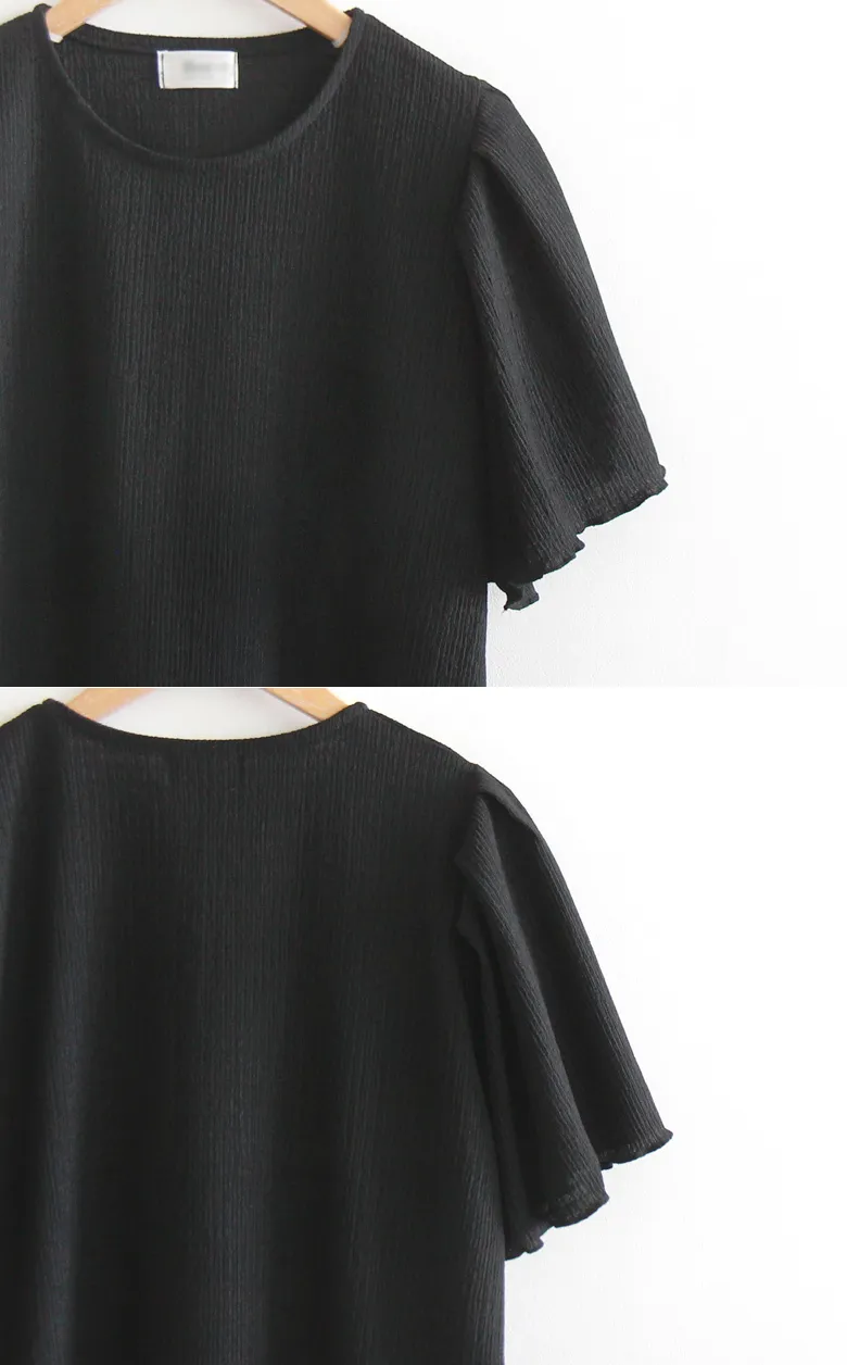 可愛清新肩線剪裁皺褶短袖上衣