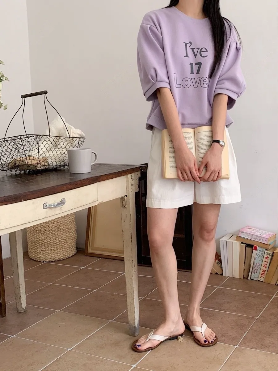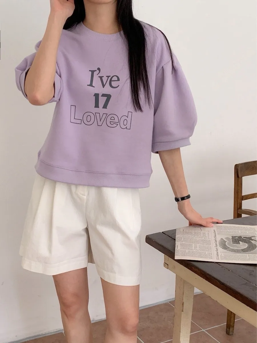 【基本款短袖運動衫】【穿起來很舒服】【由字母印花組成】【袖子末端的剪裁也很漂亮】【肩部剪裁