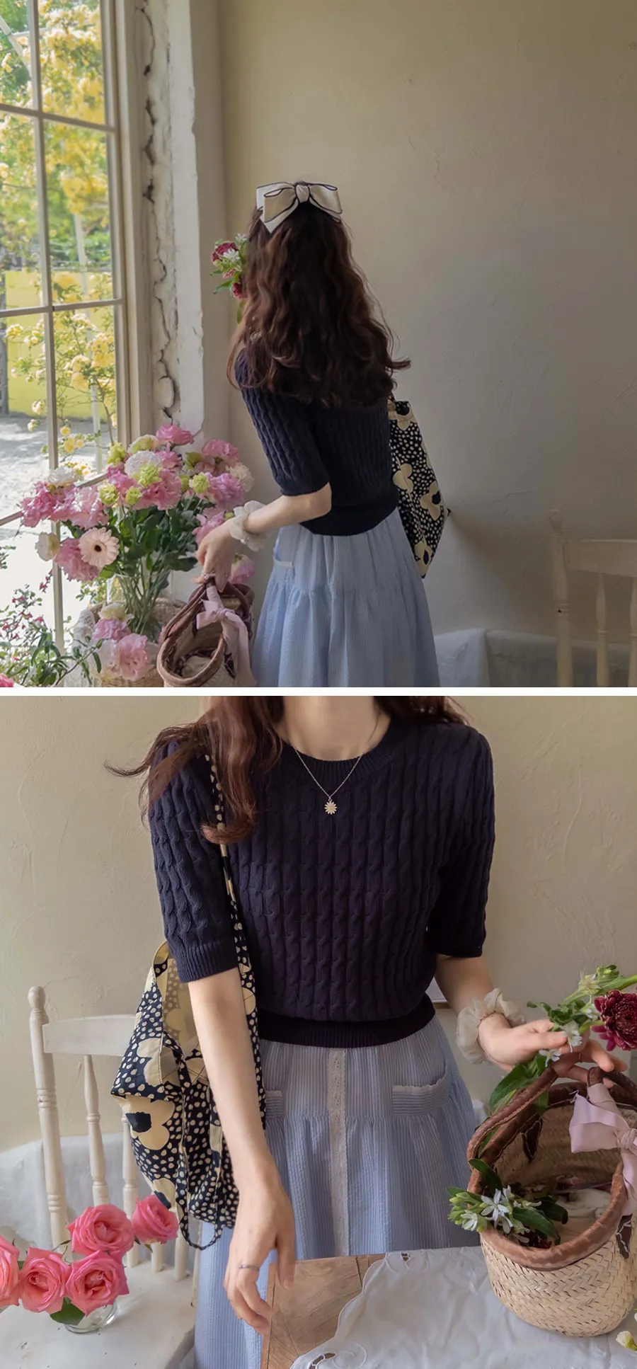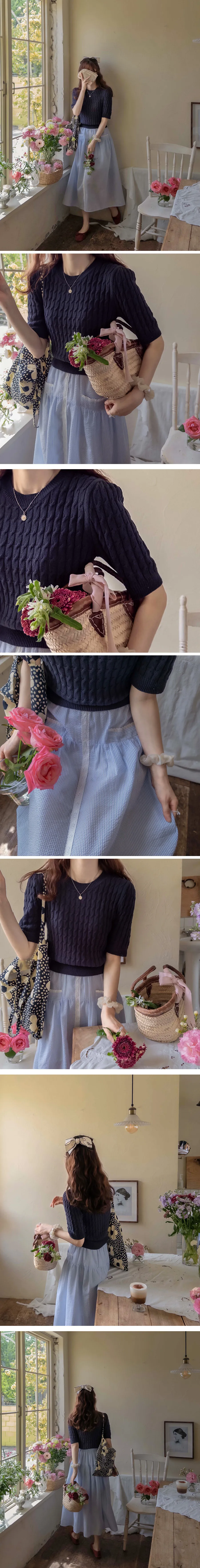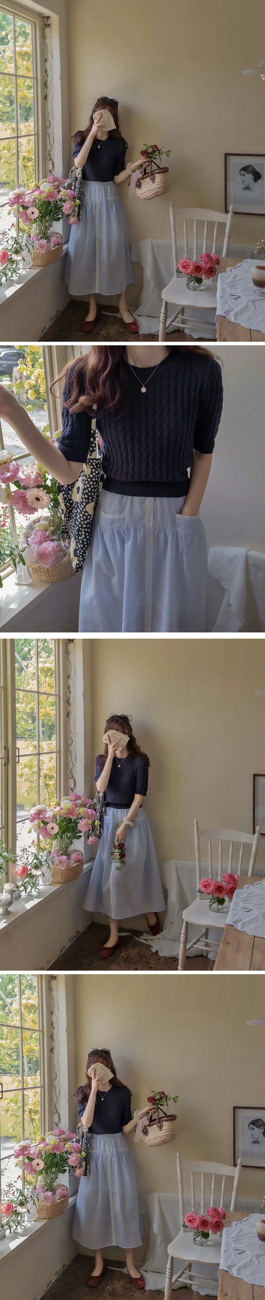 [聚酯纖維襯裡] [腰後部的帶子處理] [後拉鍊結構] [條紋圖案帶來歡快的感覺] [帶有波浪蕾絲裝飾的口袋很漂亮] [不用擔心皺紋] [結構有微妙的剪裁褶皺][邊緣合身的裙子從現在到夏天]