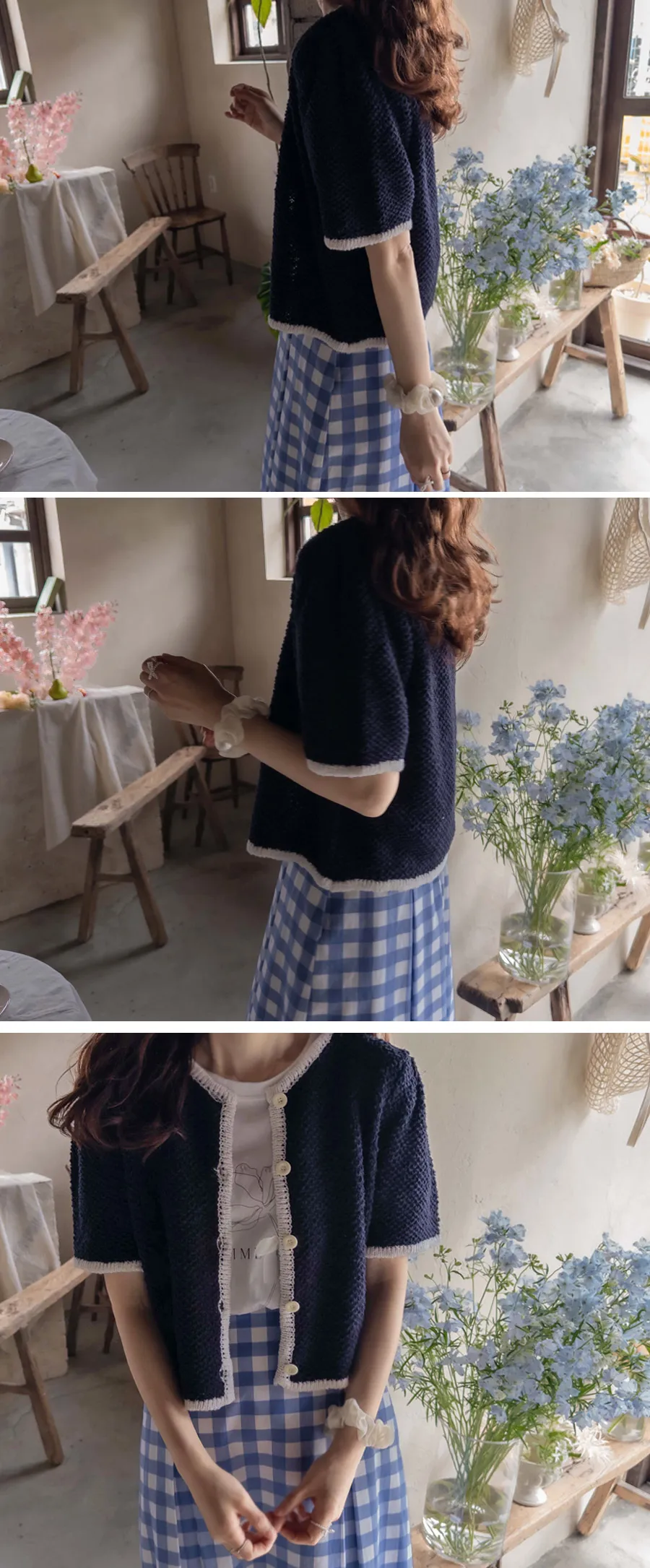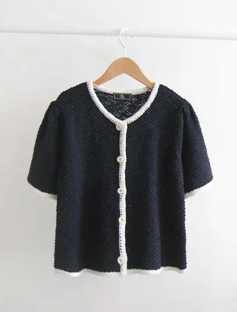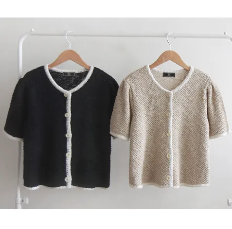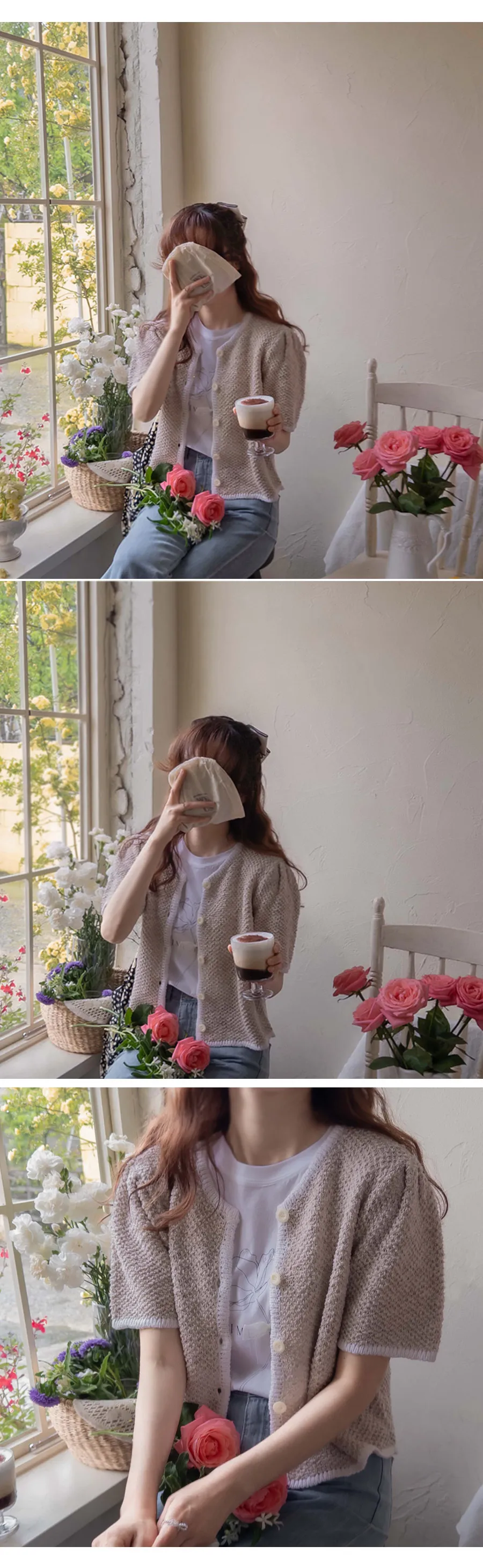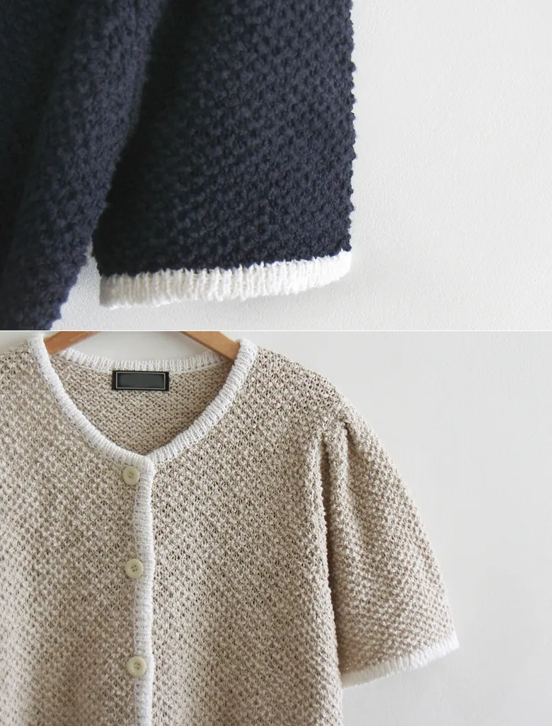 [季節色彩的棉質開衫] [華夫格圖案的明亮設計] [帶有時尚鈕扣帶的精緻設計] [即使在夏天也可以穿的短袖開衫]