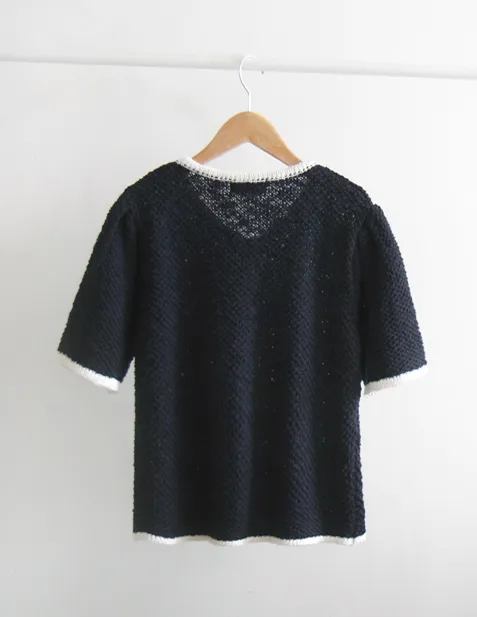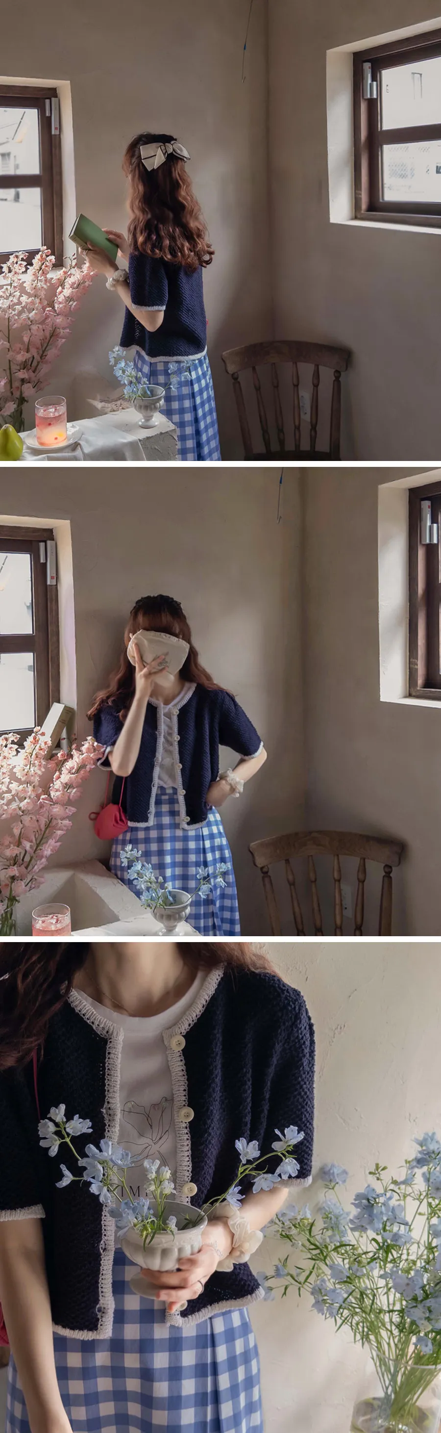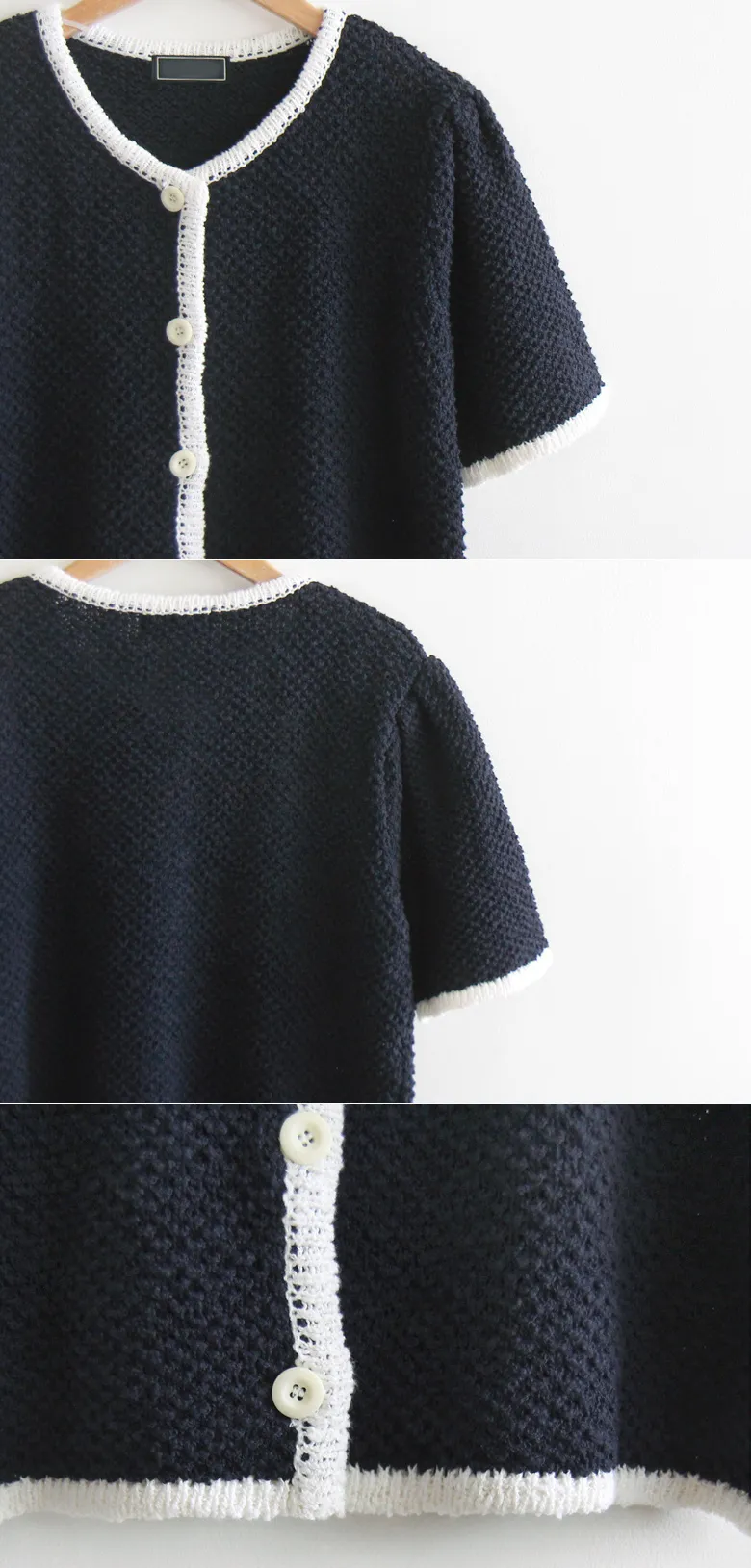 [季節色彩的棉質開衫] [華夫格圖案的明亮設計] [帶有時尚鈕扣帶的精緻設計] [即使在夏天也可以穿的短袖開衫]