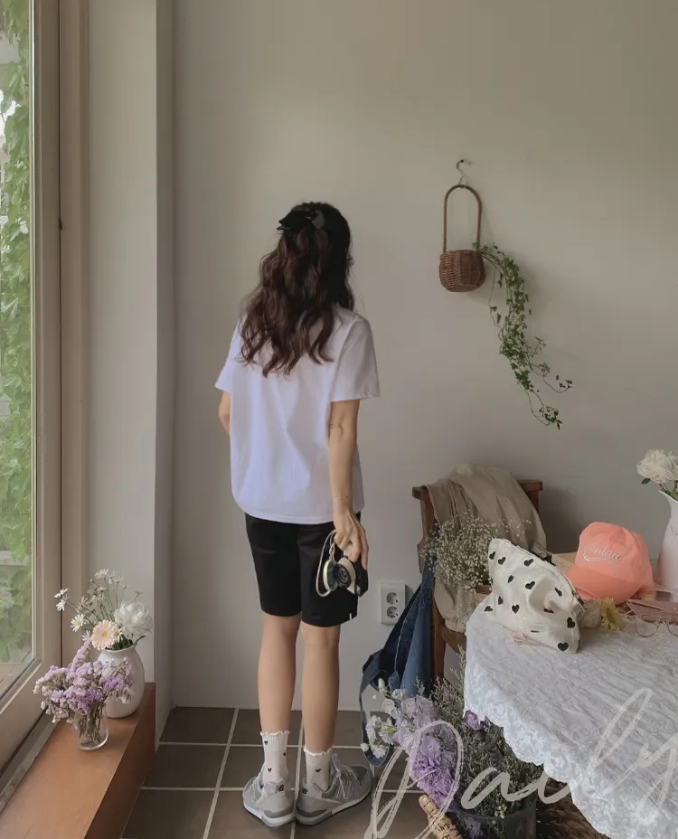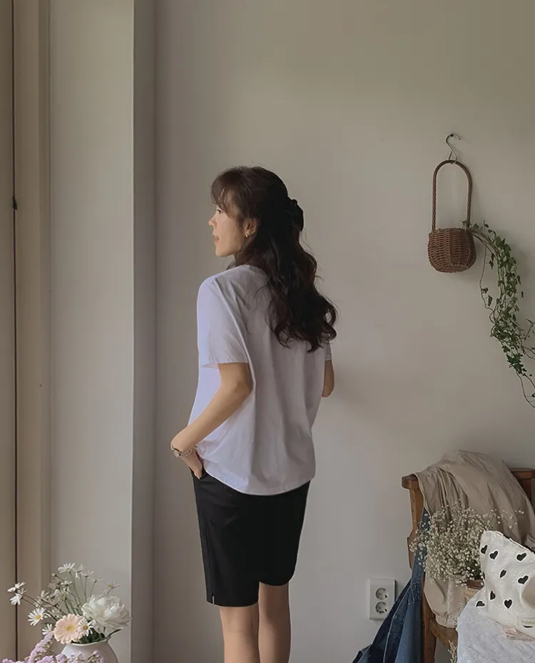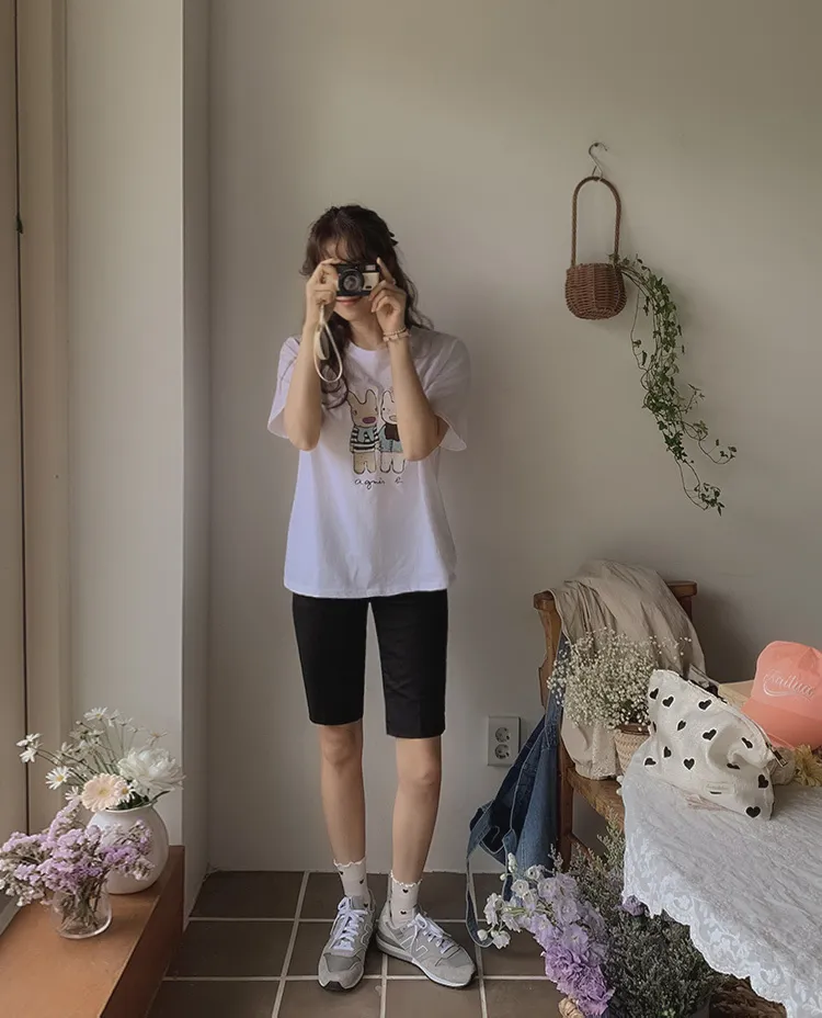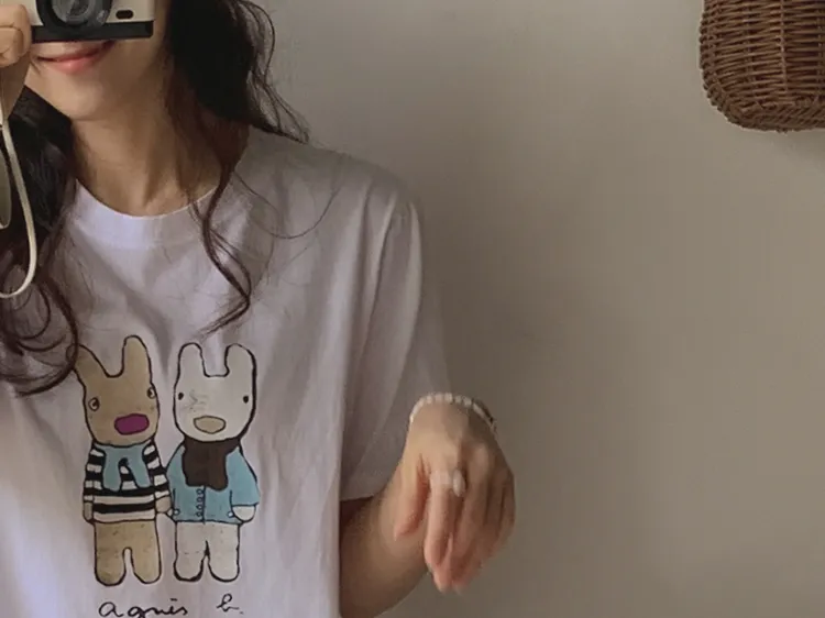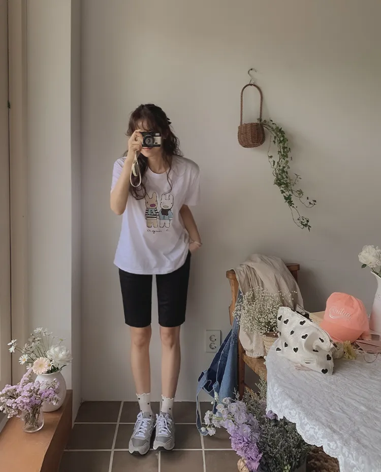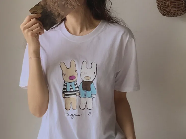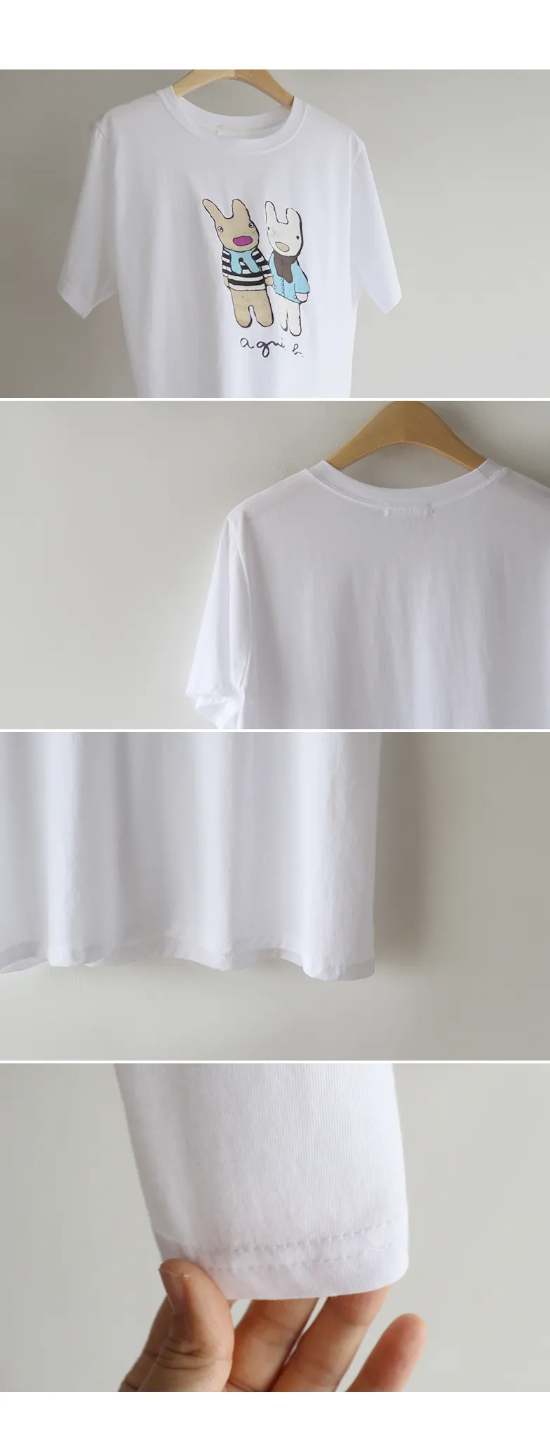 [可愛兔子角色印花的基本款T卹♥] [柔軟棉質面料] [穿著舒適,寬鬆版型,遮蓋身形~] [推薦工作裝、日常裝、休閒裝]