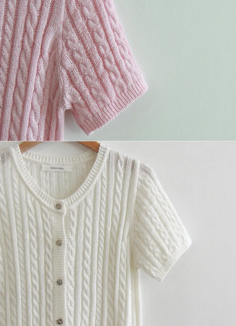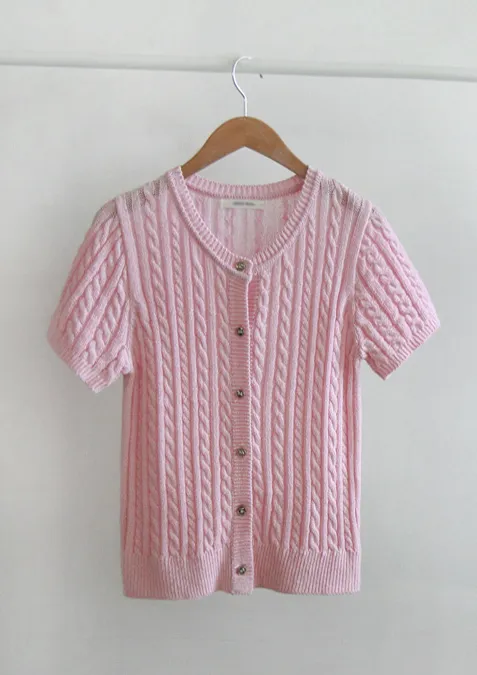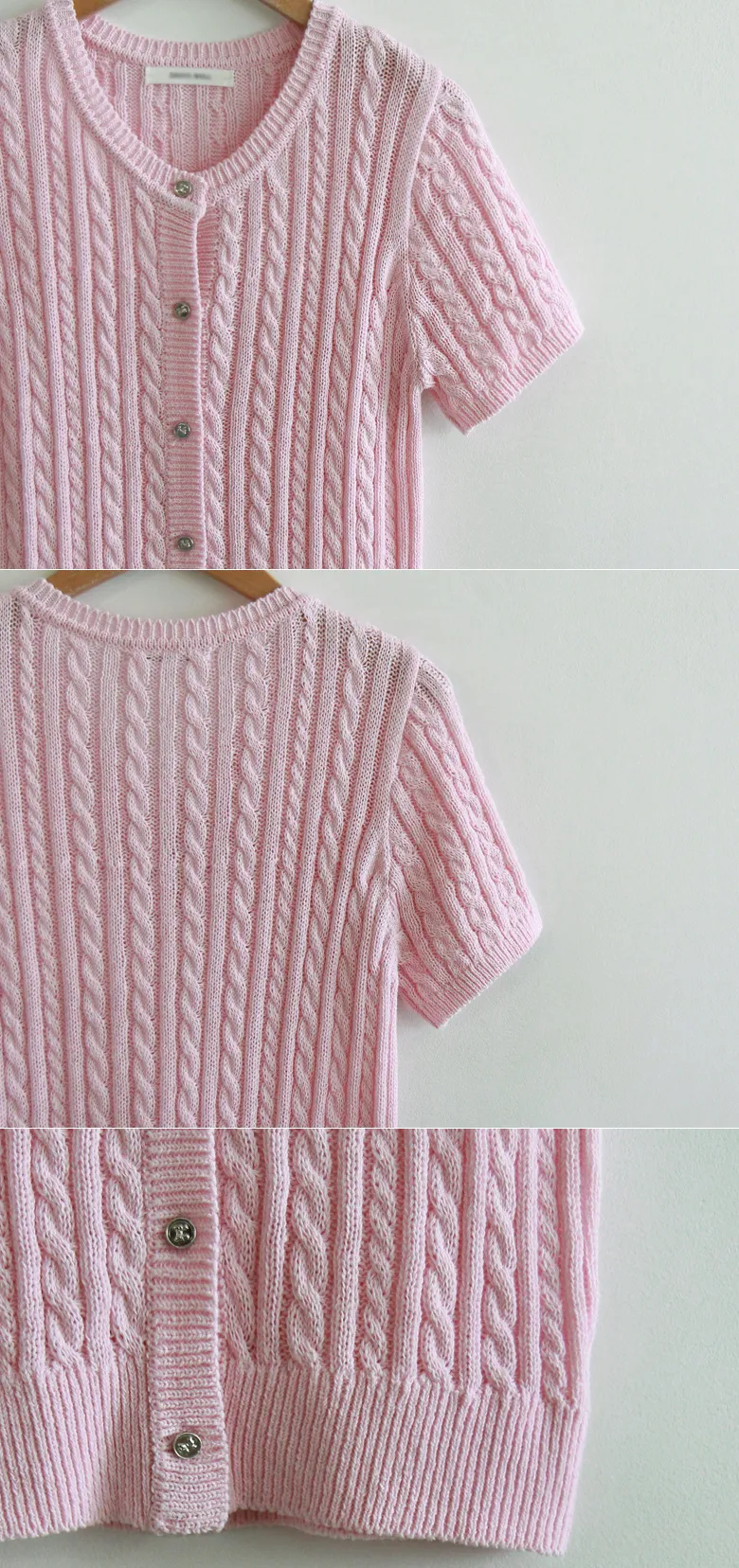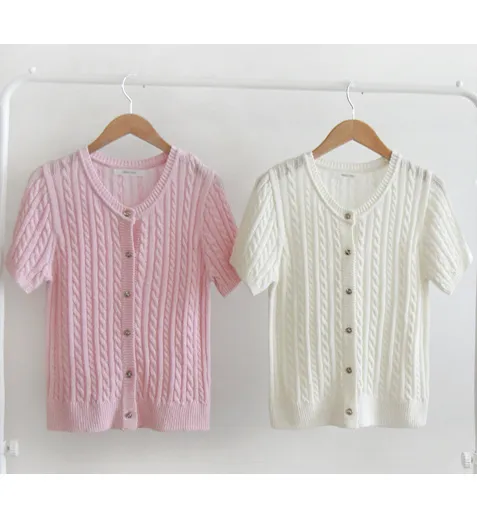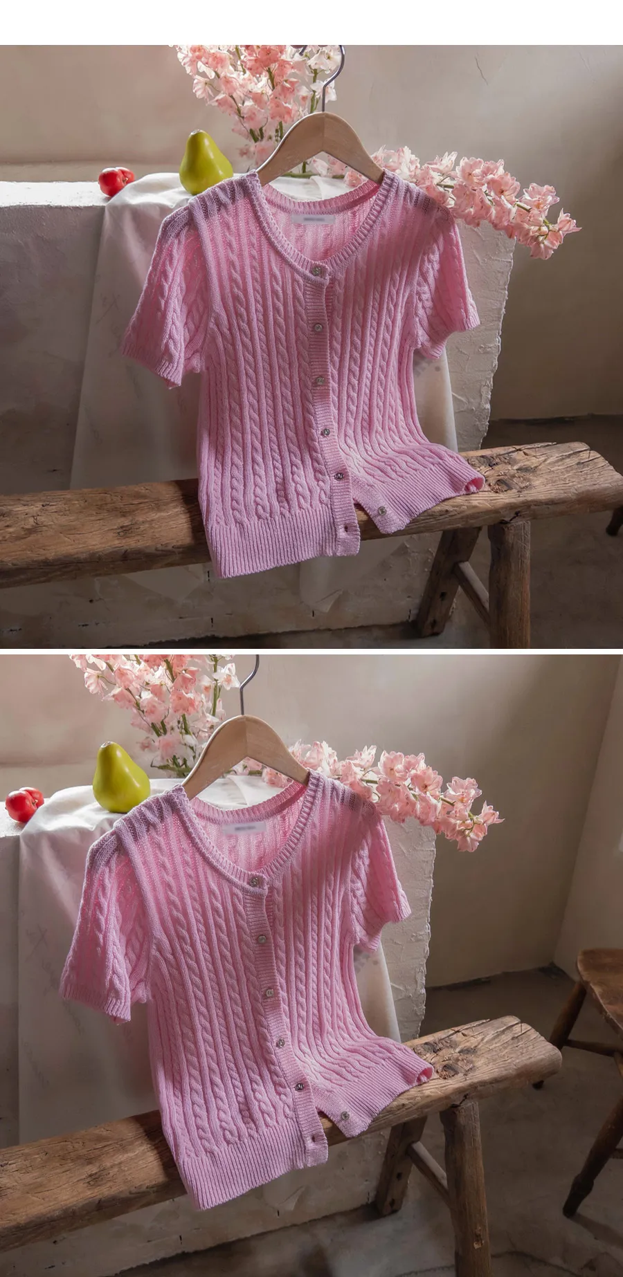 [奢華棉質材質][更精緻的扭紋設計][高彈細線開衫][舒適合身][圓領優雅迷人][柔和的色彩讓穿著清新獨特][夏季開衫][帶有蝴蝶結圖案的漂亮鈕扣]