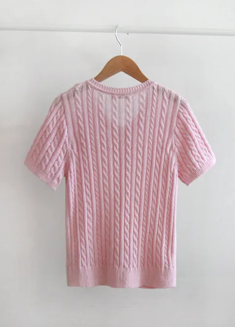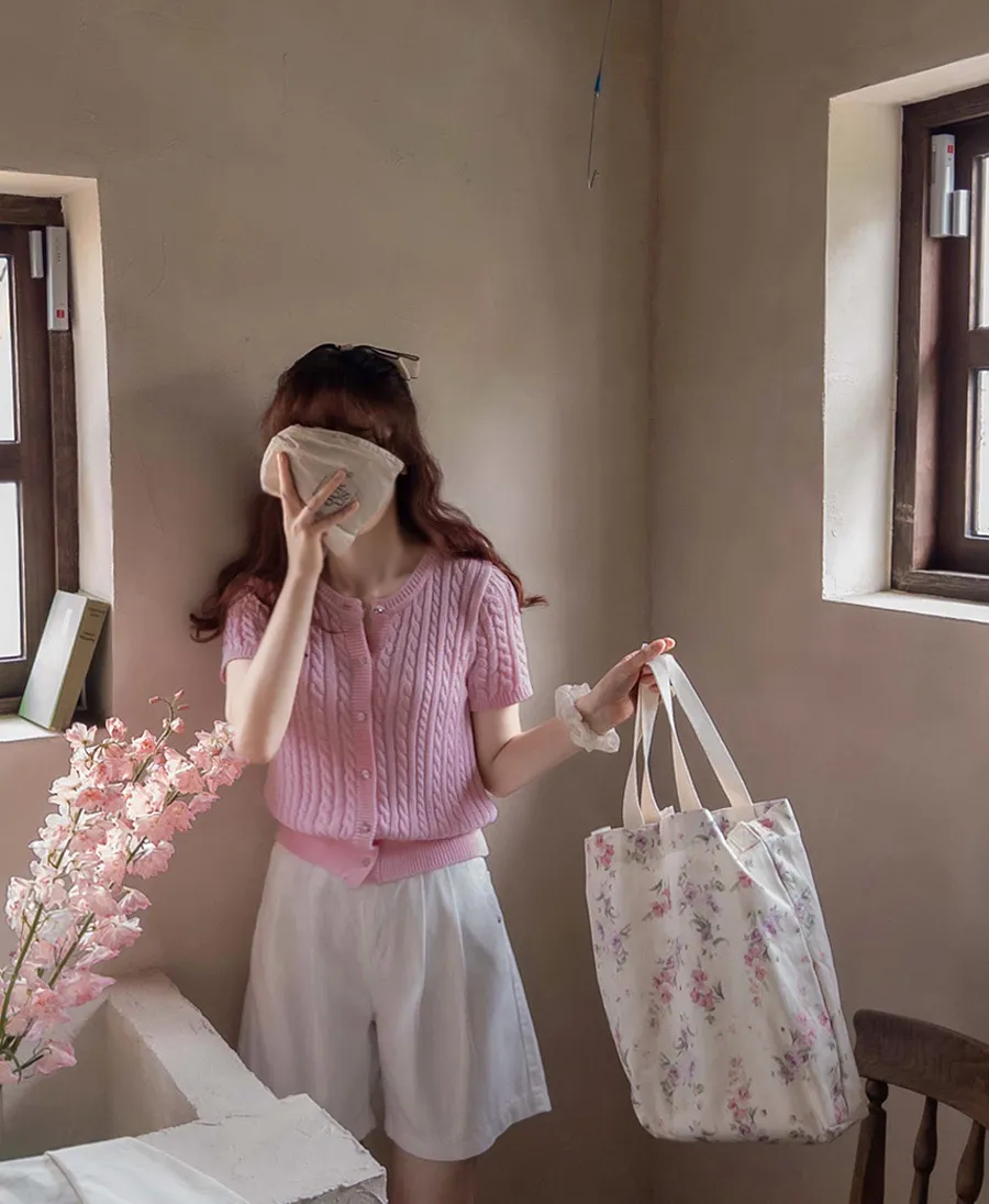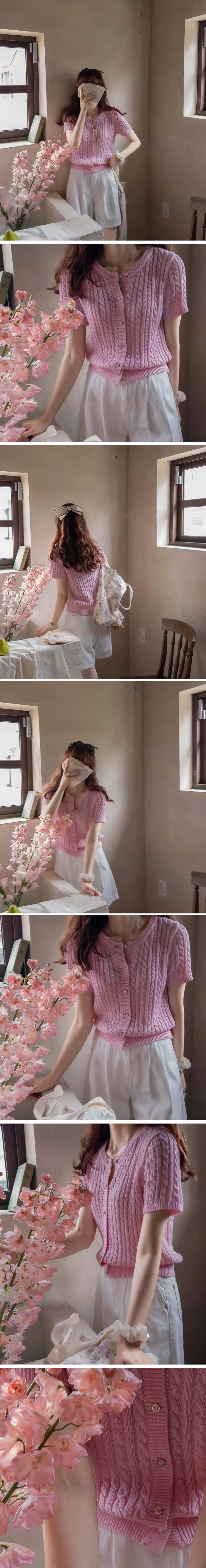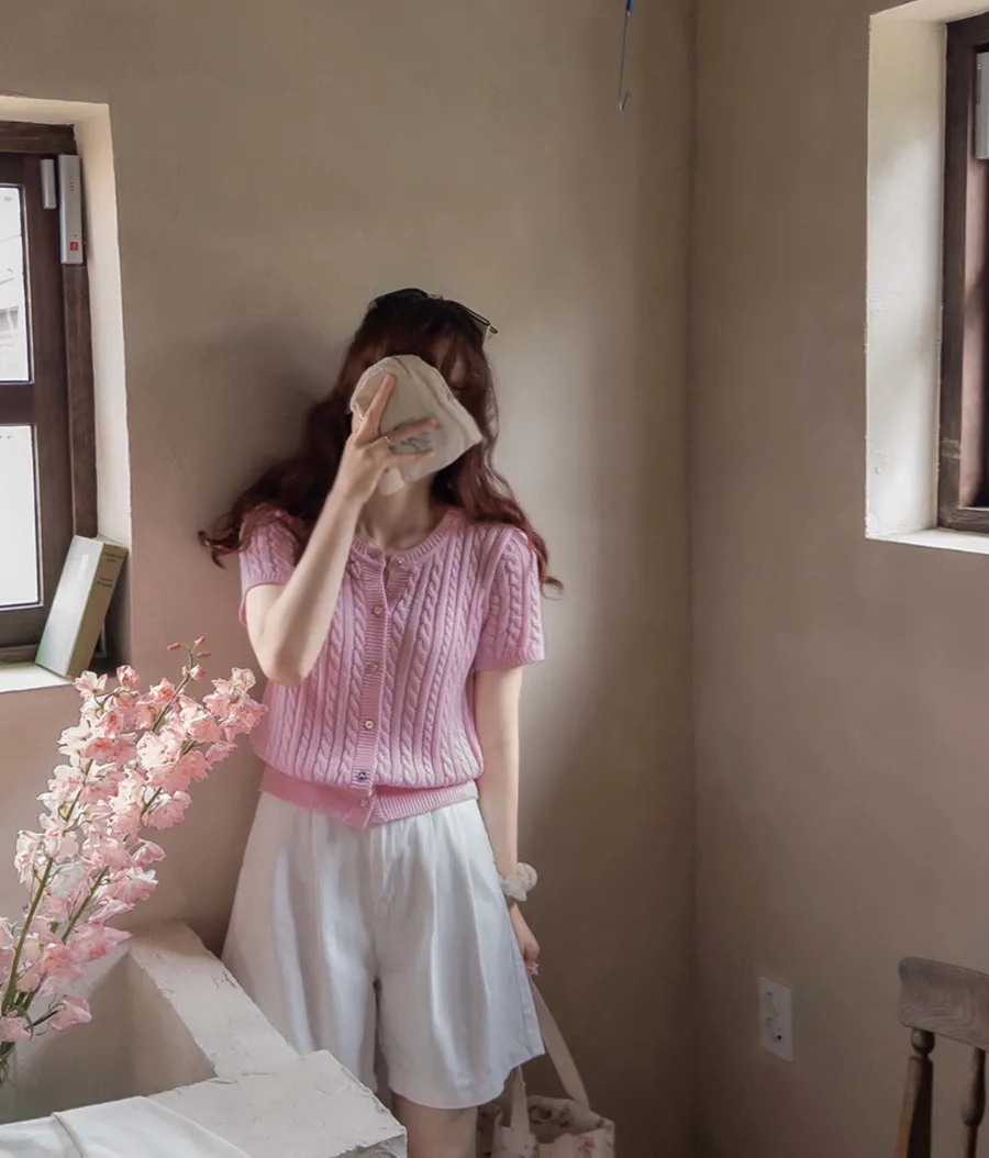 [奢華棉質材質][更精緻的扭紋設計][高彈細線開衫][舒適合身][圓領優雅迷人][柔和的色彩讓穿著清新獨特][夏季開衫][帶有蝴蝶結圖案的漂亮鈕扣]