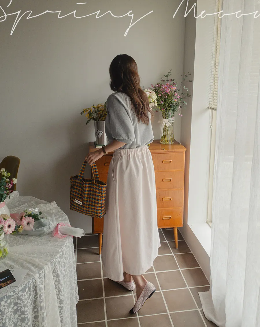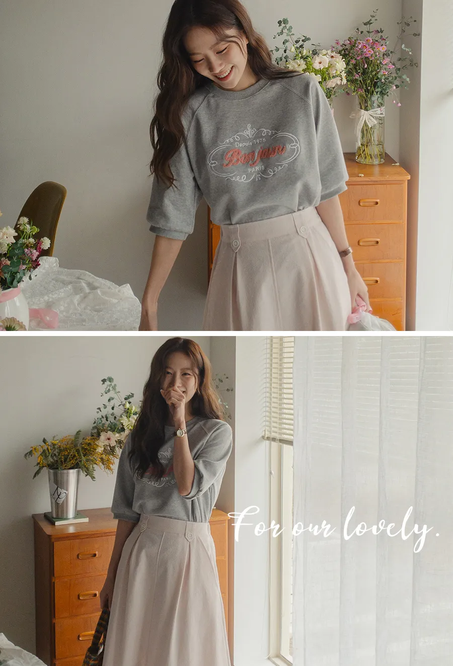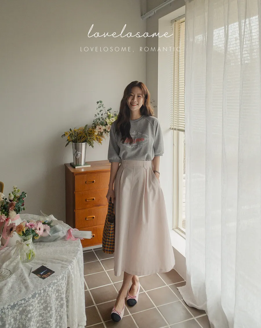 漂亮前鈕扣針摺設計傘擺A字剪裁中長裙