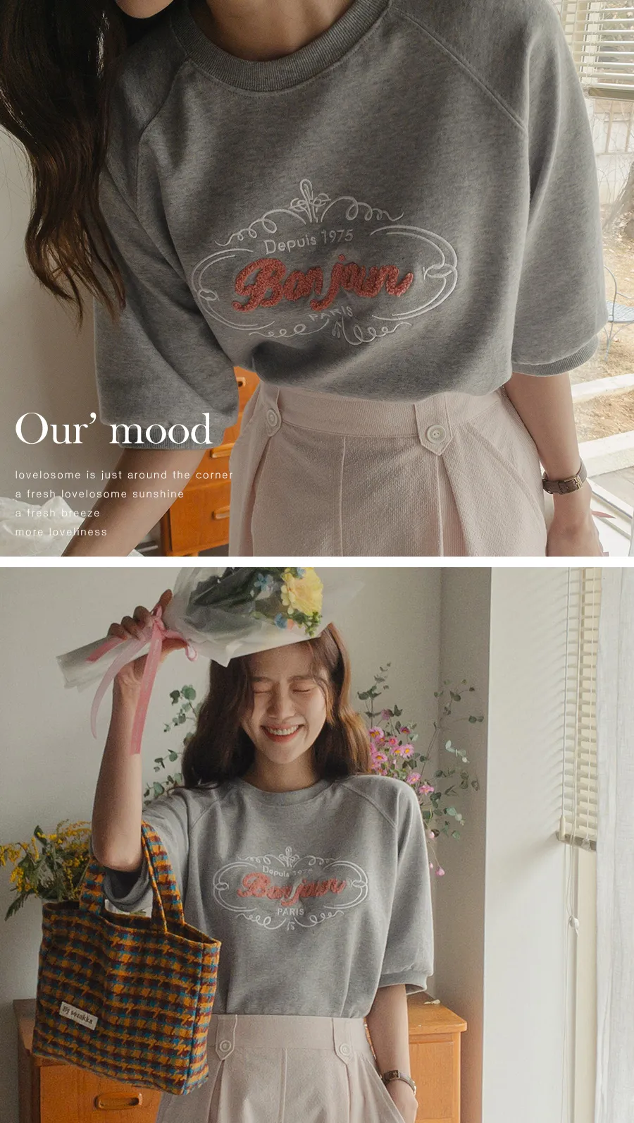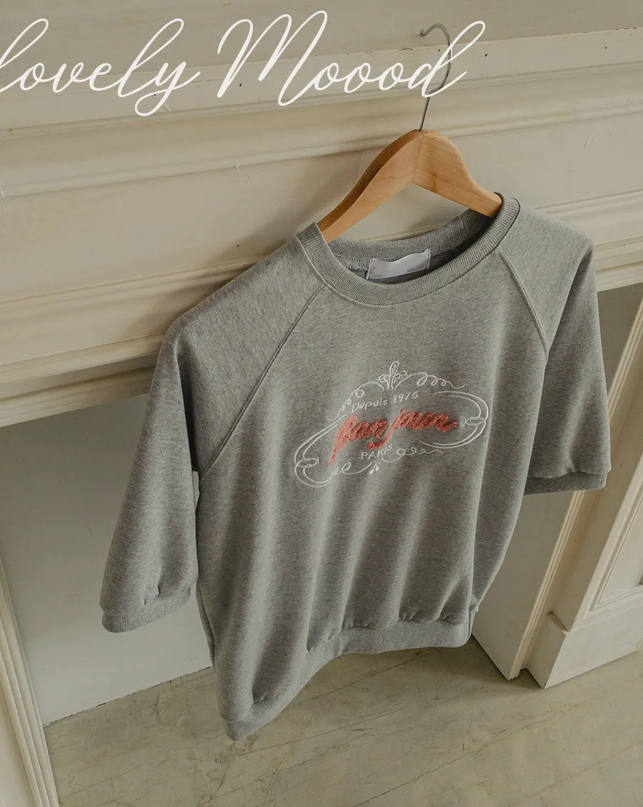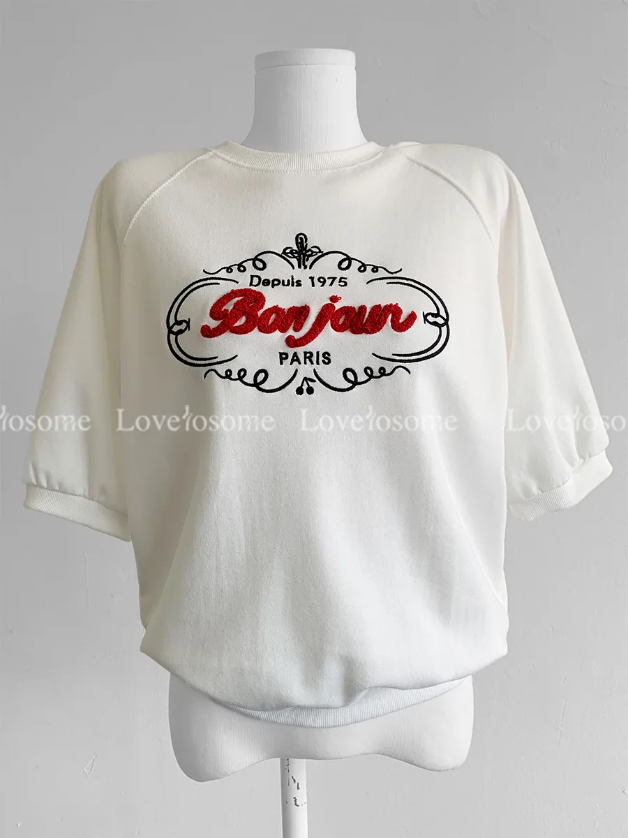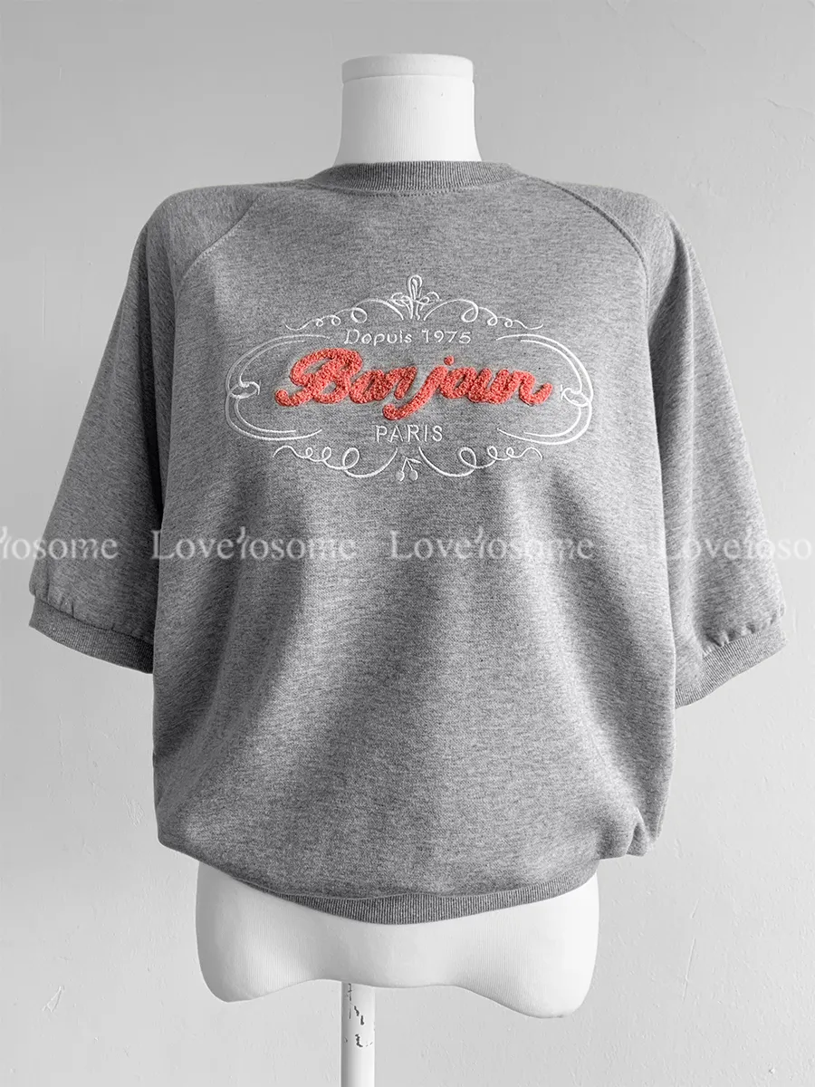 【正面刺繡貼片細節可愛感UP】【不常見又前衛的落肩線,值得擁有♡】【彈性柔軟的棉滌材質穿著舒適】