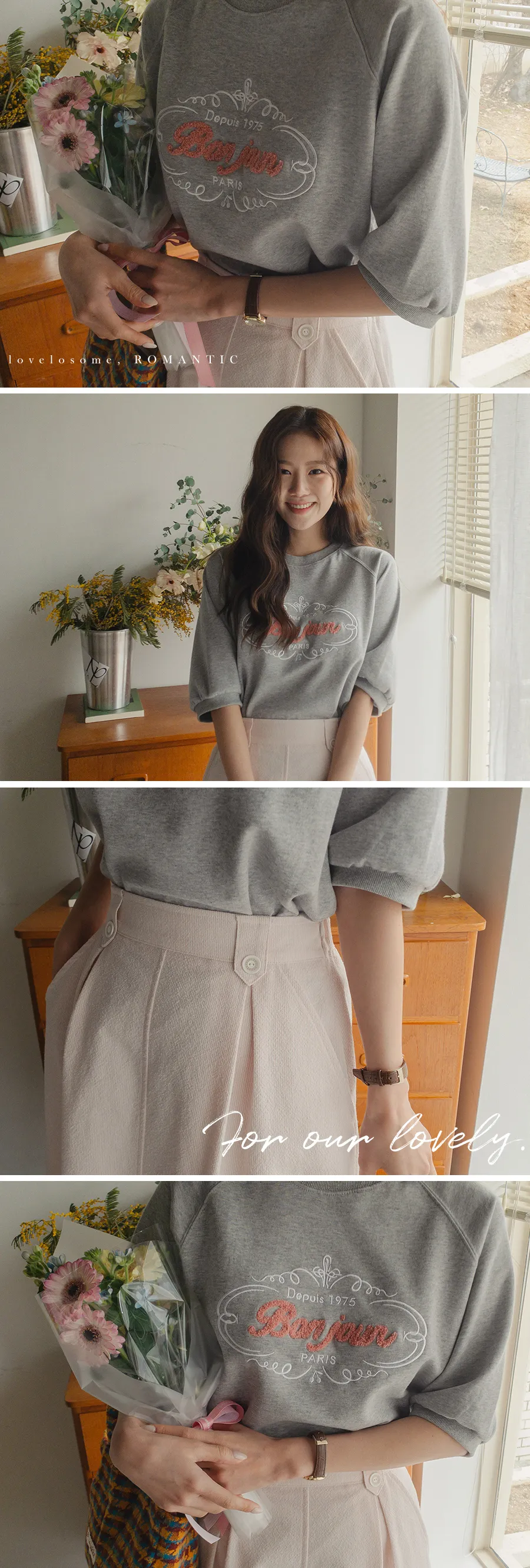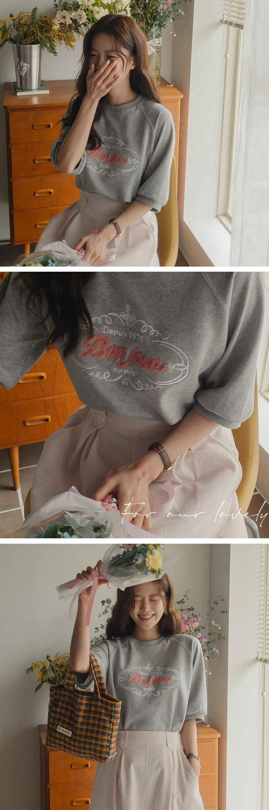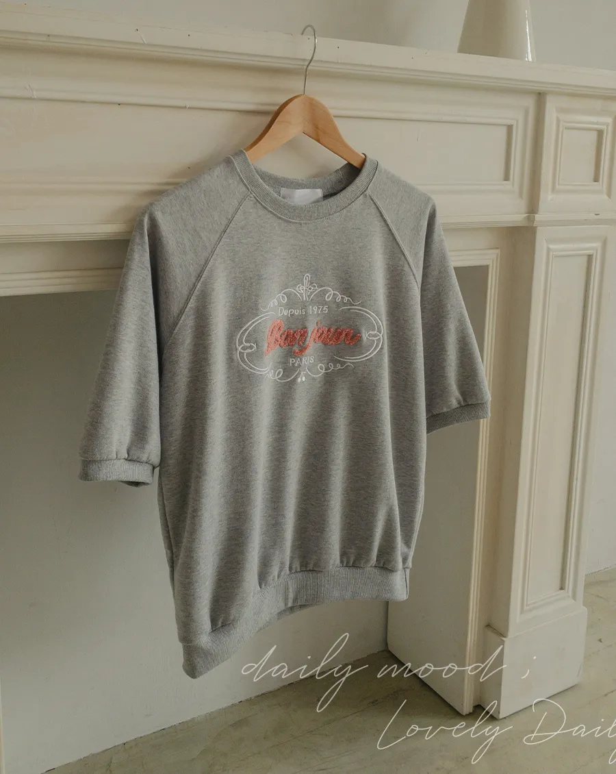 【正面刺繡貼片細節可愛感UP】【不常見又前衛的落肩線,值得擁有♡】【彈性柔軟的棉滌材質穿著舒適】