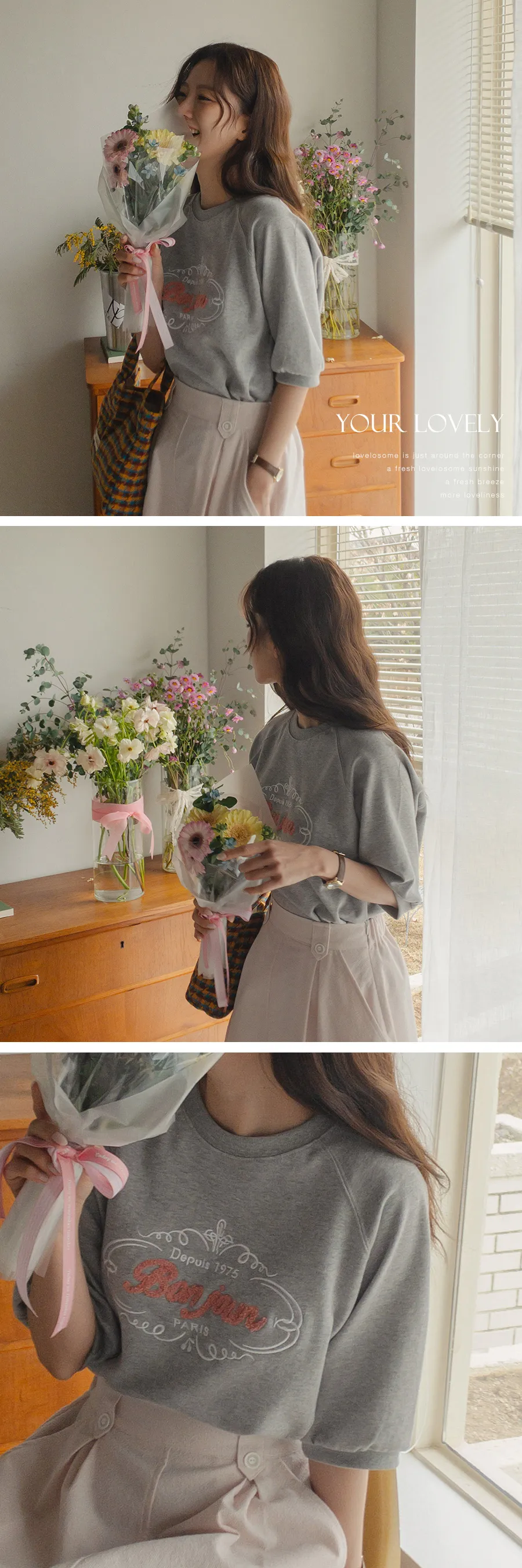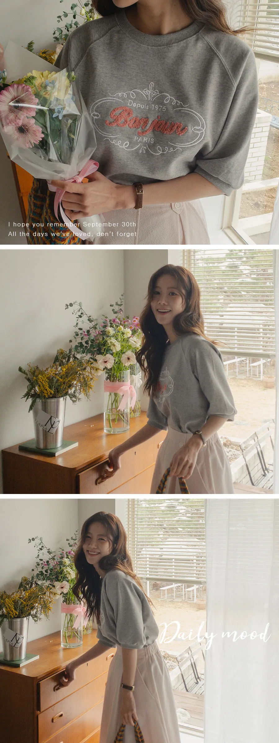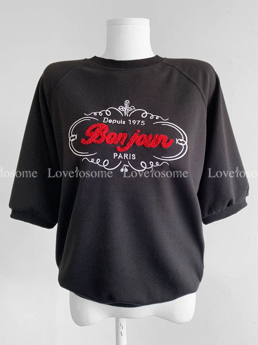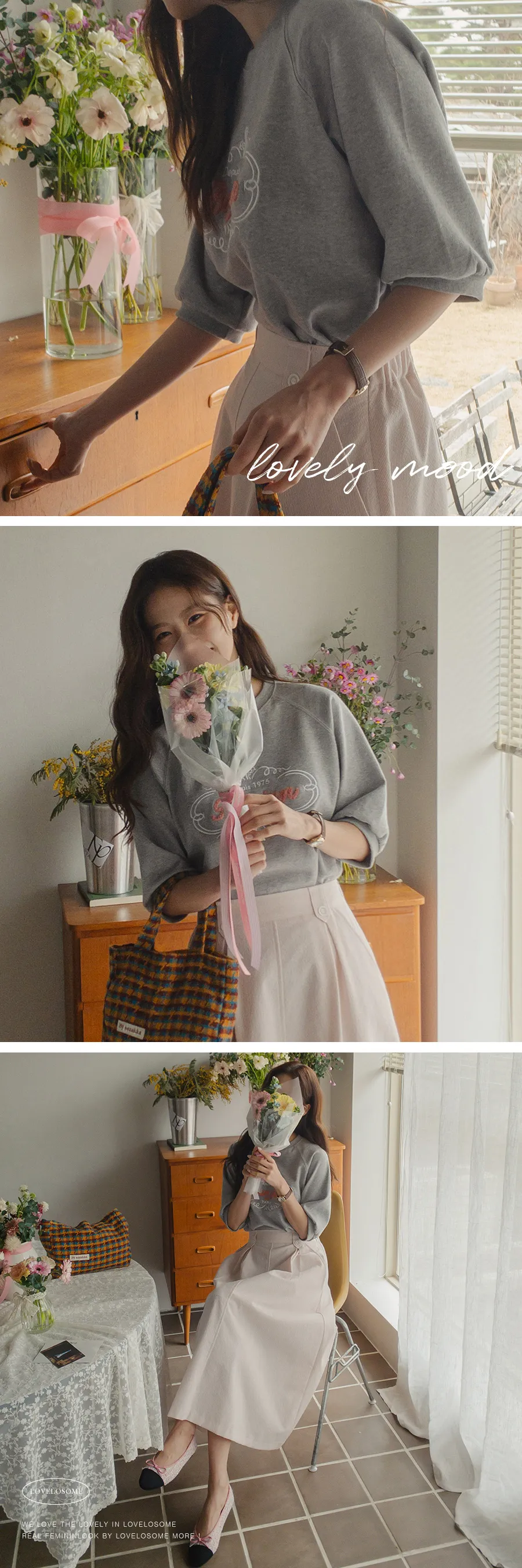 【正面刺繡貼片細節可愛感UP】【不常見又前衛的落肩線,值得擁有♡】【彈性柔軟的棉滌材質穿著舒適】
