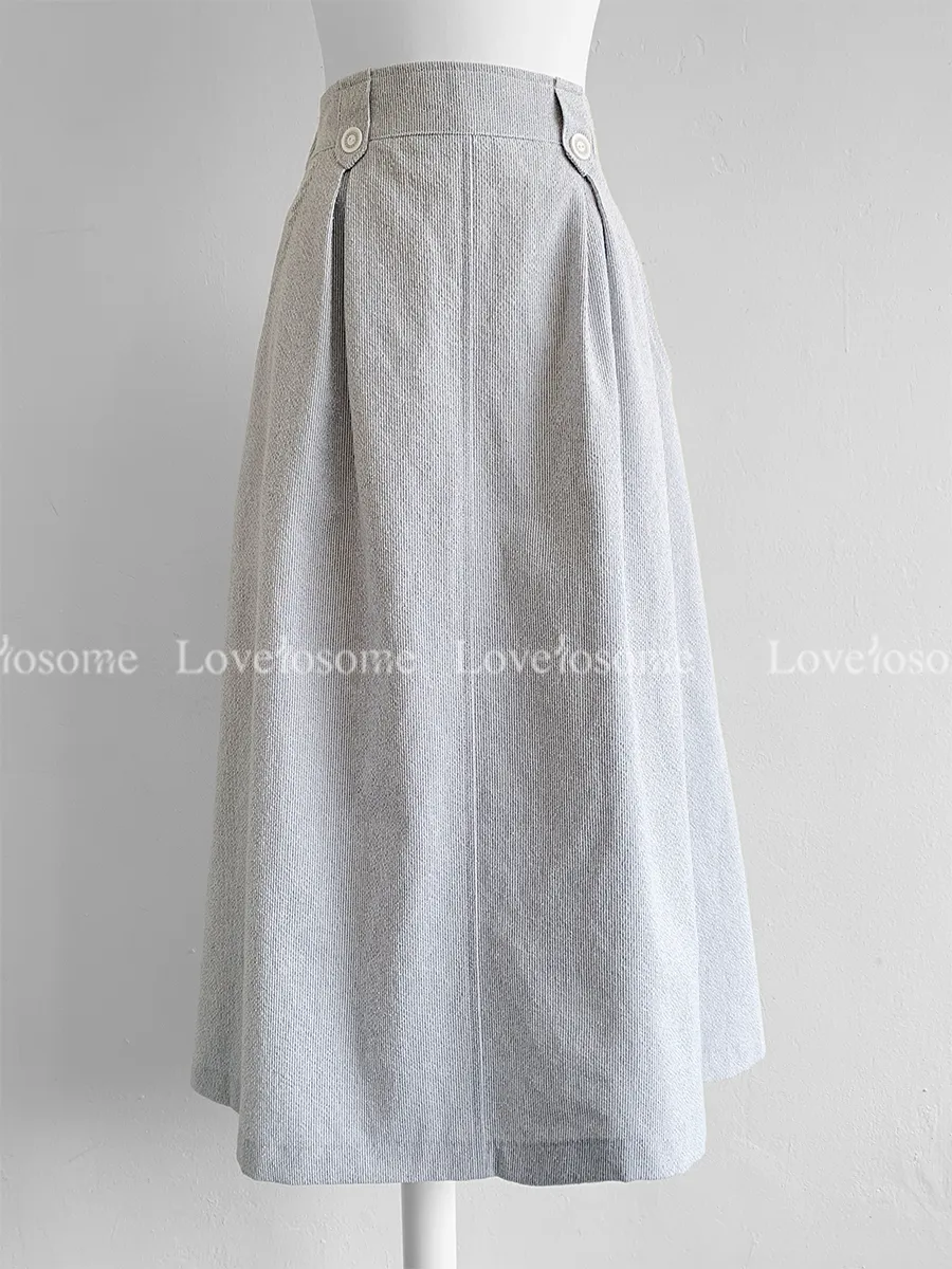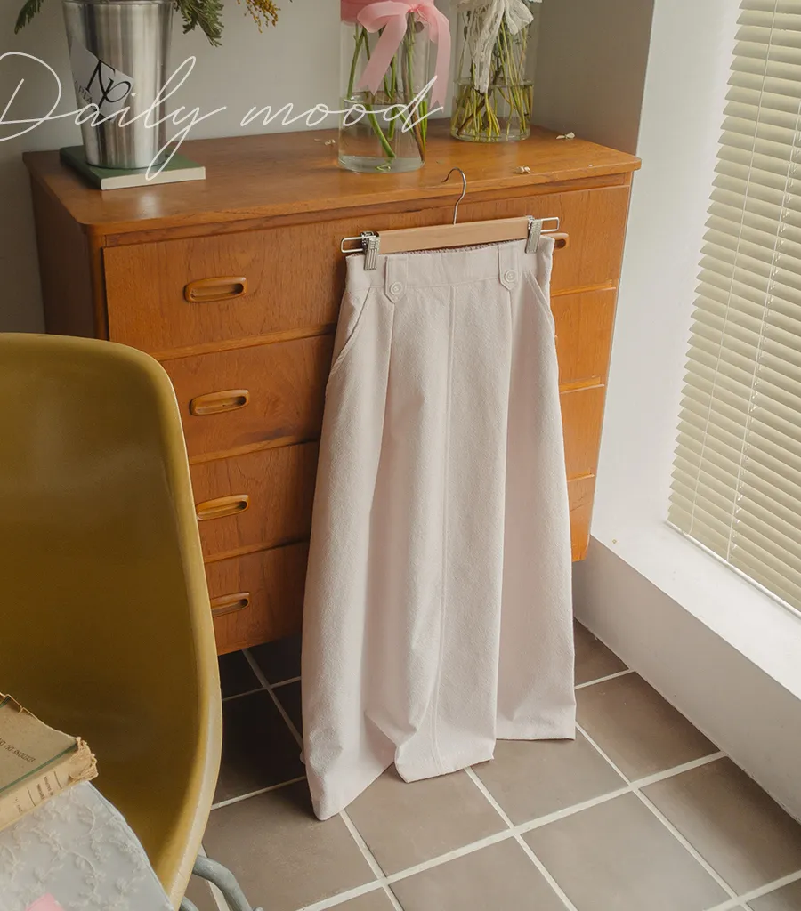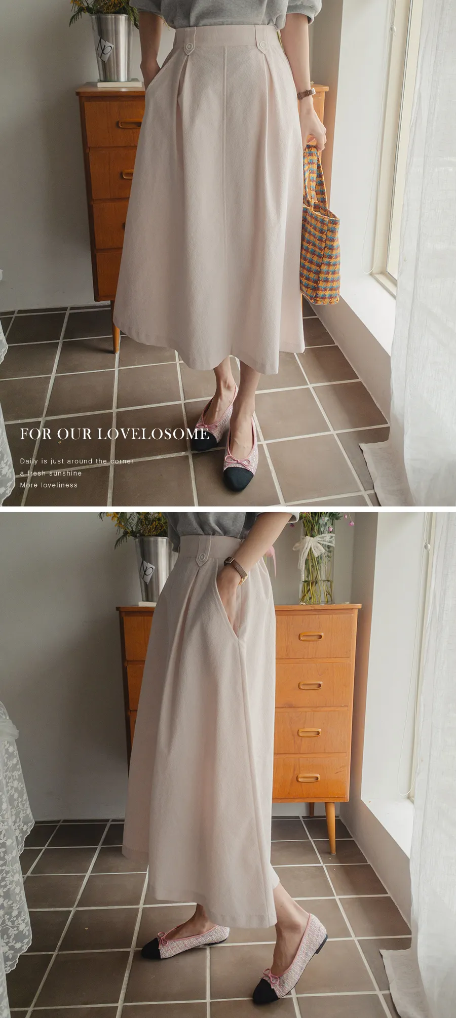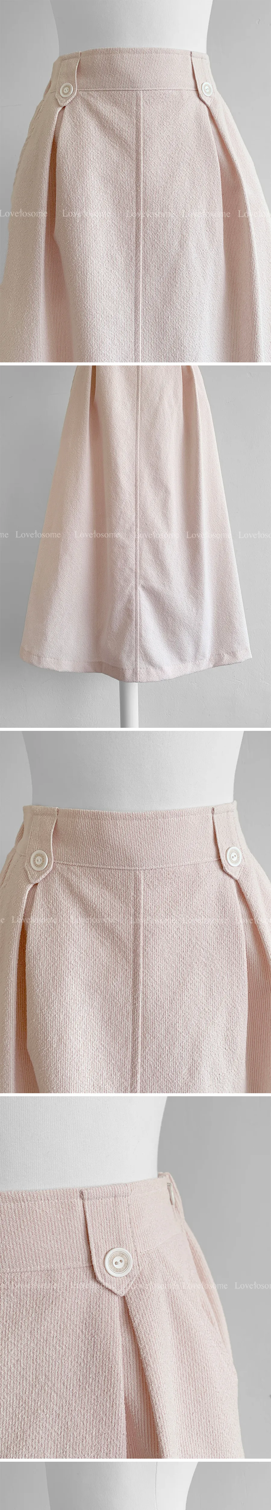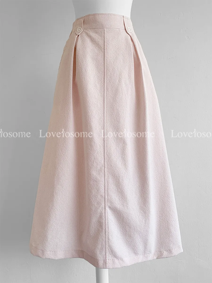 漂亮前鈕扣針摺設計傘擺A字剪裁中長裙