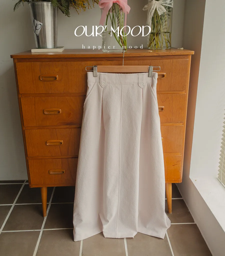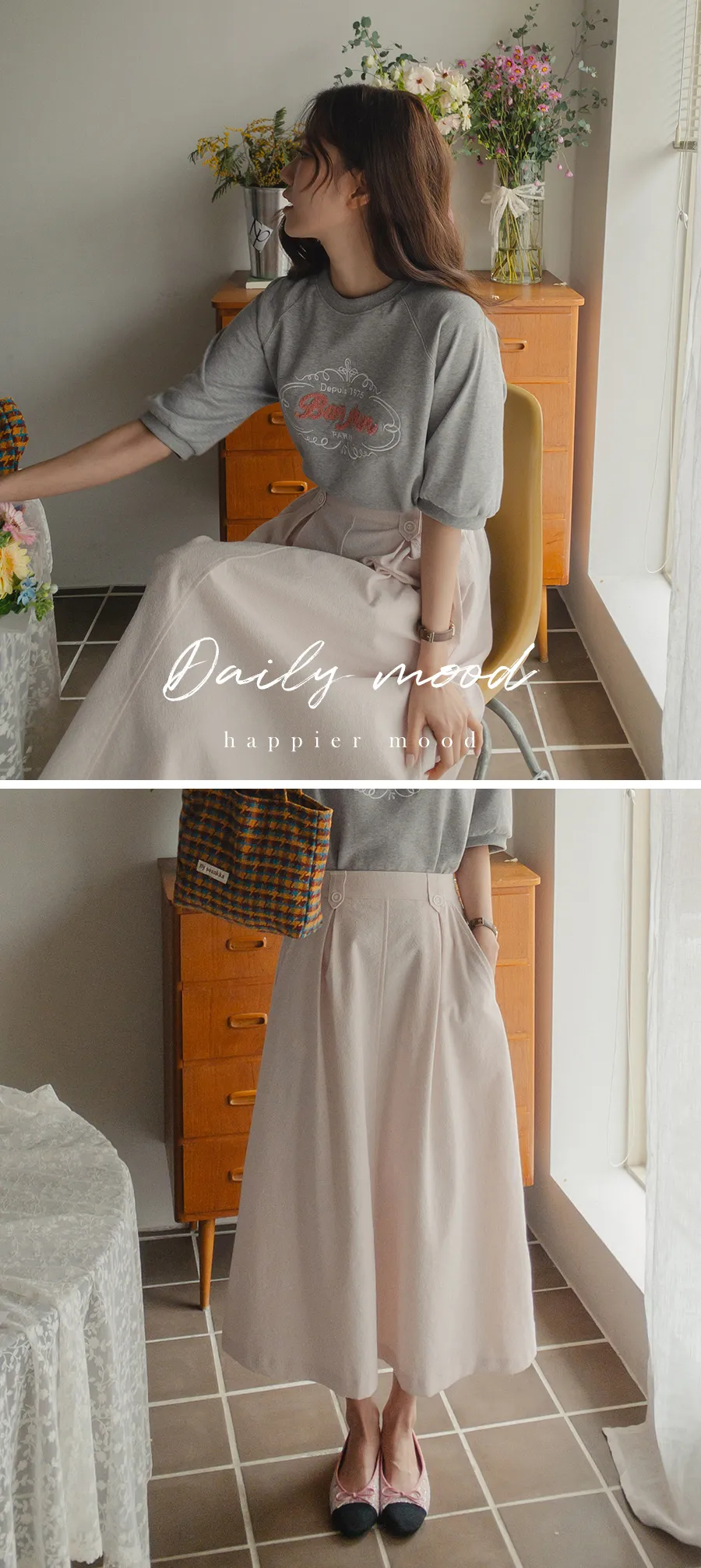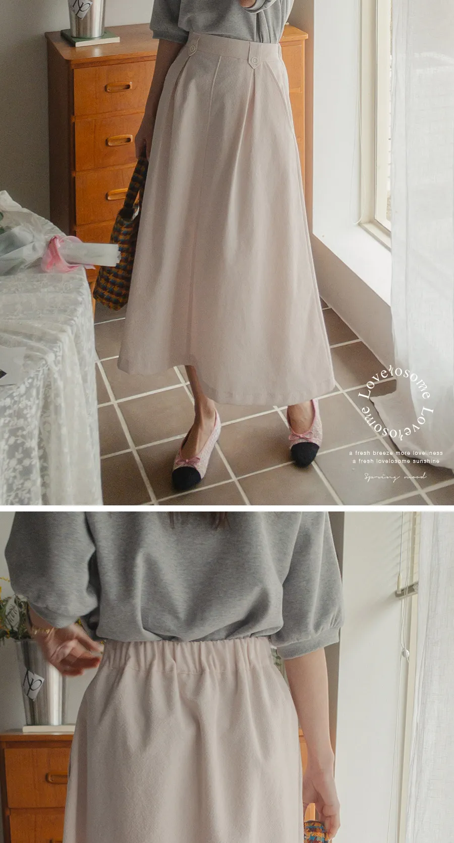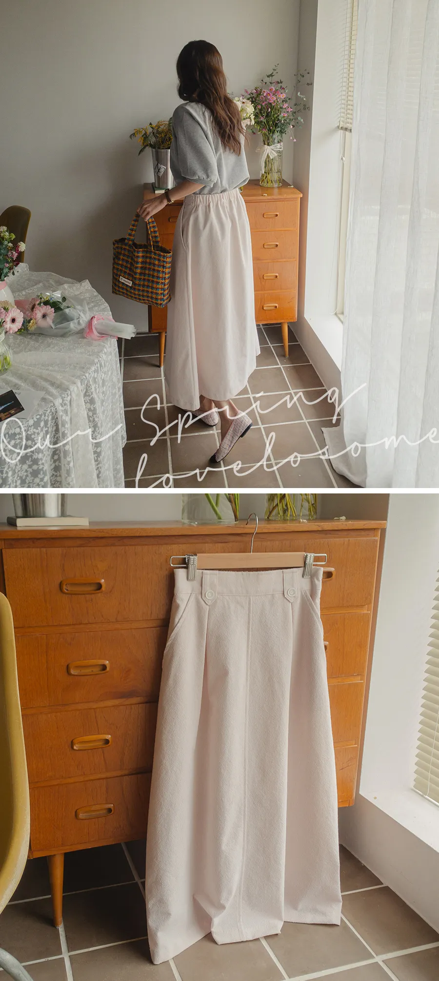 漂亮前鈕扣針摺設計傘擺A字剪裁中長裙