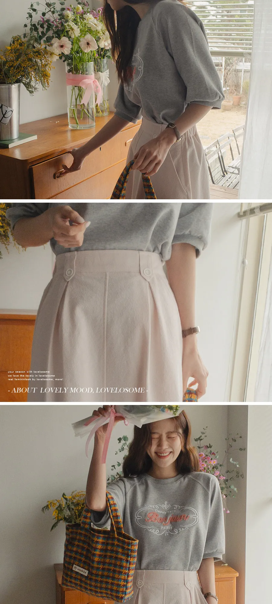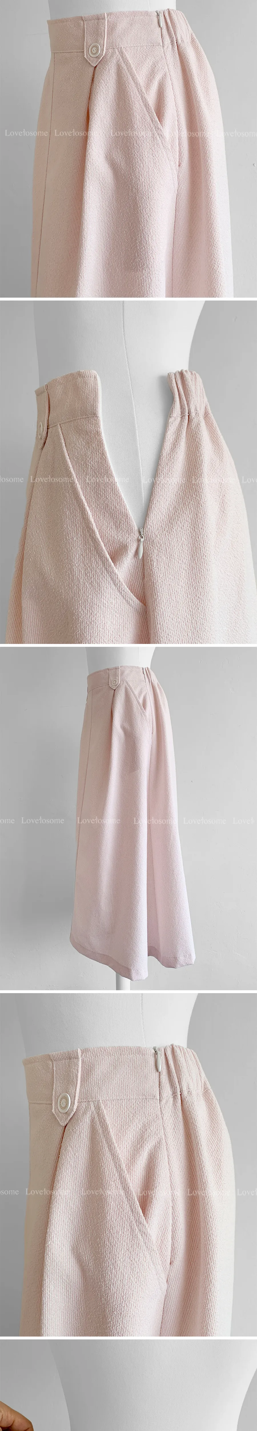 【傘擺A字剪裁,走路時很漂亮♡】【整體腰部有別針褶皺】【後腰帶有舒適感~】【小格子更有氣氛-】【前面兩顆鈕扣別針褶皺細節-♡ 】