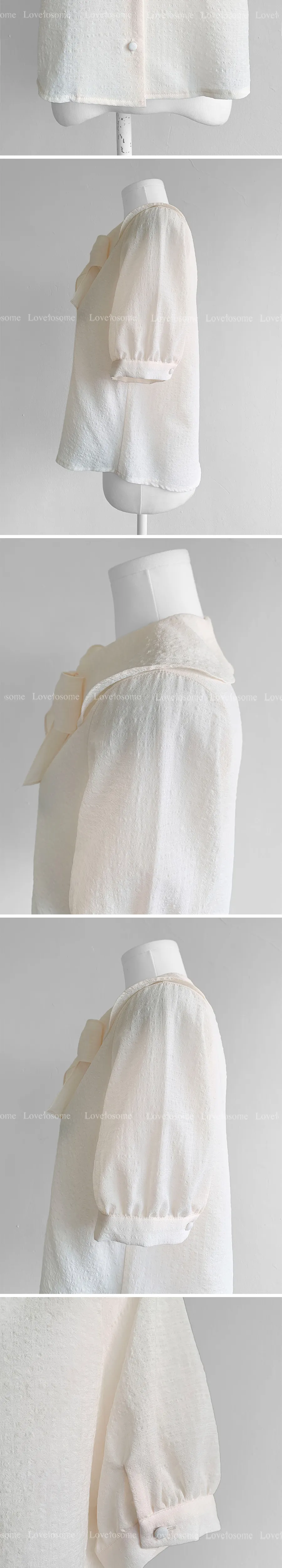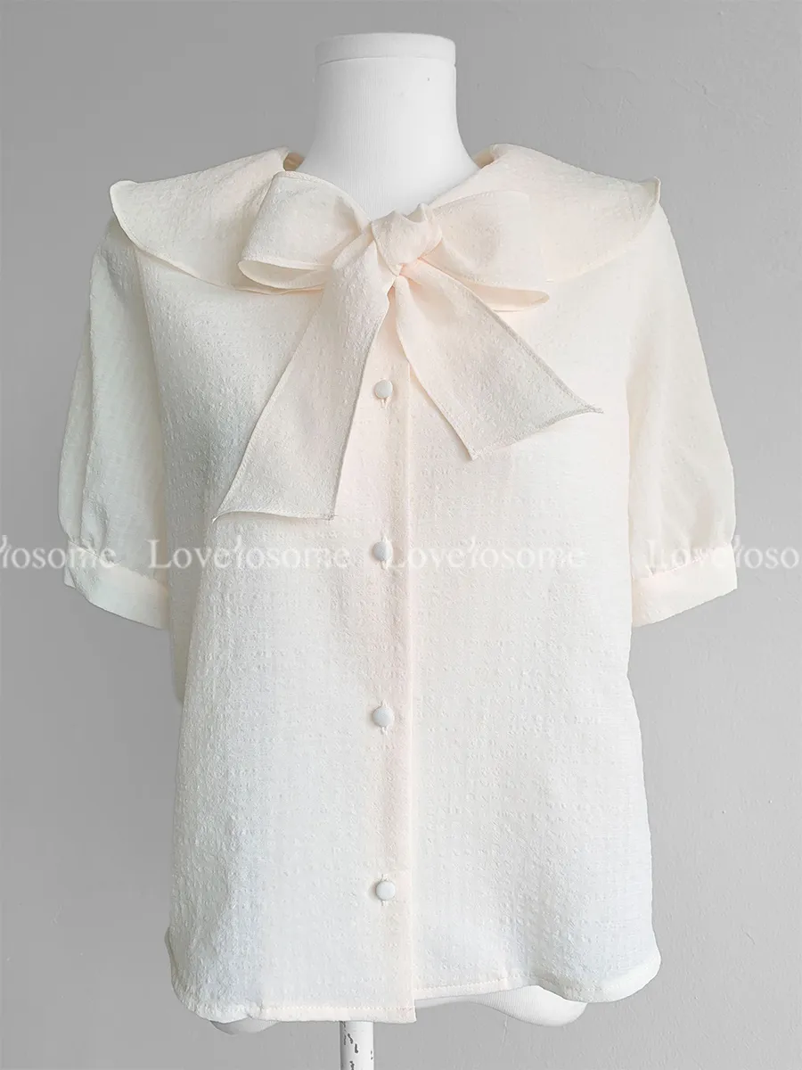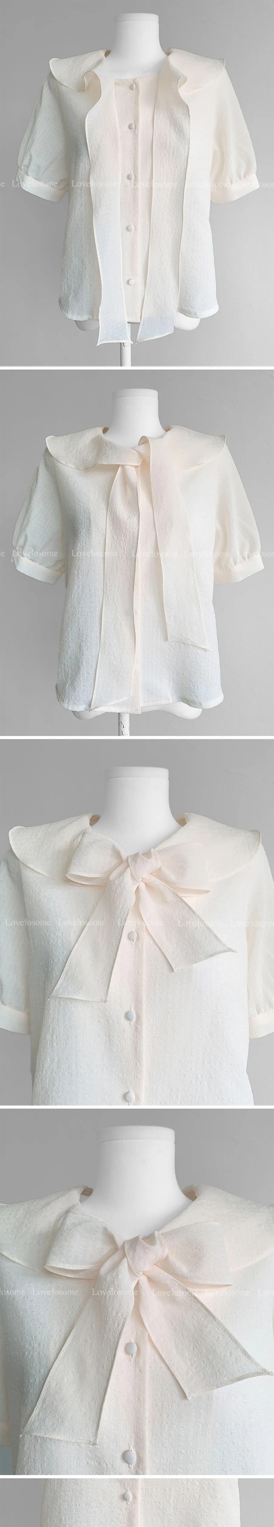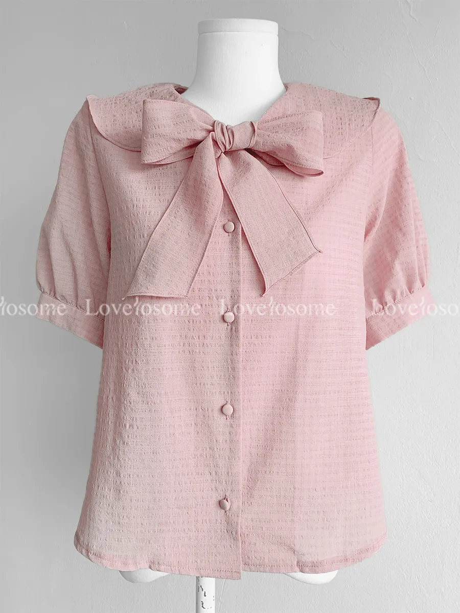 柔和領子綁帶設計排扣上衣