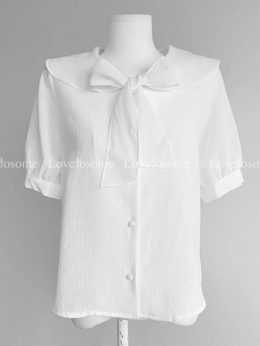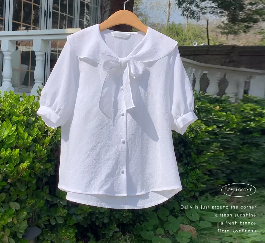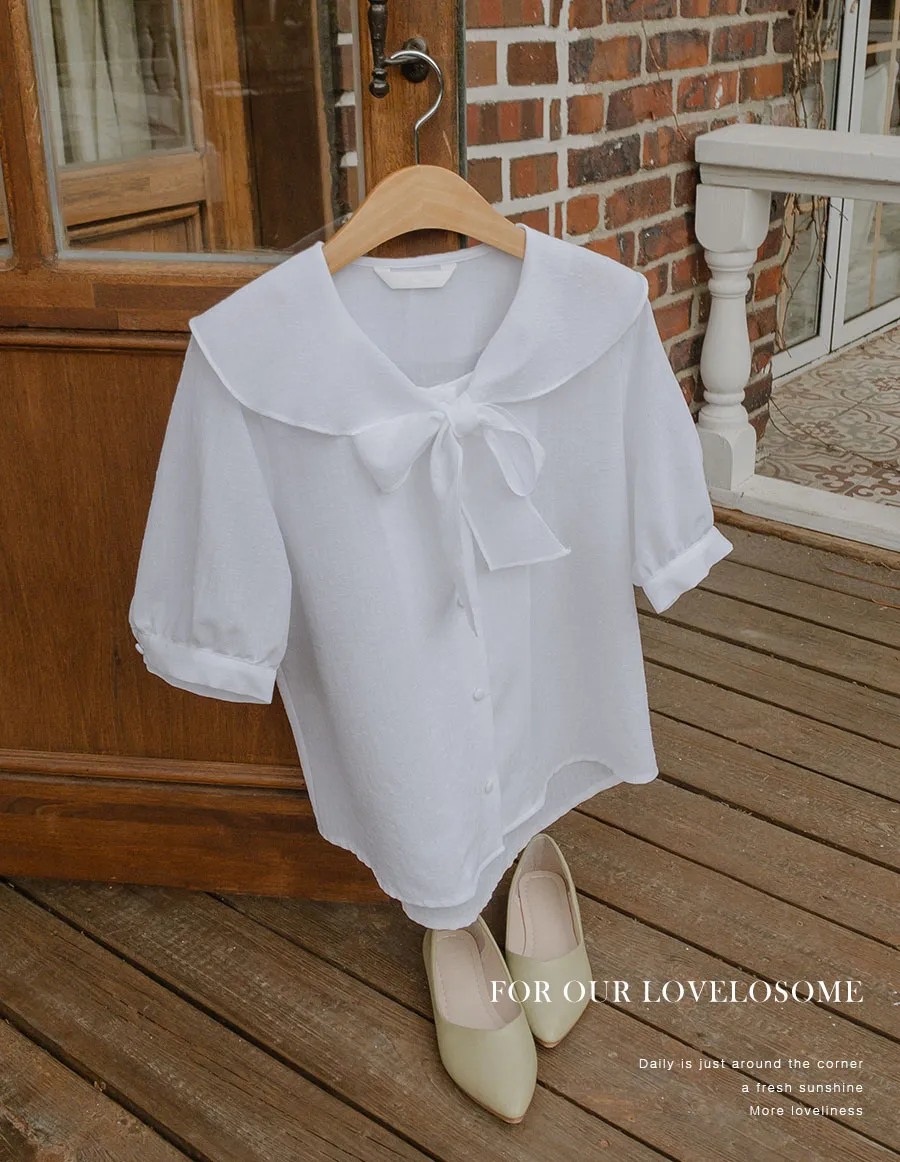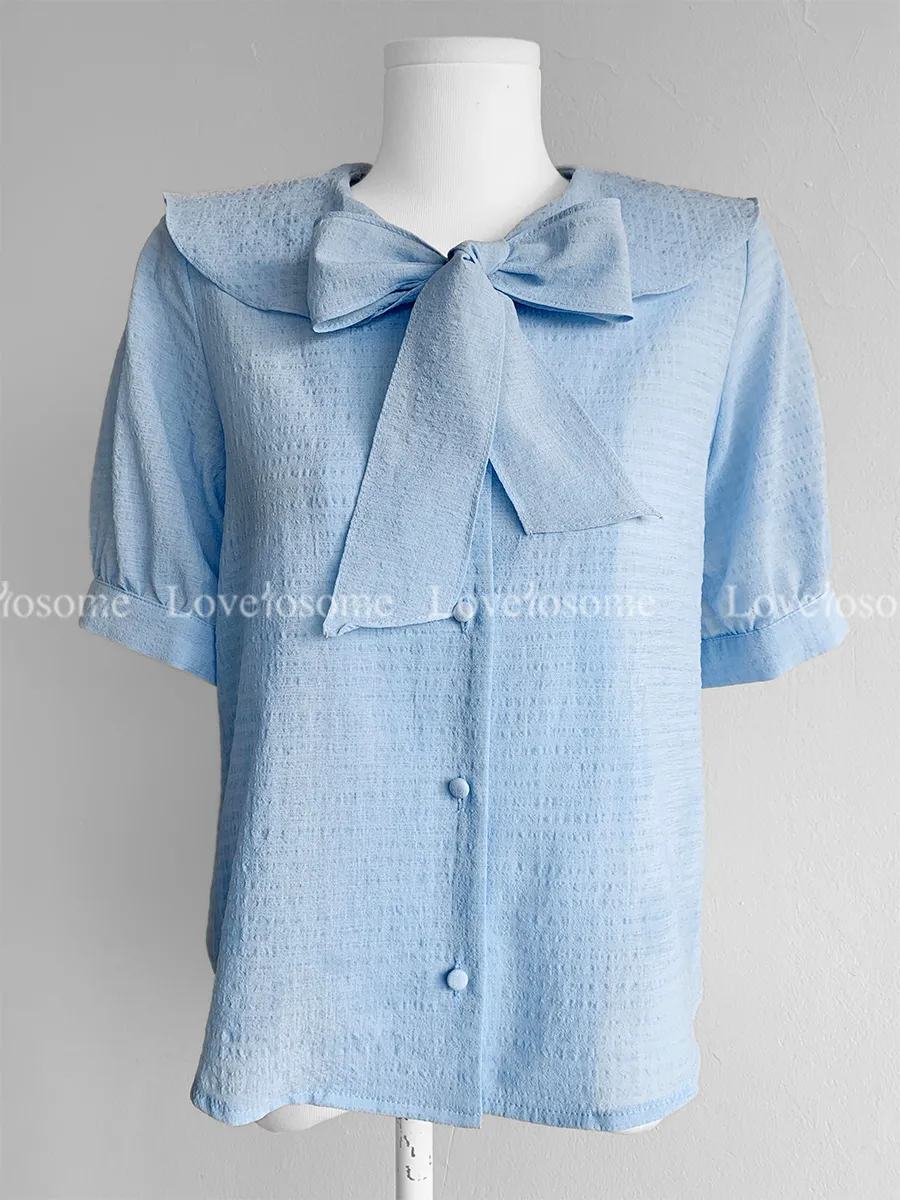 柔和領子綁帶設計排扣上衣