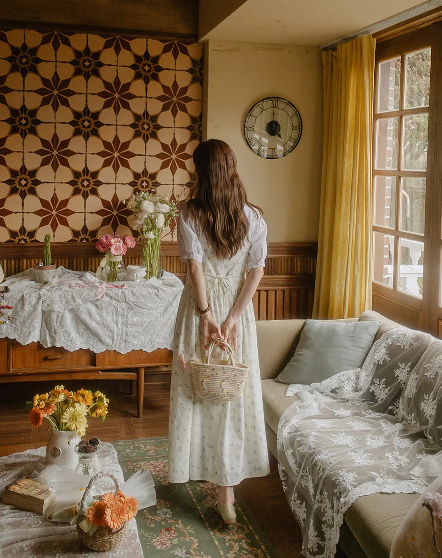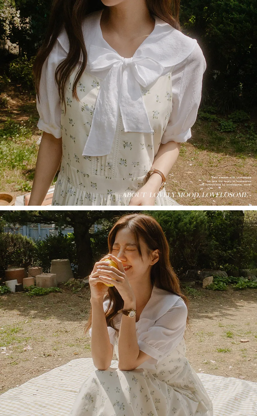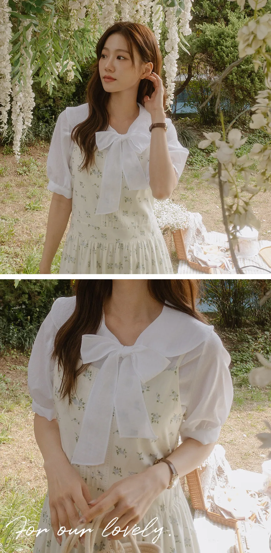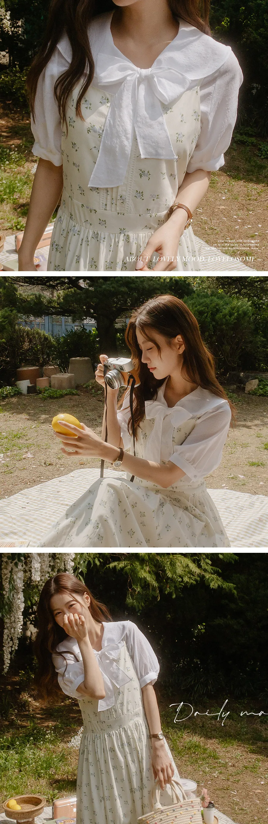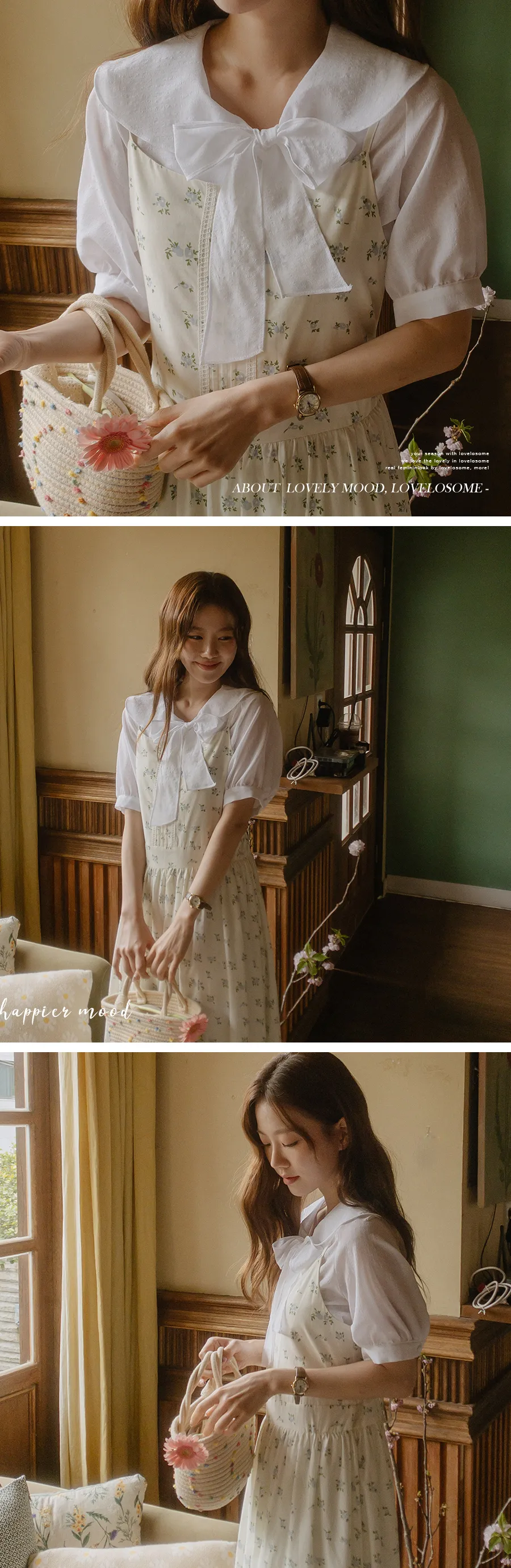 領子設計帶來的活潑氣氛!再用綁帶綁起來,那就更可愛了! 顏色以柔和的白色、奶油色、粉紅色和淡藍色作為點綴。
