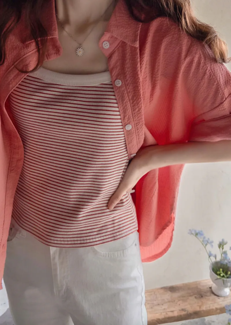 [條紋圖案的無袖上衣,打造精緻的外觀][搭配時的圖案帶出活力][非常適合與有吸引力的設計搭配][推薦作為彈力氨綸背心,非常適合時尚]