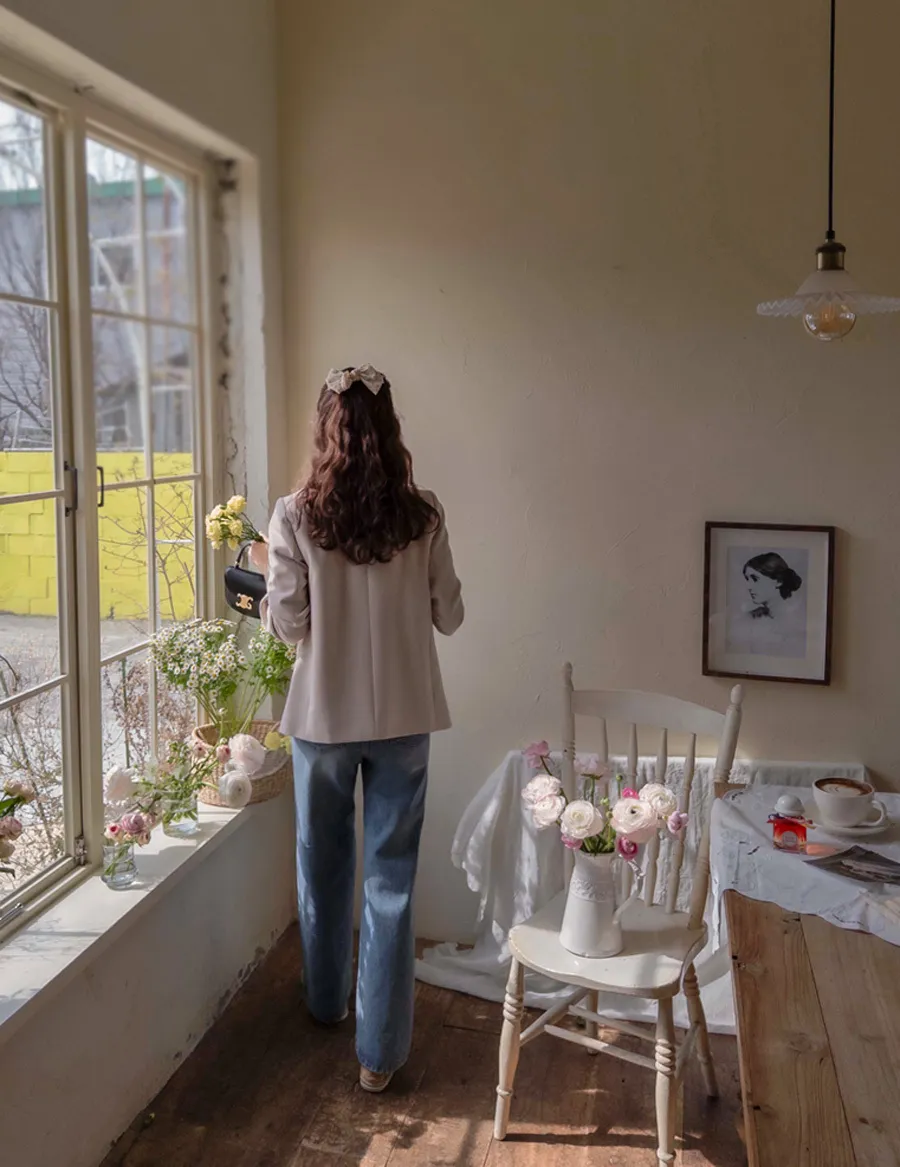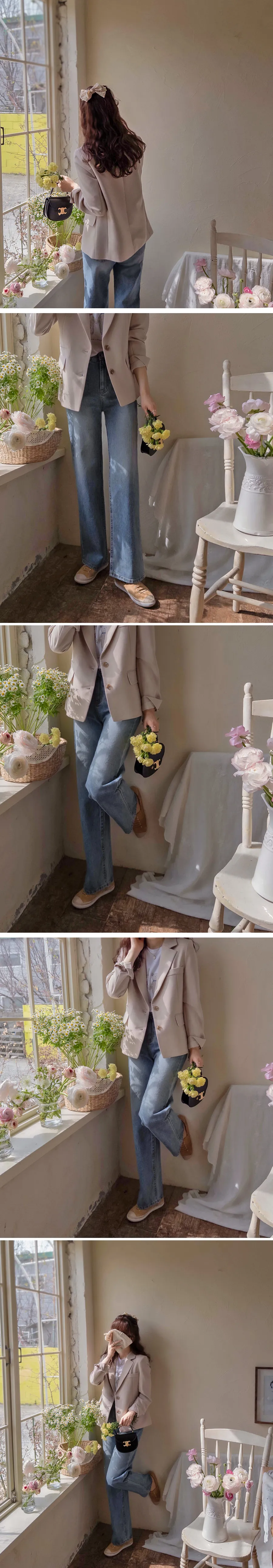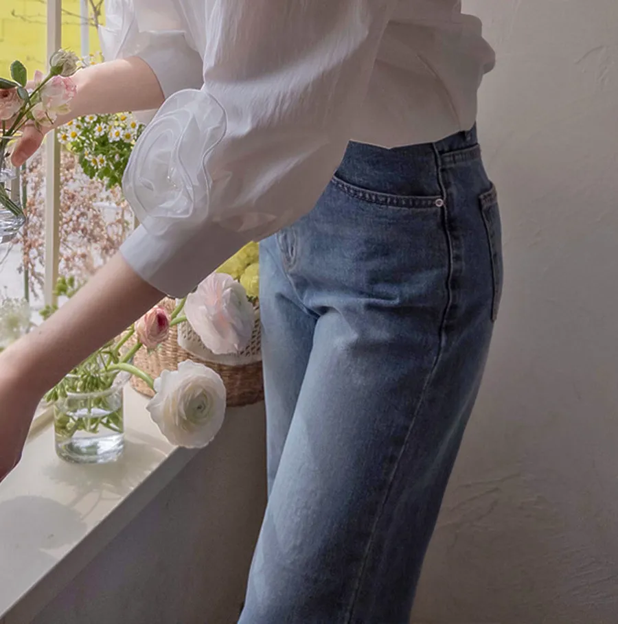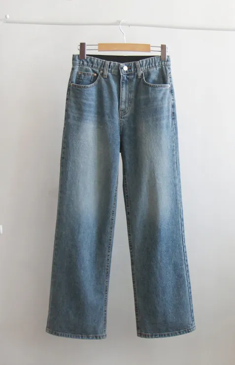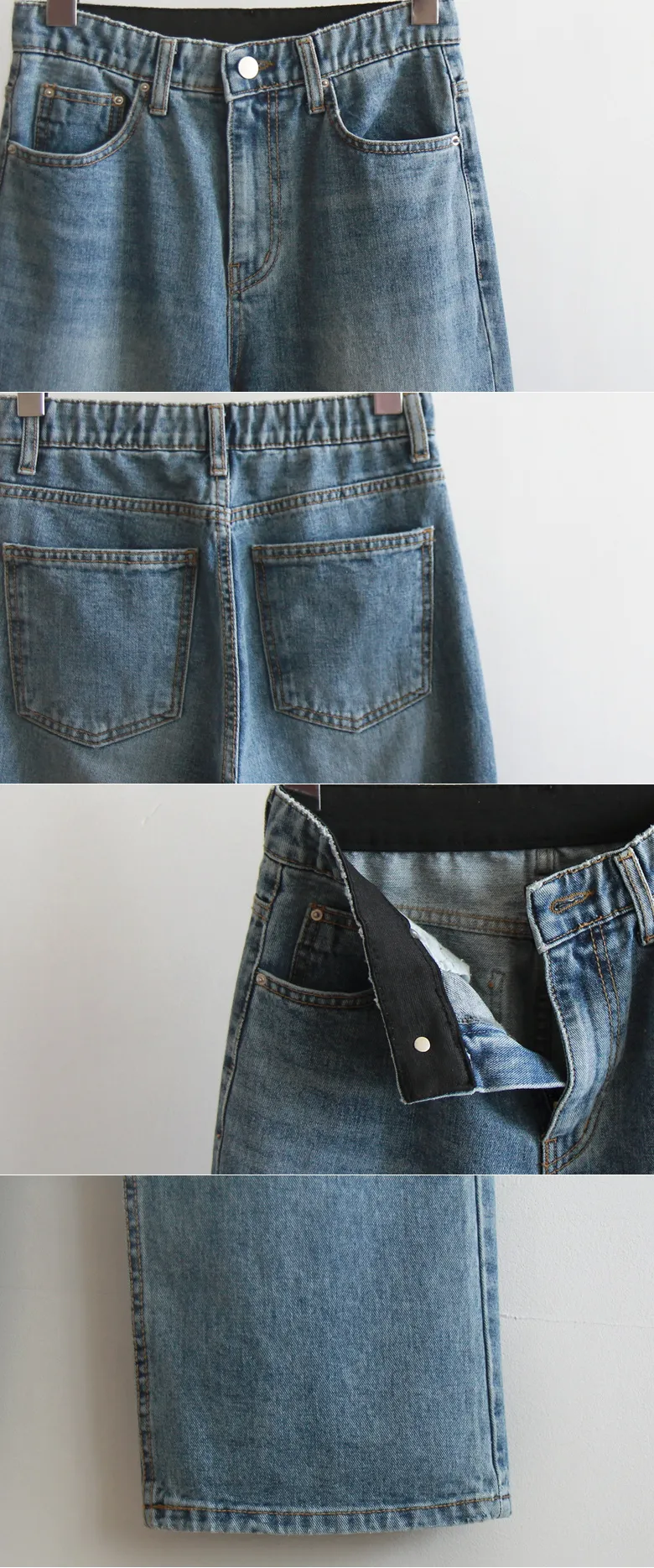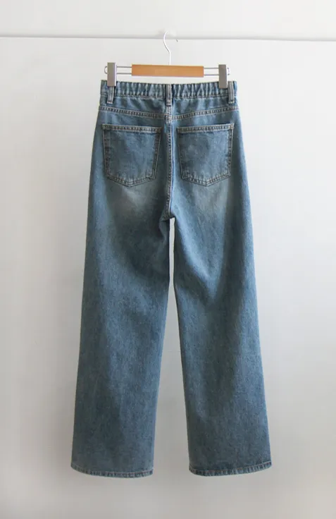 【內腰隱藏鬆緊處理】【半筒褲,時尚感】【穿著時,適度的筒型打造修長腿型】】【時尚合身的牛仔褲,很容易搭配】