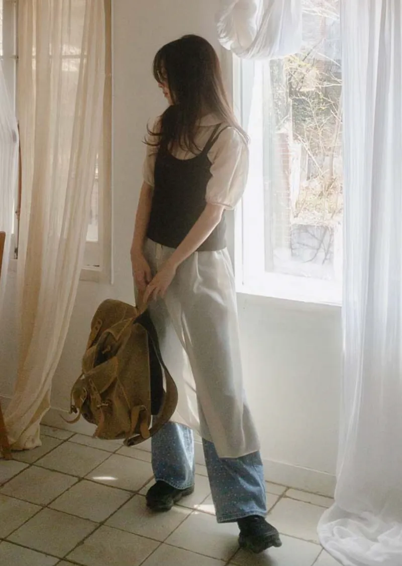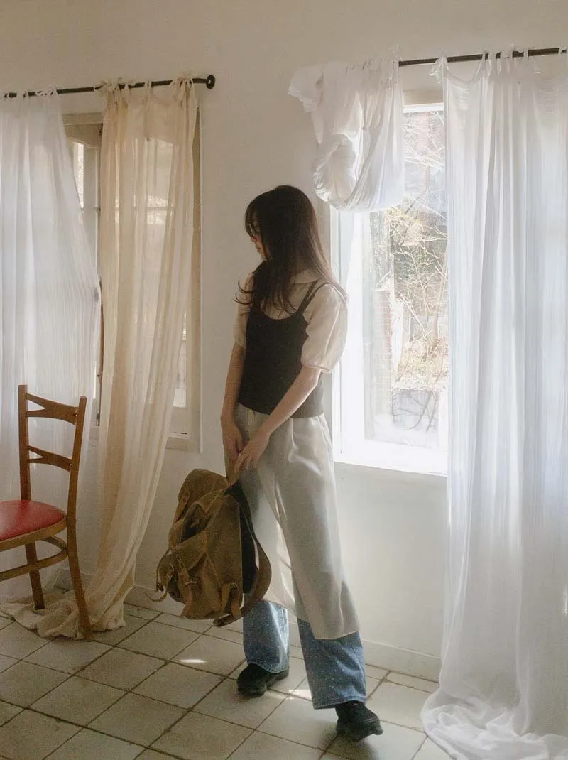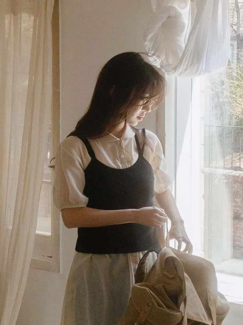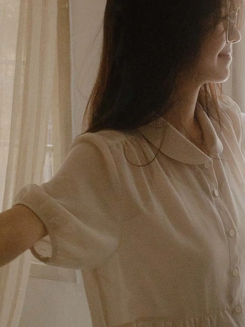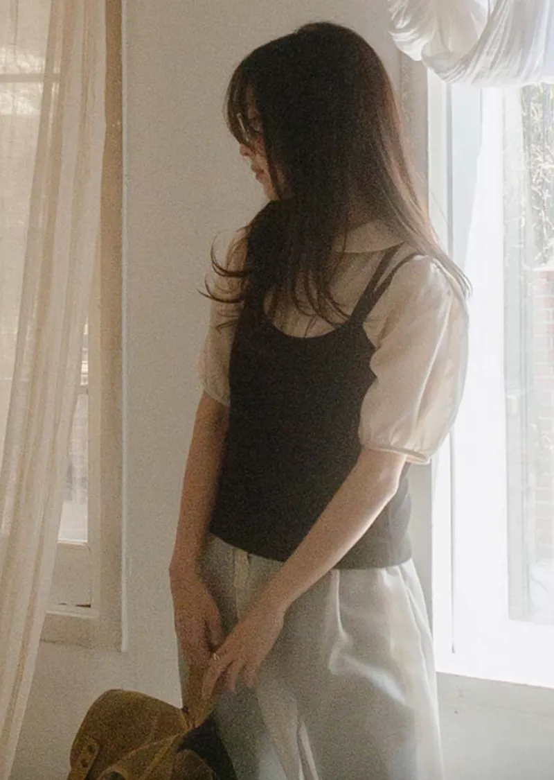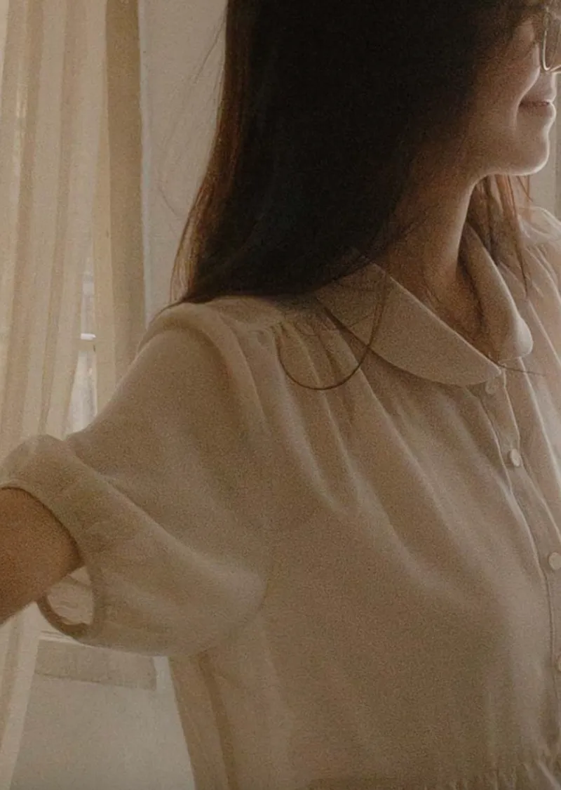 【最小圓領】【雪紡材質】【透視設計】【輕質雪紡材質製成的連身裙,非常適合疊穿:) 】【增加了簡約的圓領和腰線以下的抽褶細節,還能增添可愛的心情!】【純粹的設計因其精緻的氛圍而脫穎而出。 採用透膚設計,與褲子疊穿並作為焦點穿著真是太棒了!】【使用前面的按鈕即可輕鬆開啟和關閉,腰線的剪裁細節位置有點高,甚至還有讓身體線條看起來更長的效果:)】