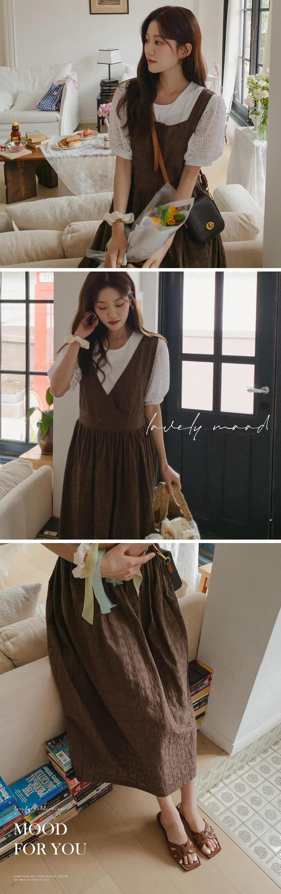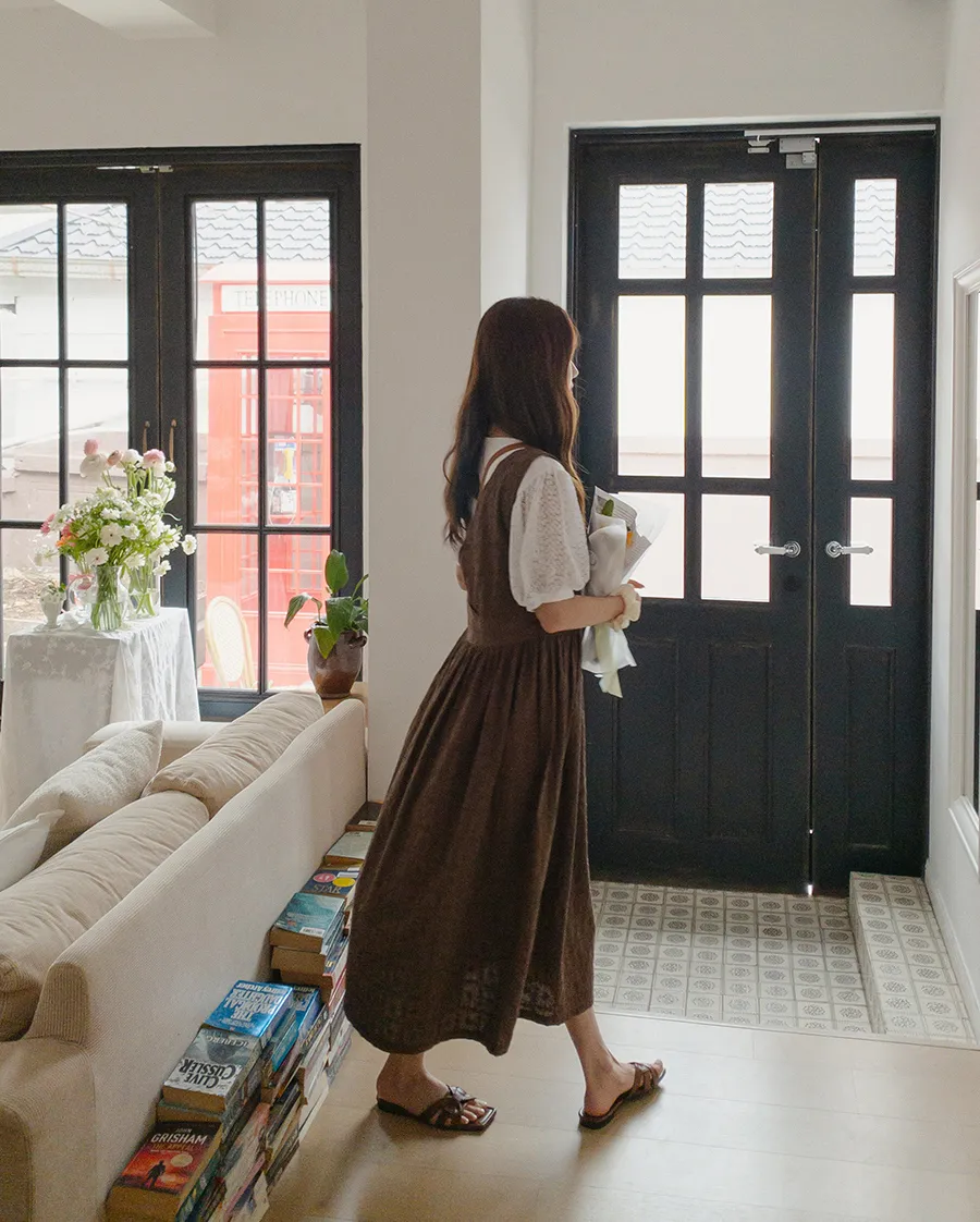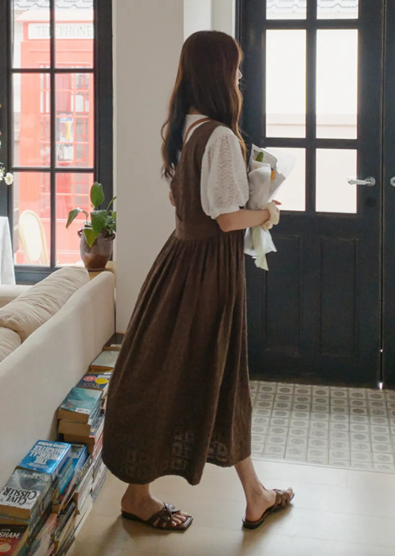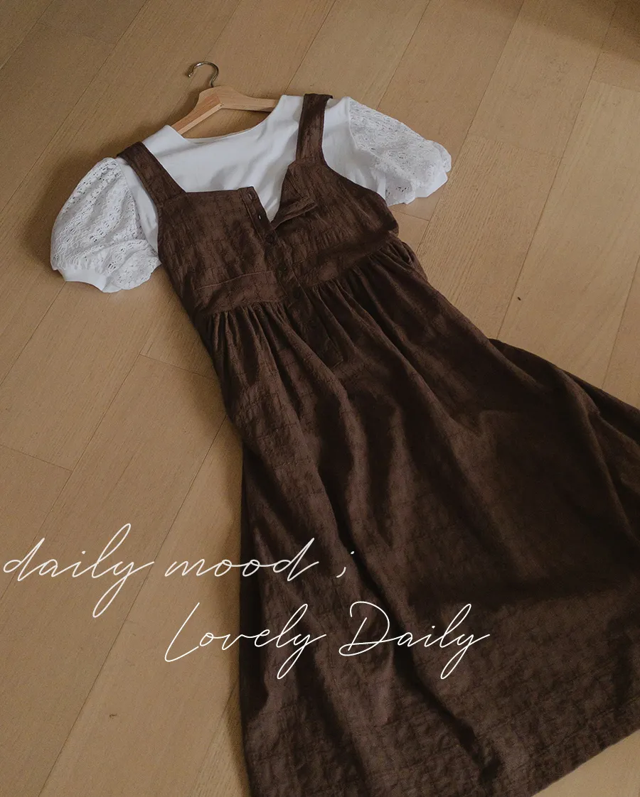【一款百搭的背心連身裙,獨特兩穿設計🤍】【與方領口相配,單穿也很棒! 】【有微妙的圖案,所以成為微妙的點】 【長長的長度美美的遮蓋腿部線條】