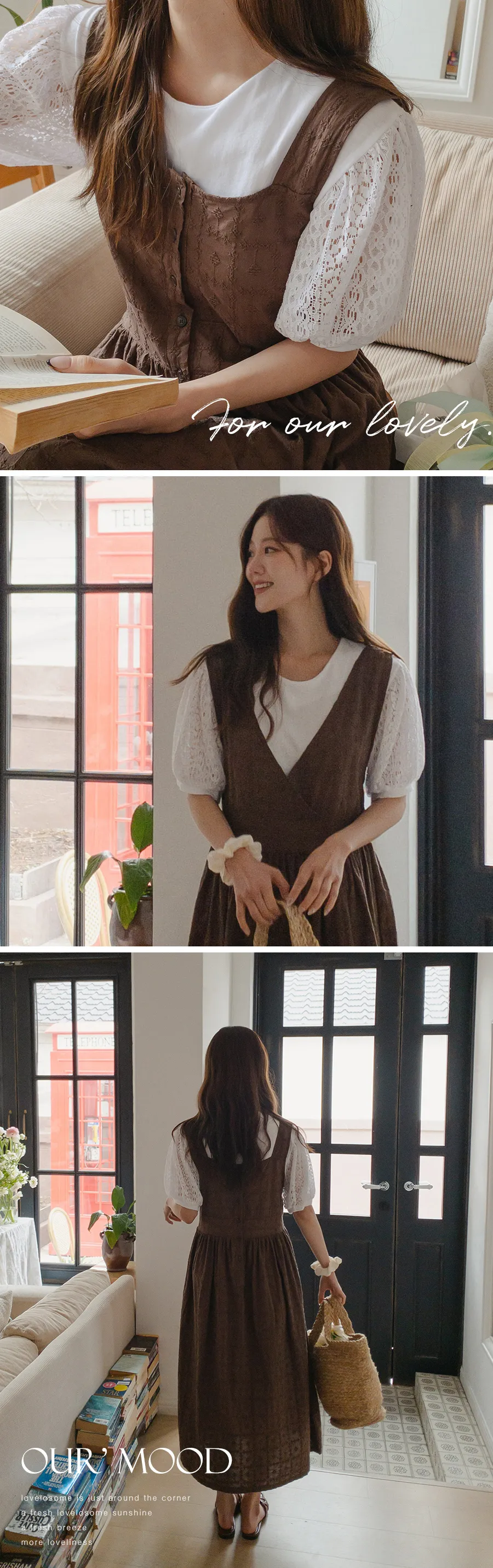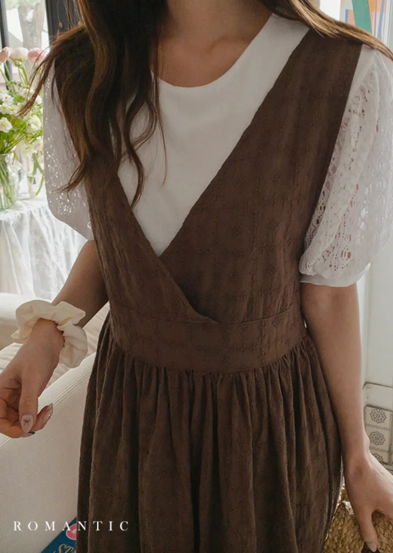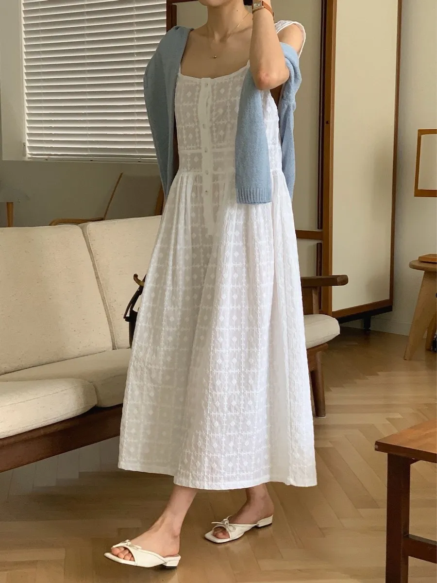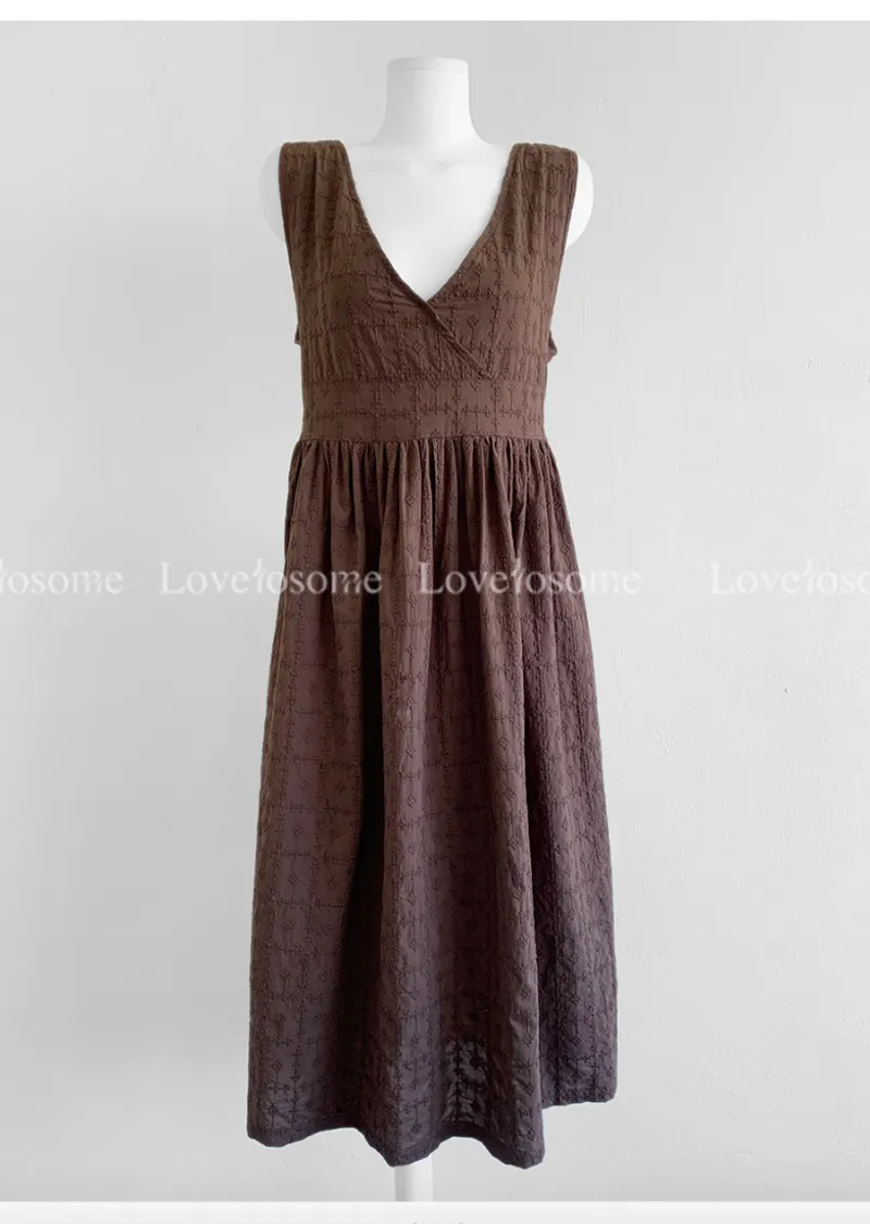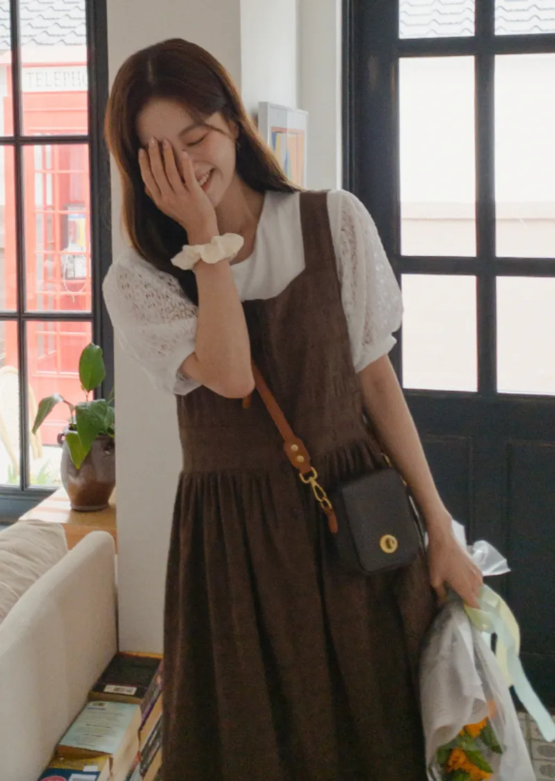 【一款百搭的背心連身裙,獨特兩穿設計🤍】【與方領口相配,單穿也很棒! 】【有微妙的圖案,所以成為微妙的點】 【長長的長度美美的遮蓋腿部線條】