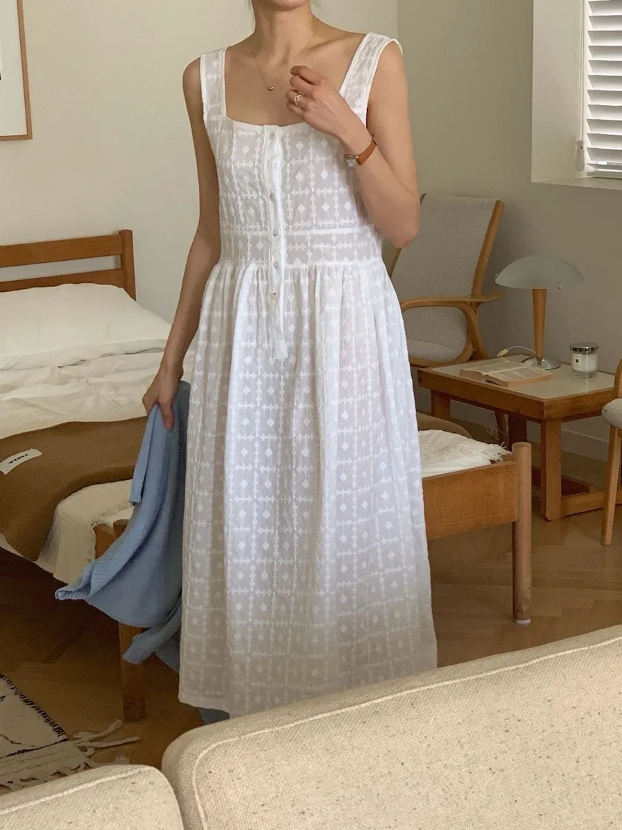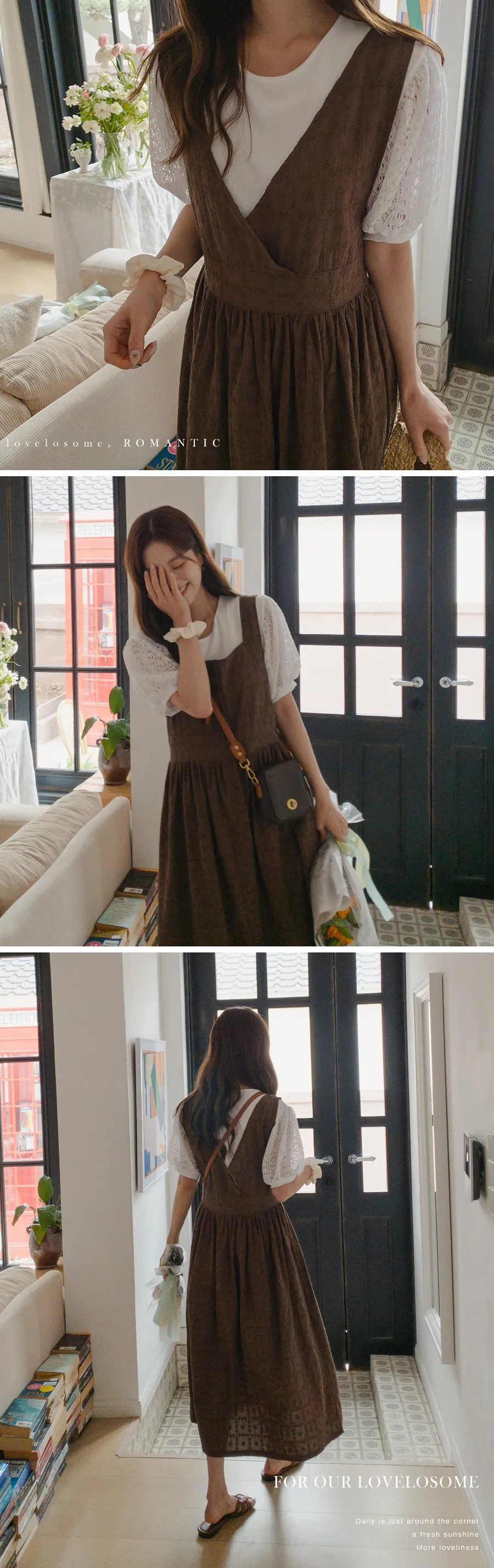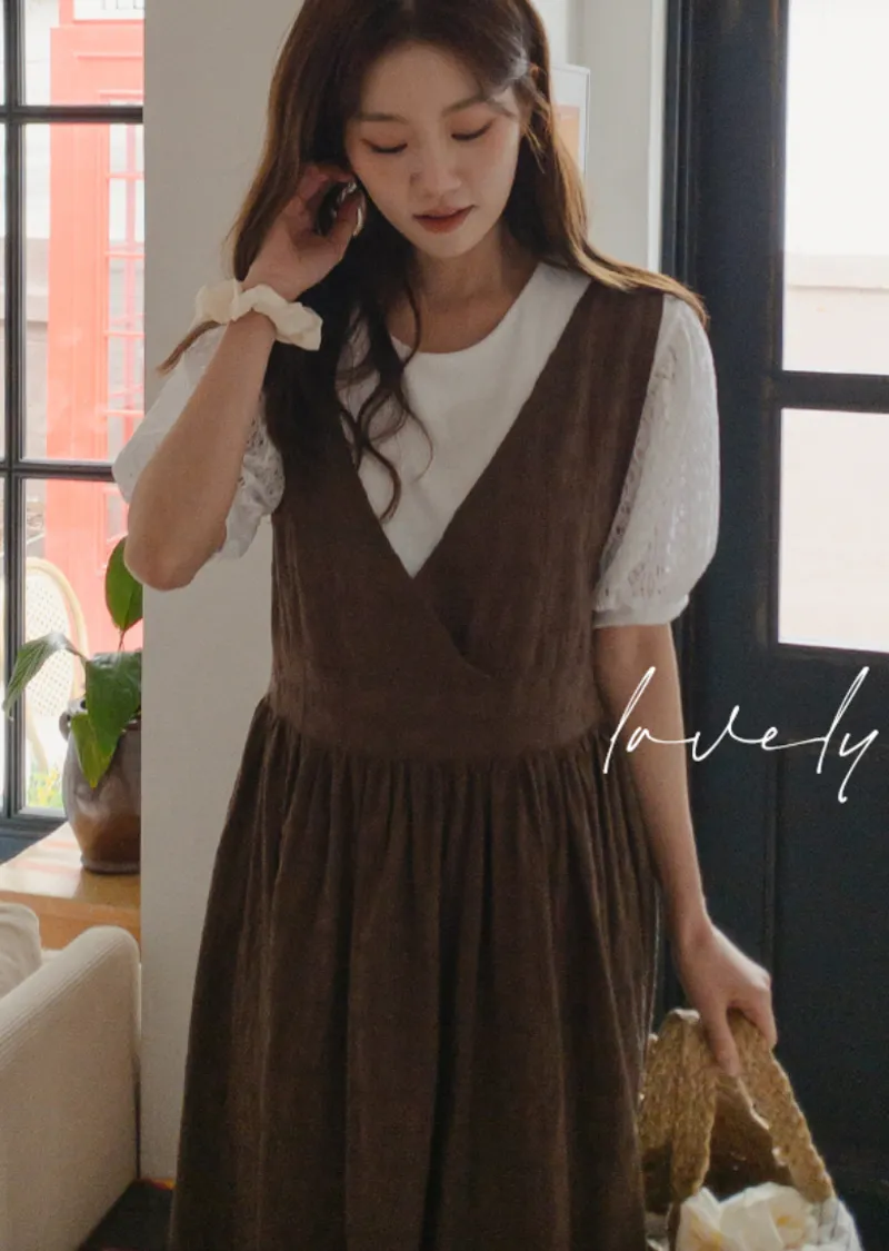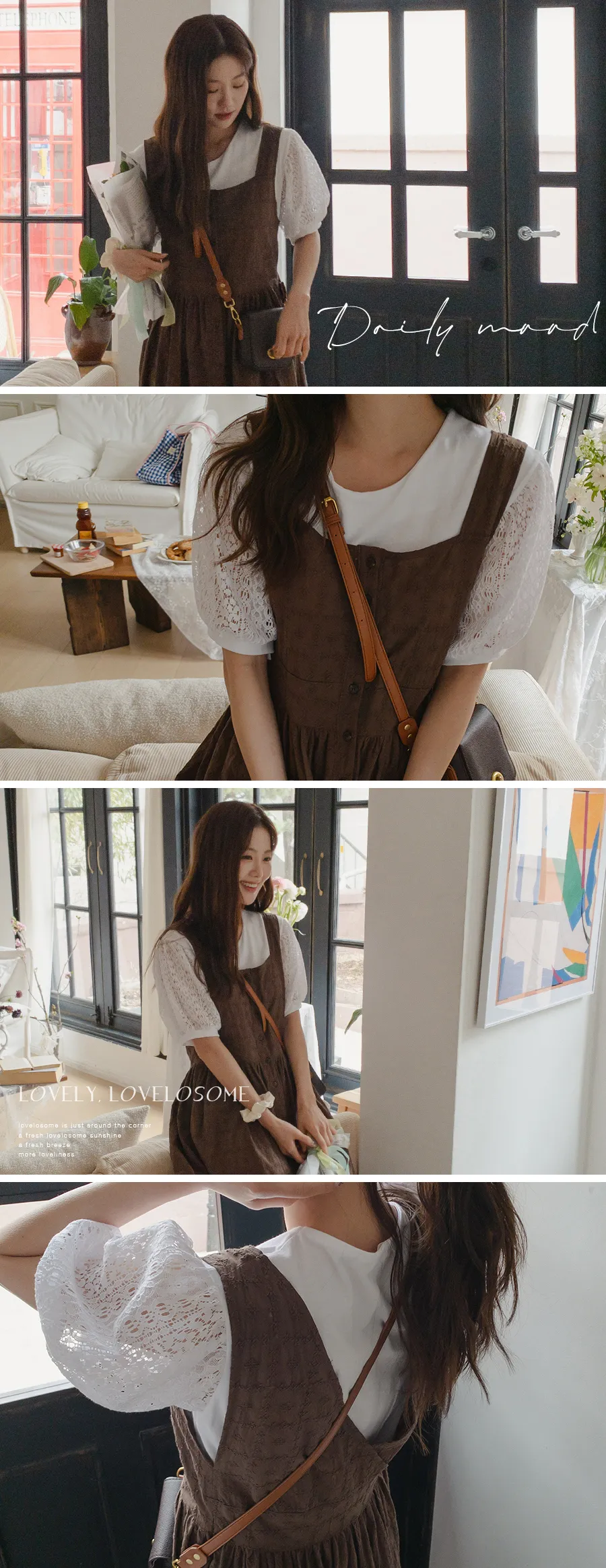 【一款百搭的背心連身裙,獨特兩穿設計🤍】【與方領口相配,單穿也很棒! 】【有微妙的圖案,所以成為微妙的點】 【長長的長度美美的遮蓋腿部線條】