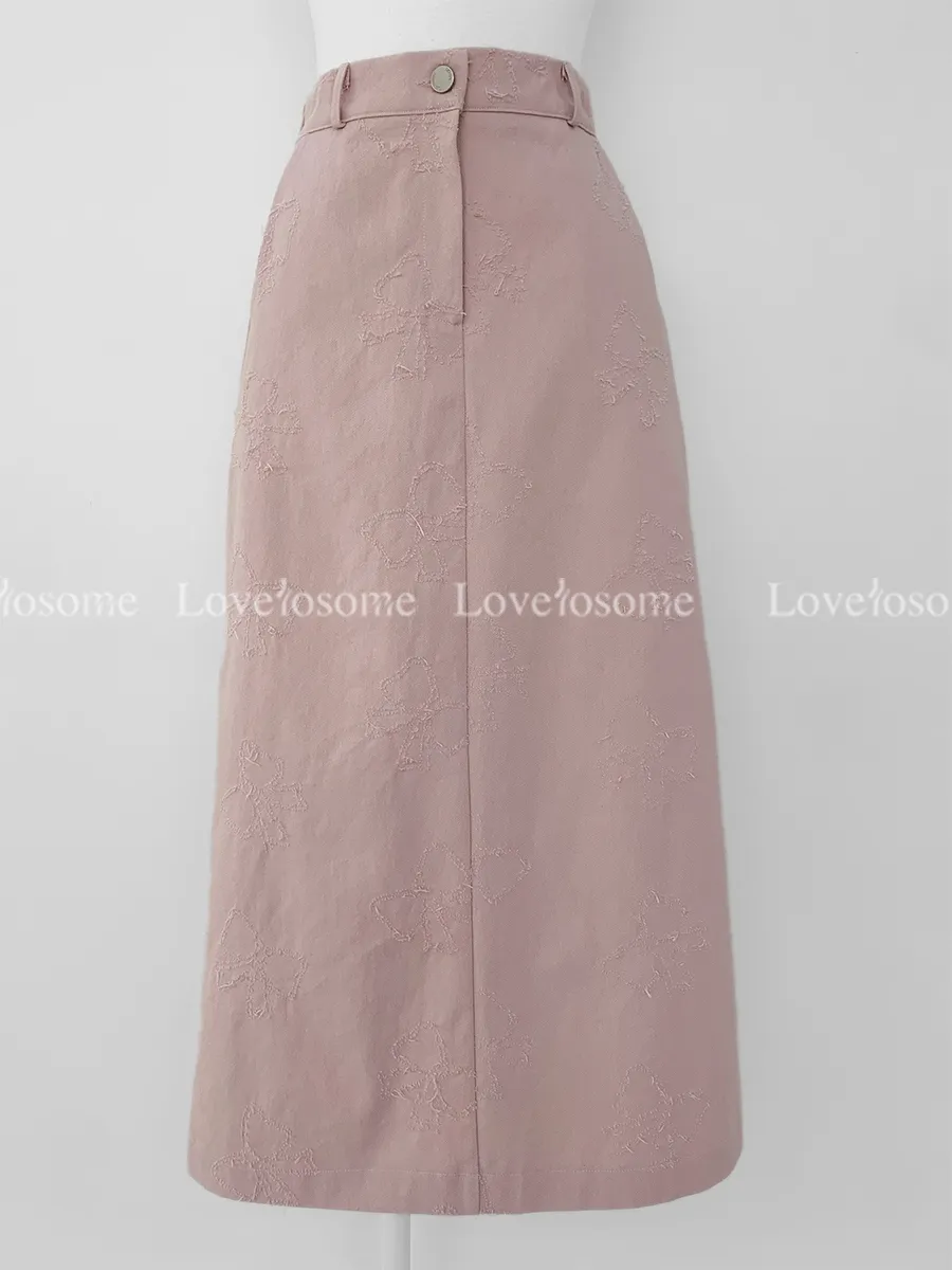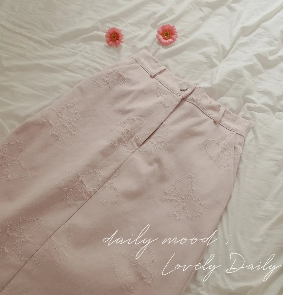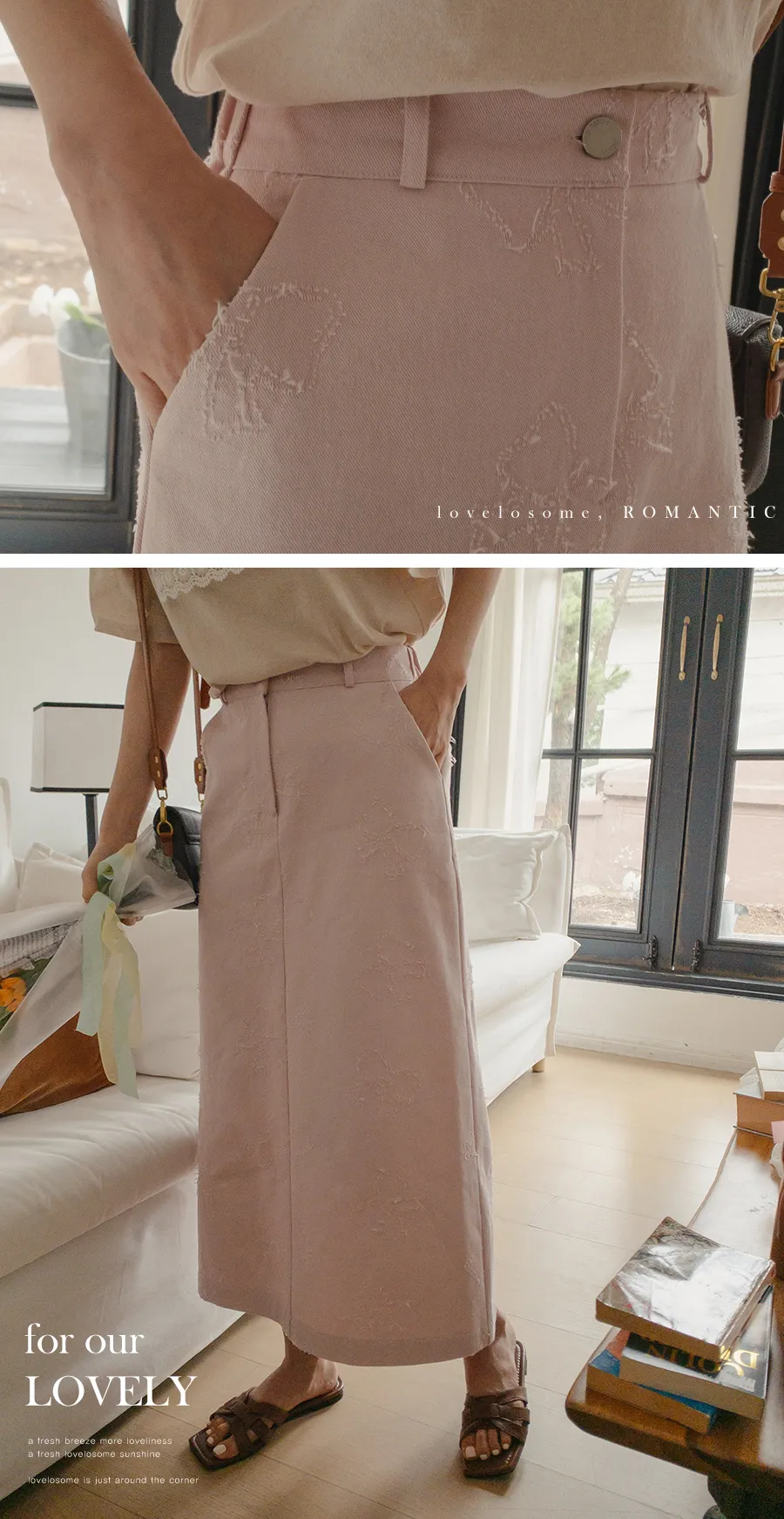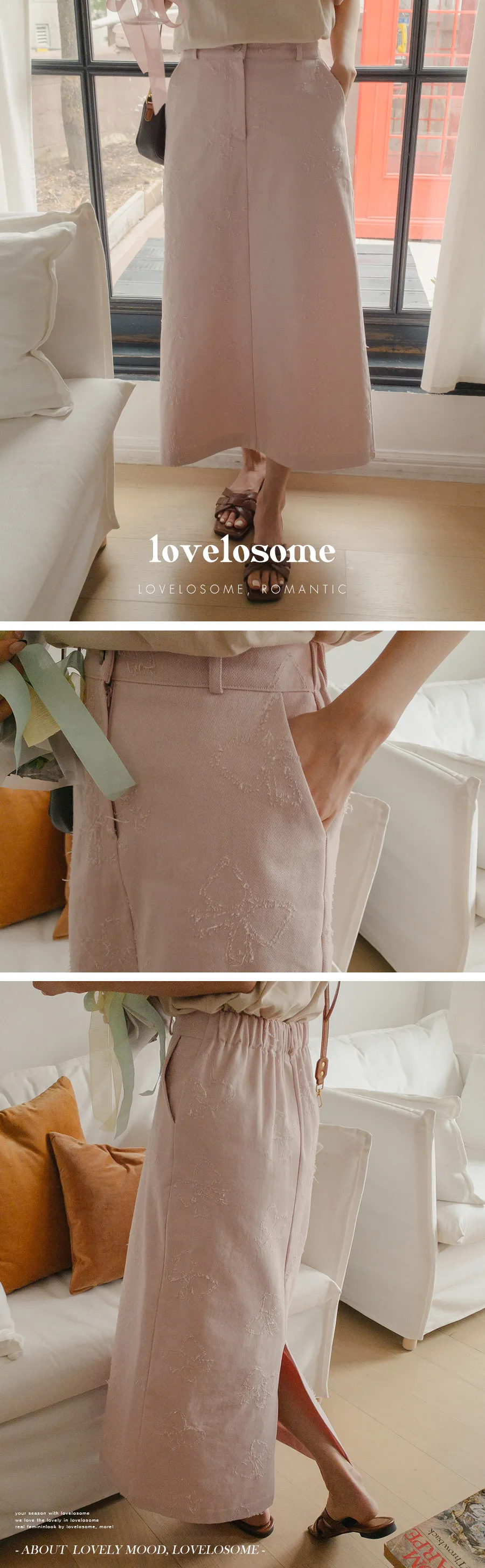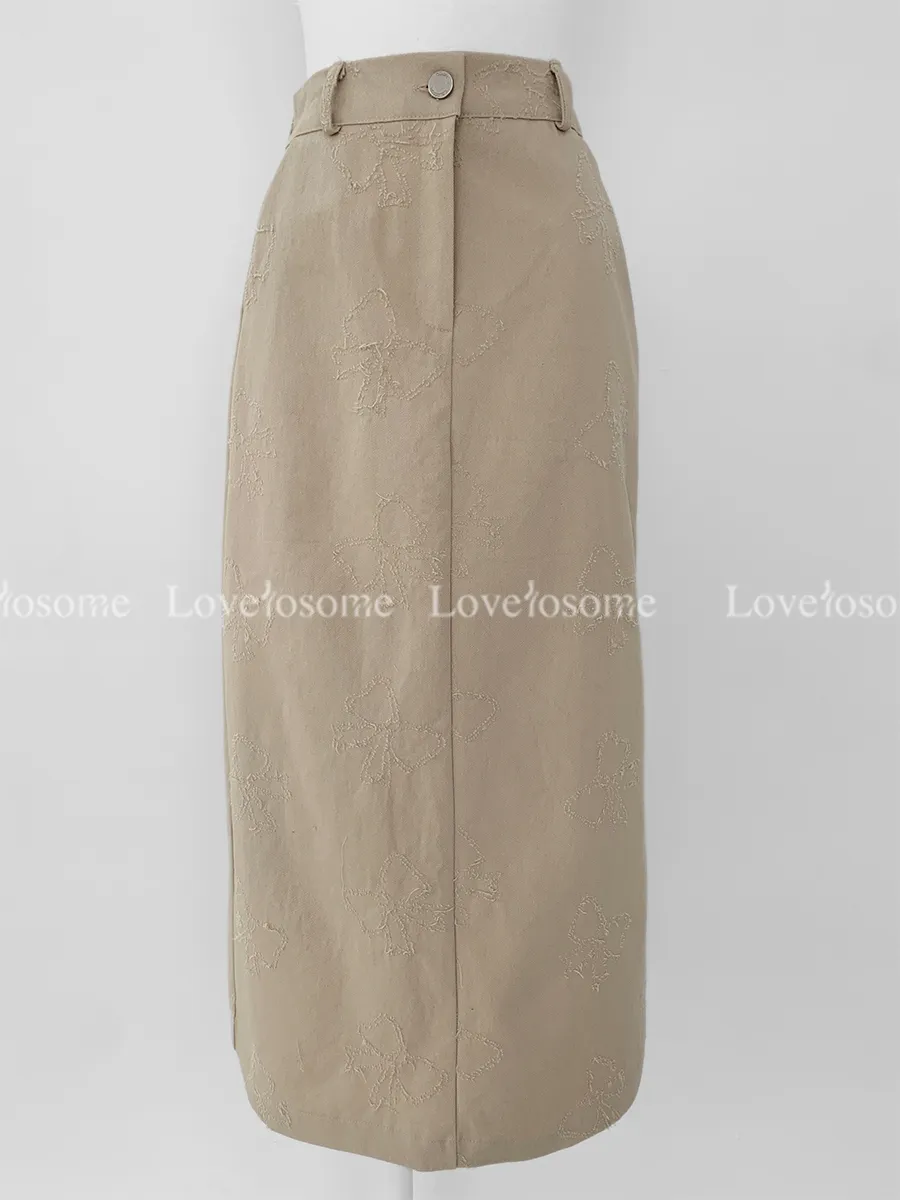 魅力蝴蝶結刺繡H剪裁後開衩中長裙