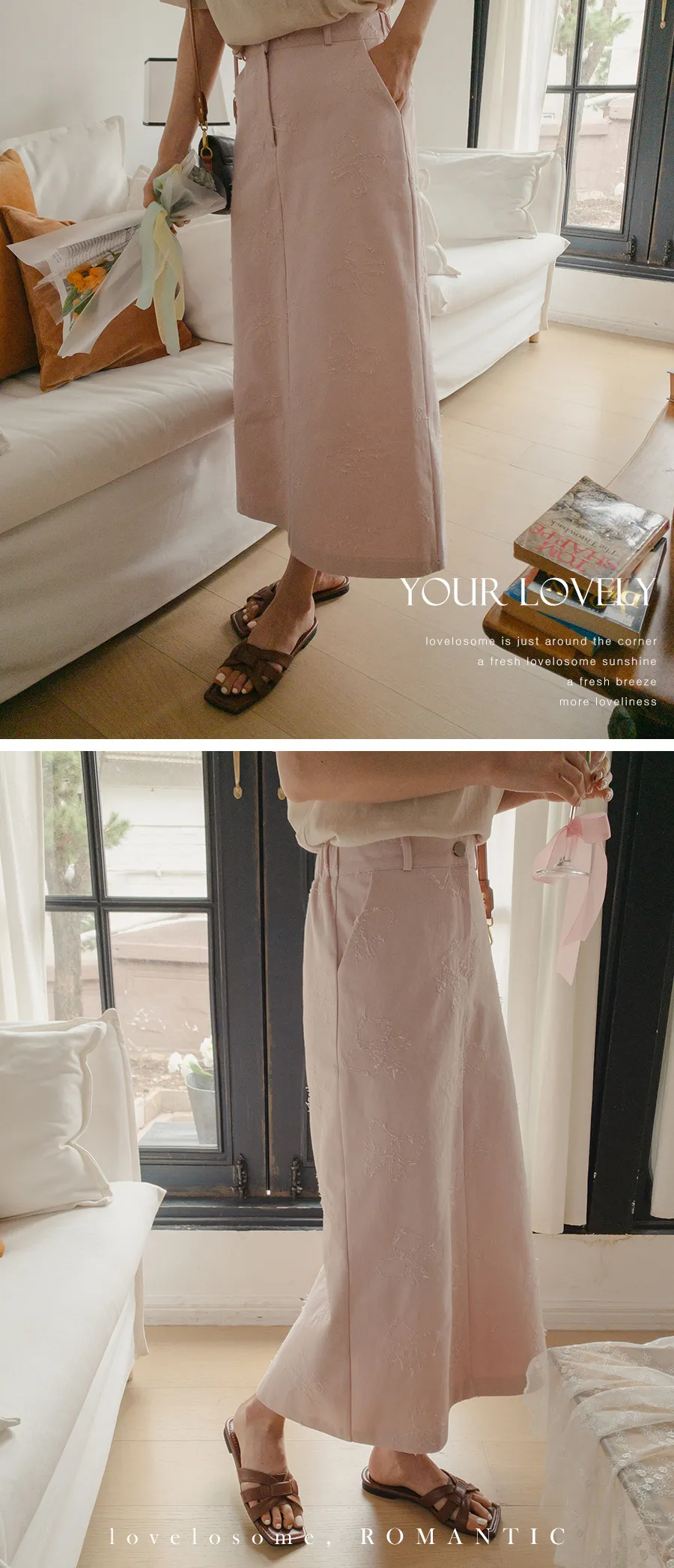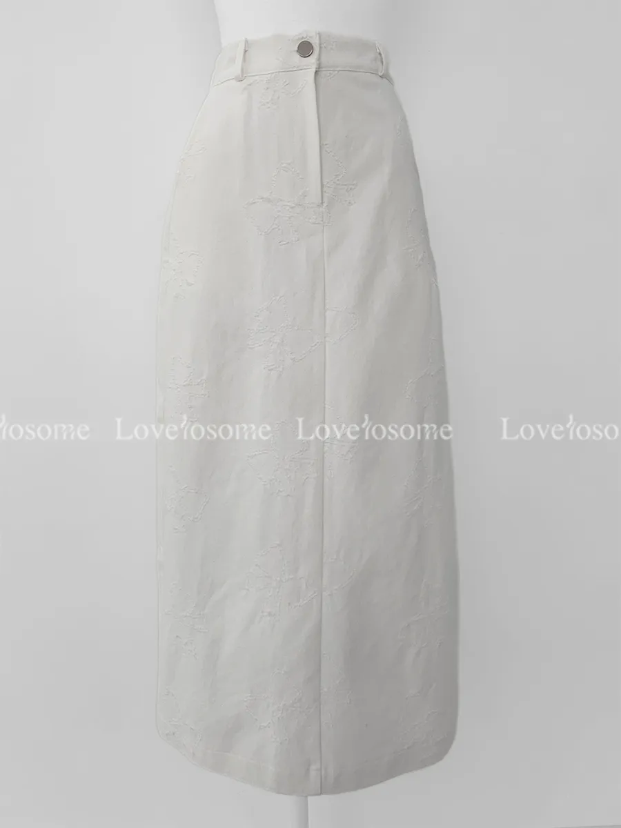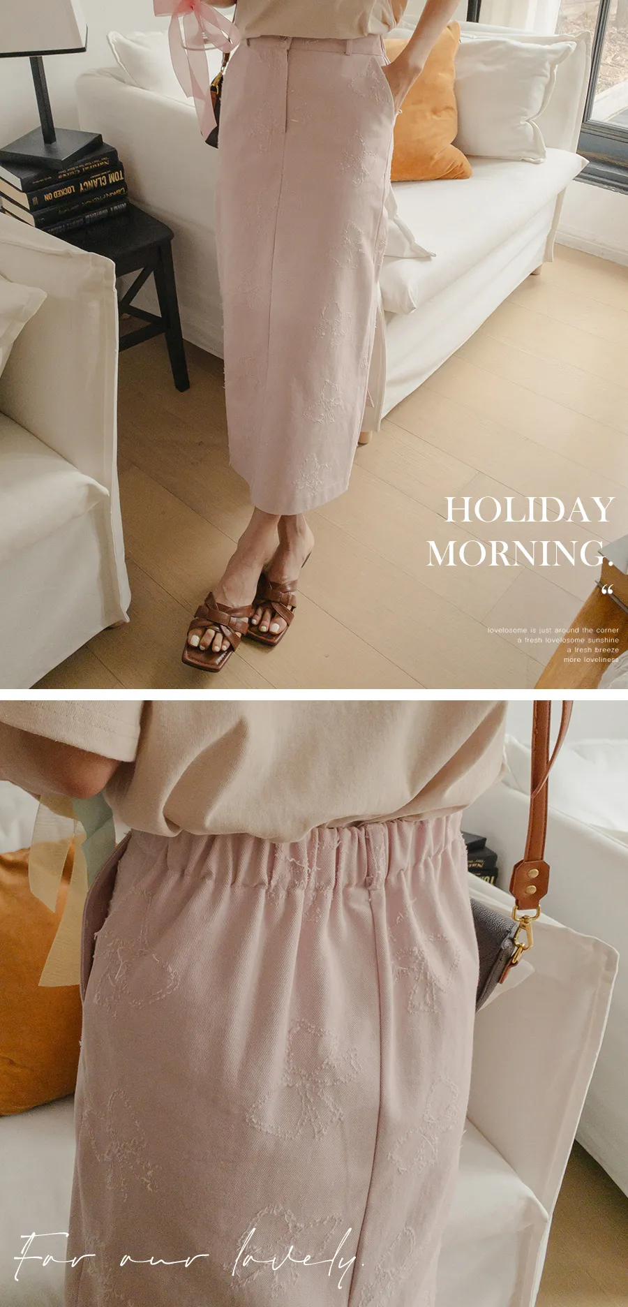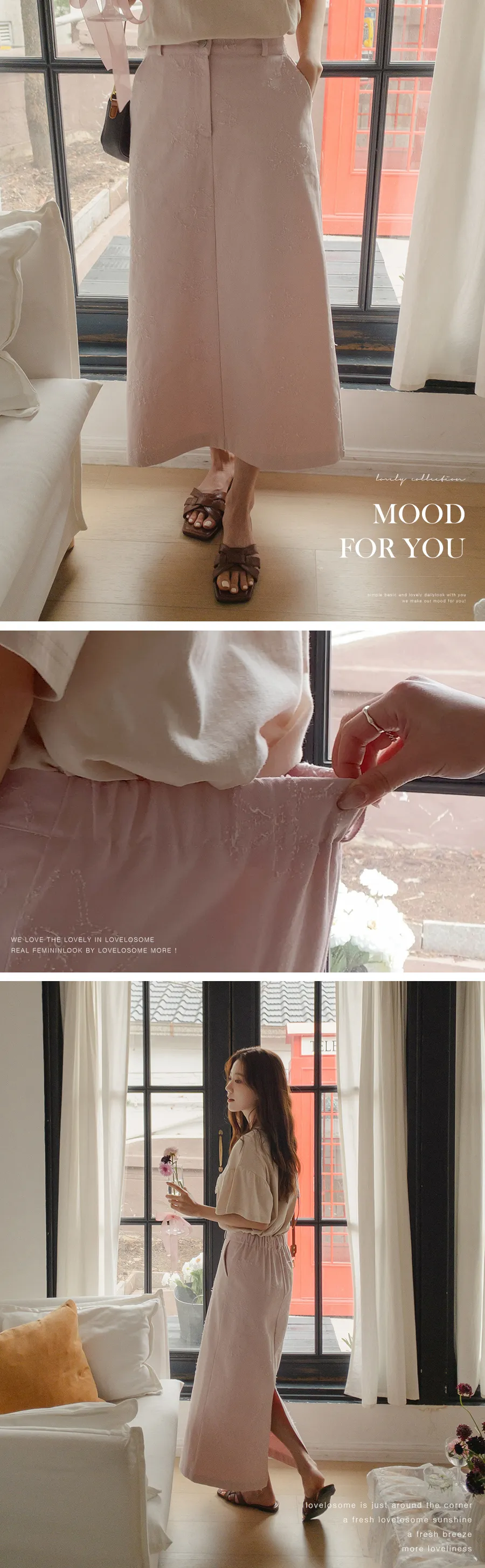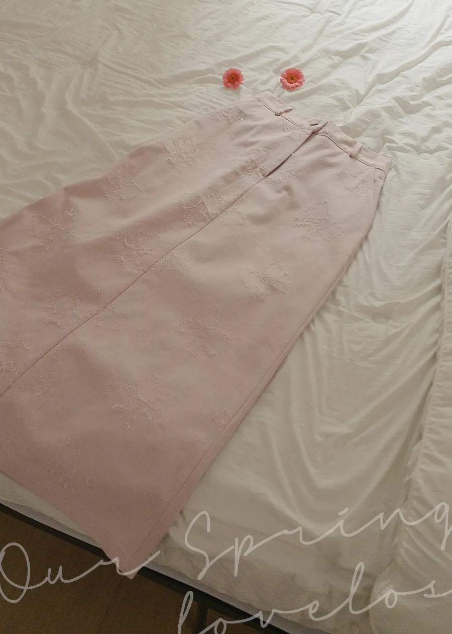 魅力蝴蝶結刺繡H剪裁後開衩中長裙