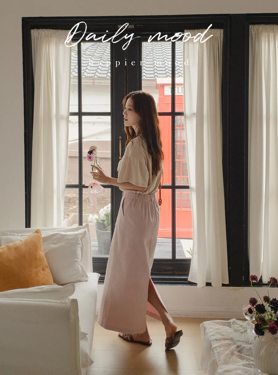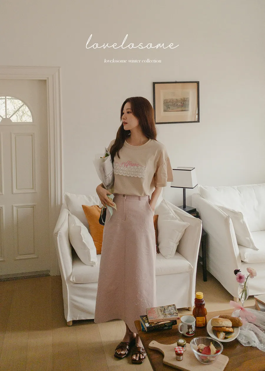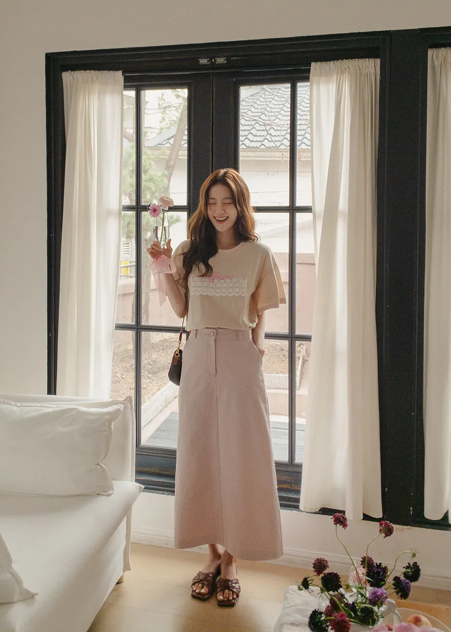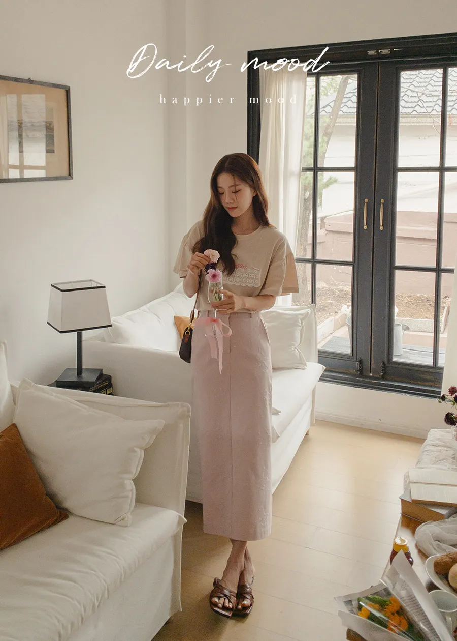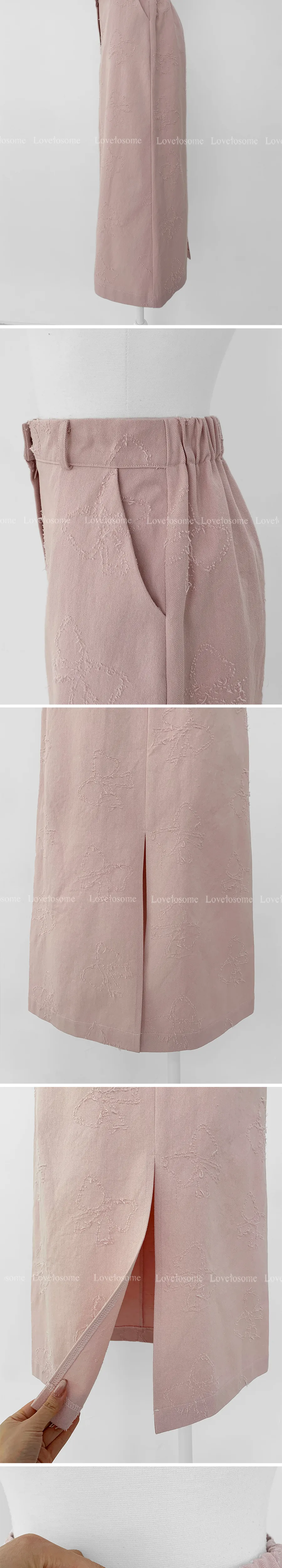魅力蝴蝶結刺繡H剪裁後開衩中長裙