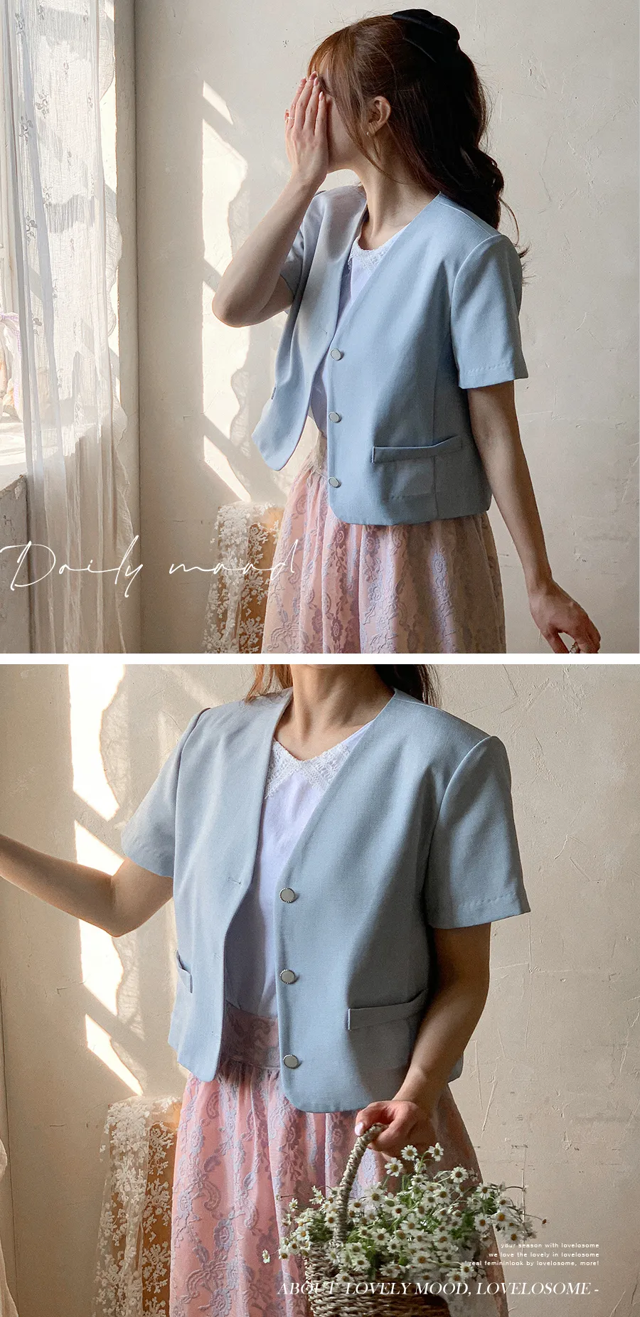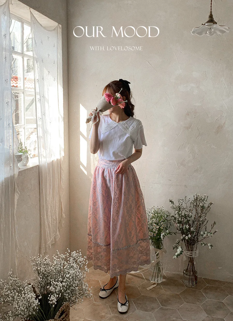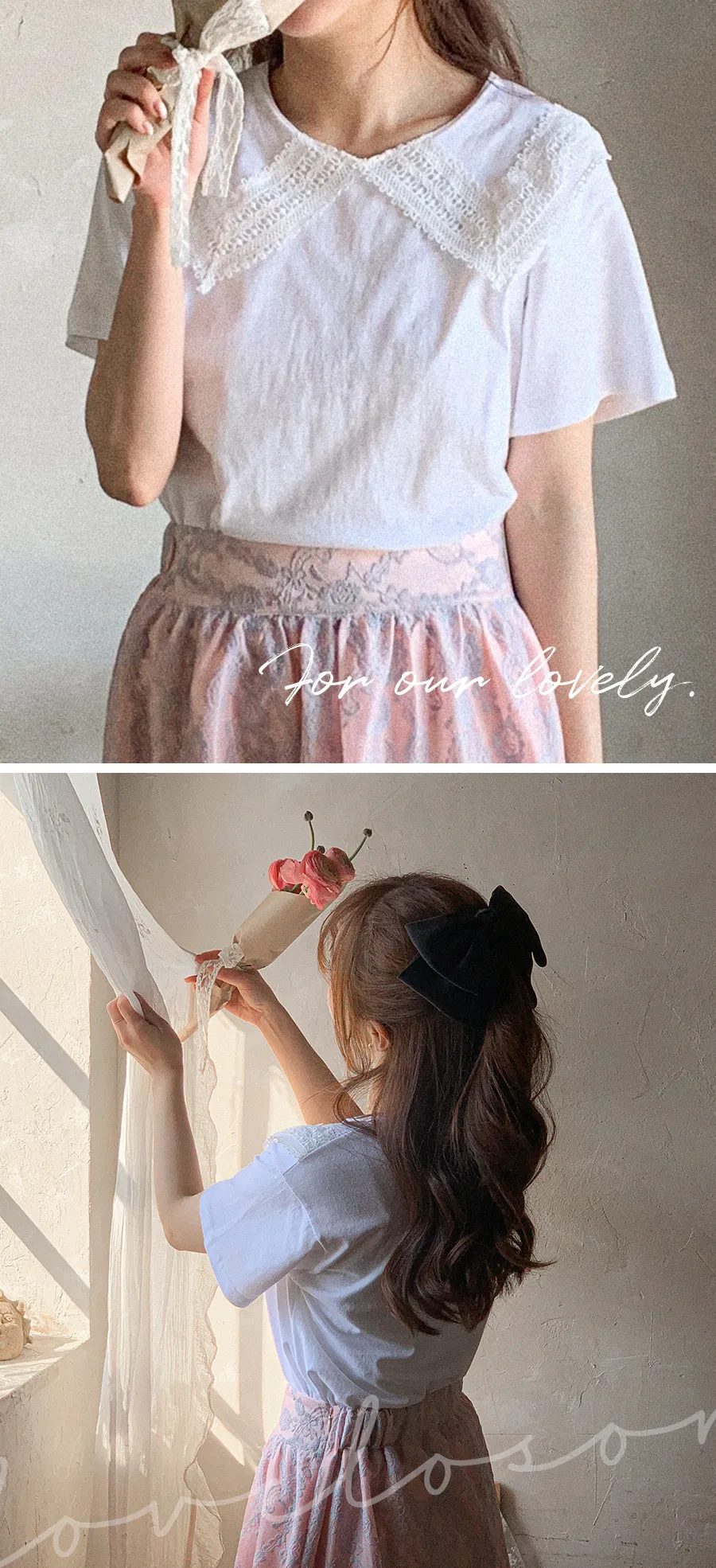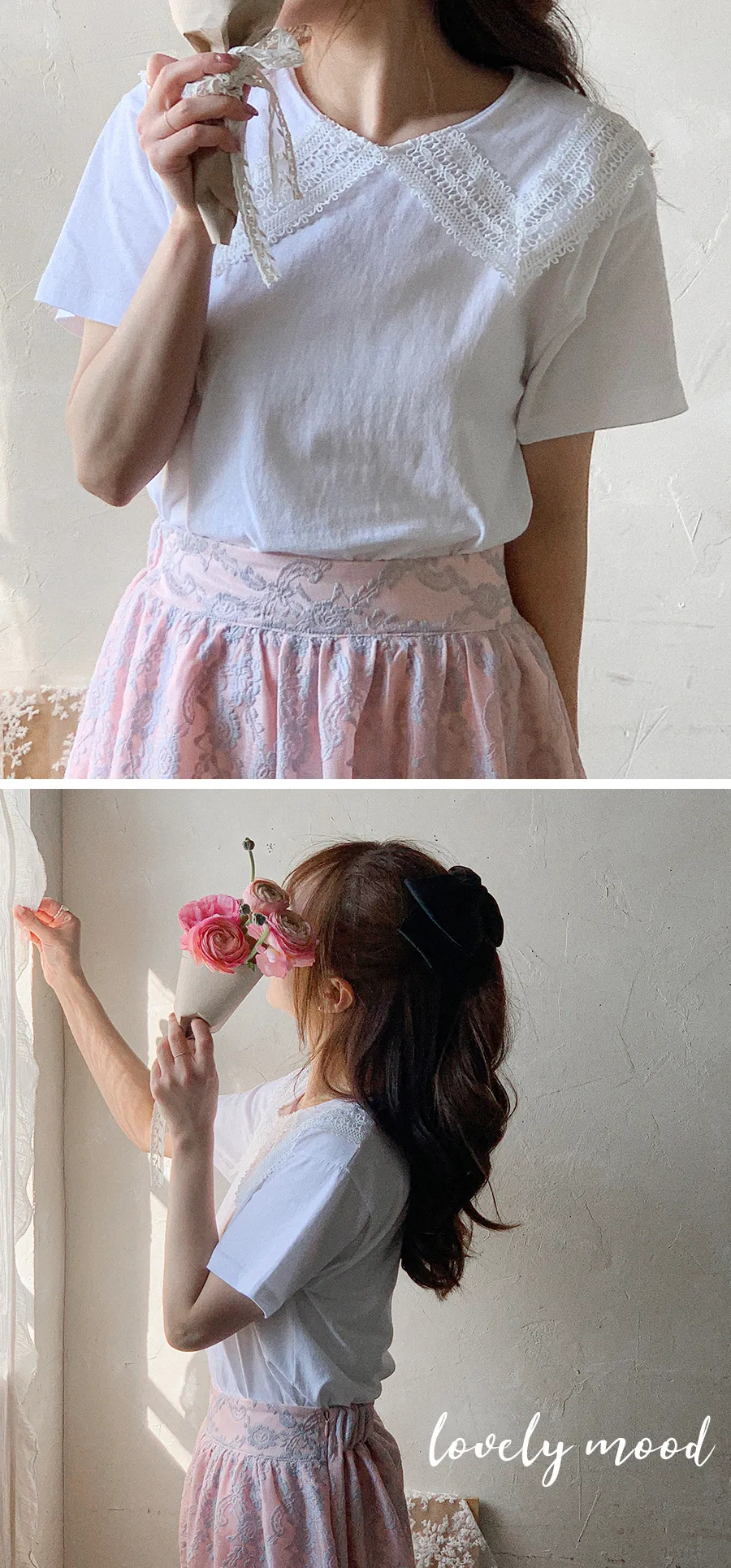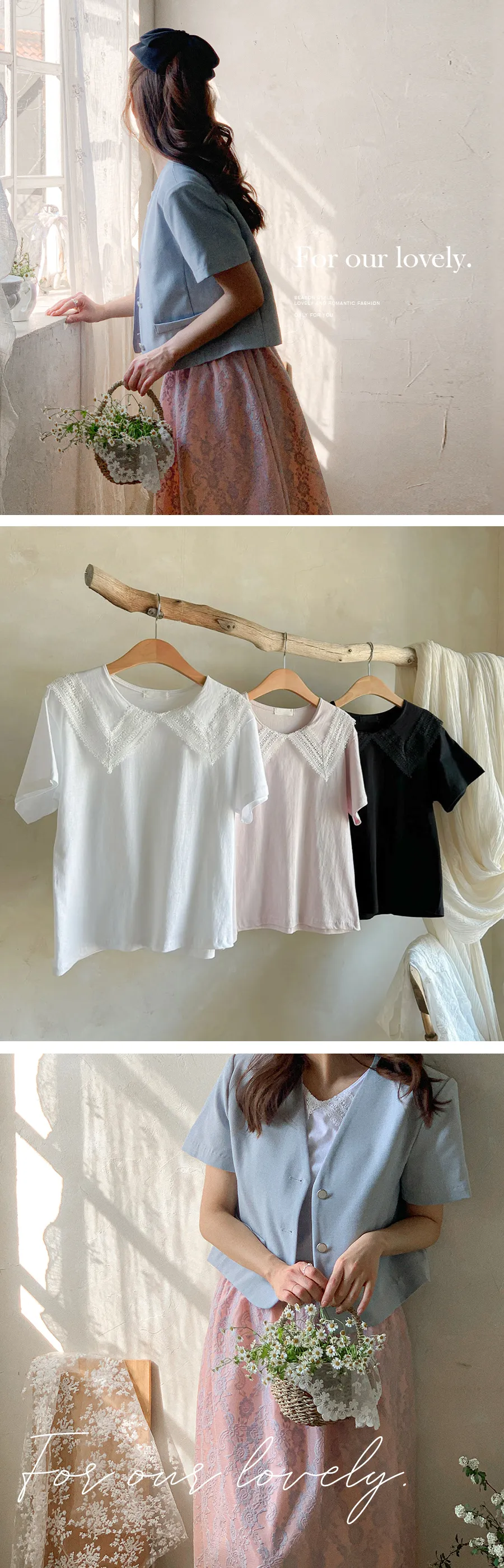 【可愛上衣,搭配領子蕾絲細節♡】【立體領子蕾絲編織!】【蕾絲大領,為素色的T卹增添了可愛點~♡】 【輪廓寬鬆,標準版型,袖長寬鬆,穿起來很舒服】