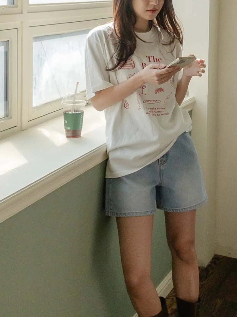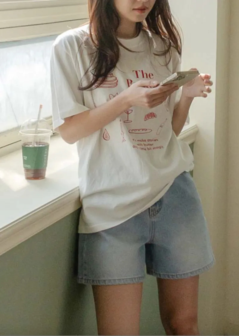 一款短袖 T 卹,印有迷人的印花:)俏皮的設計,可以單獨配戴,即使疊穿也很有存在感!標準長度,舒適的貼合感。 採用100%純棉製成,具有彈性和柔軟質感的上衣。