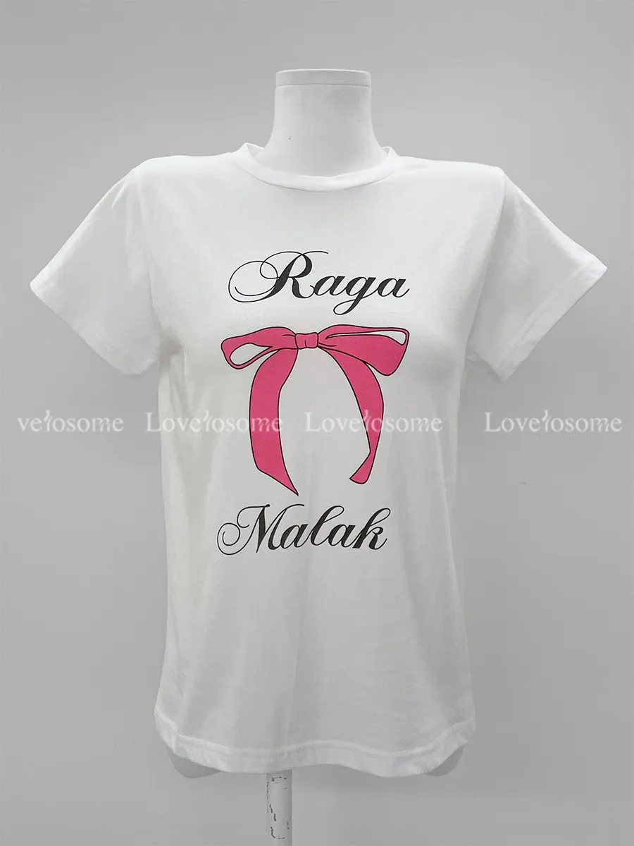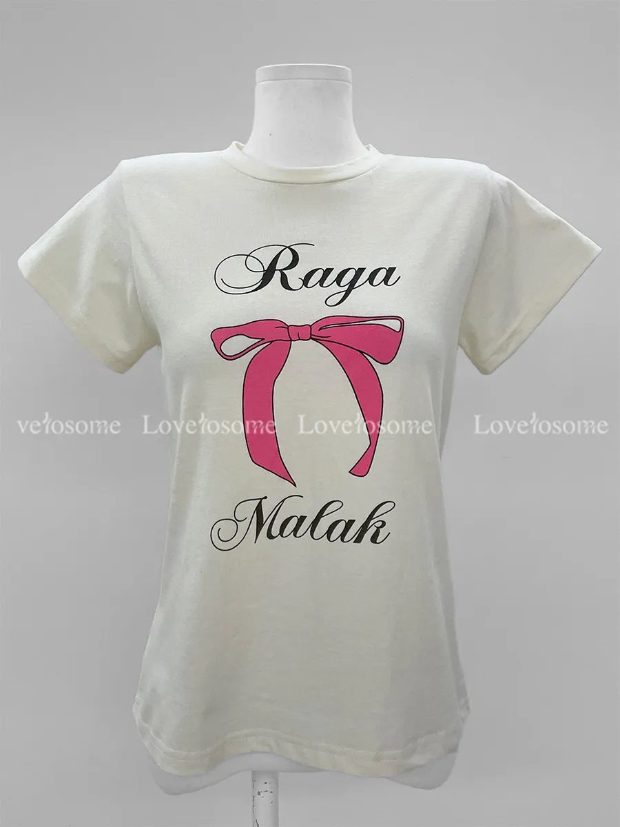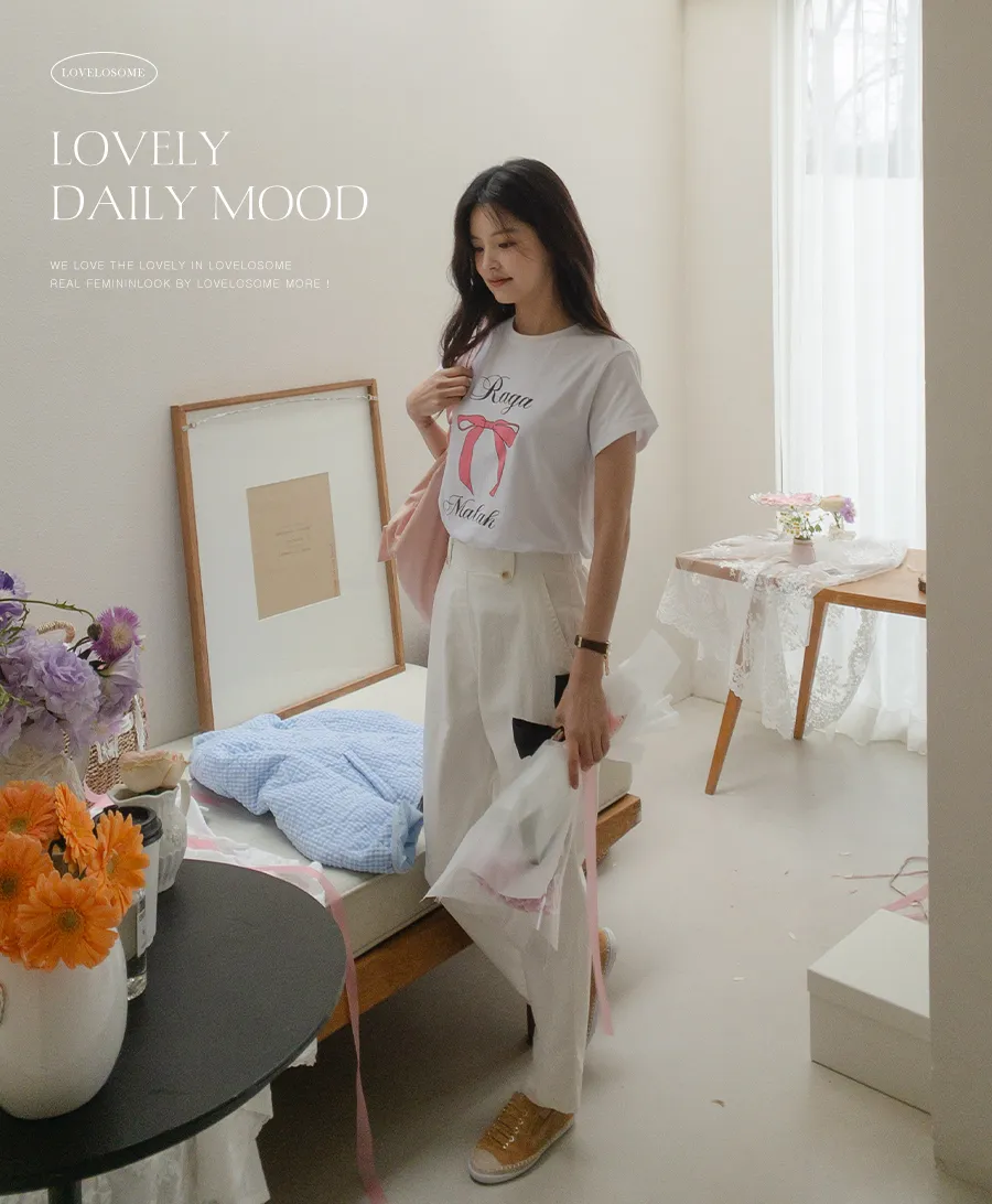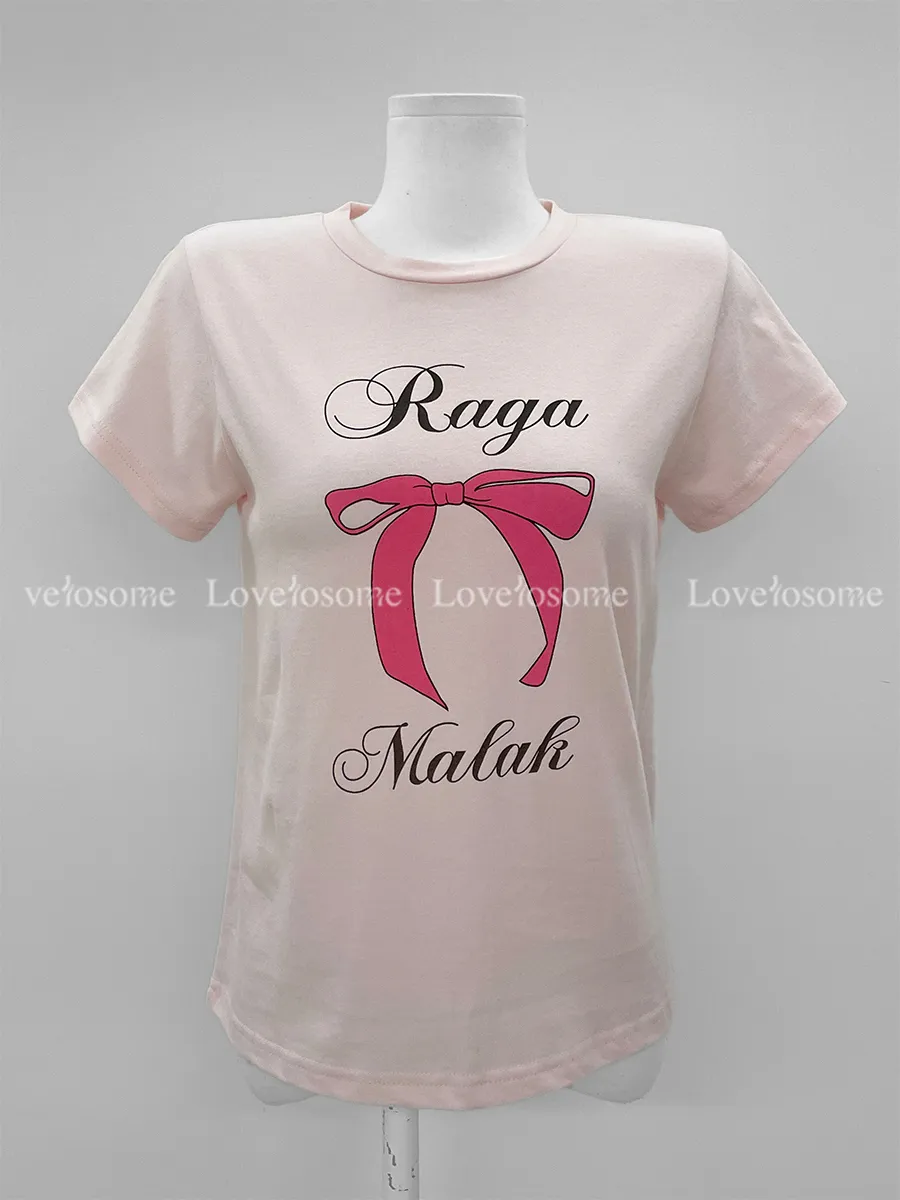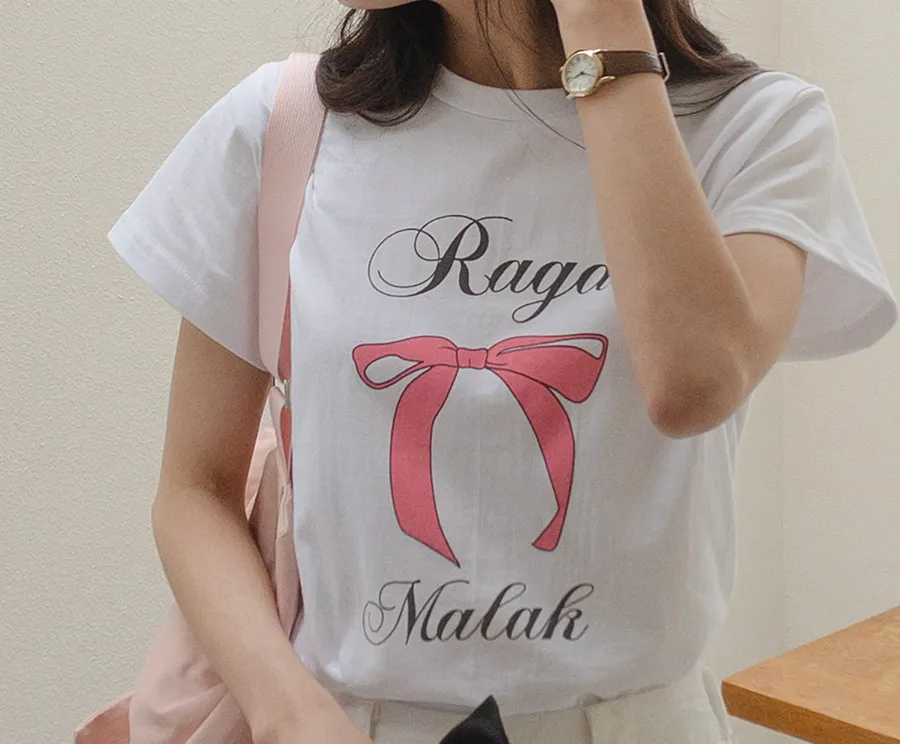 可愛粉紅絲帶印花短袖T卹,以基本版型和蝴蝶結的甜美短袖T卹。一款充滿可愛活潑情調的短袖T卹,俐落的圓領設計以及字母+絲帶的細節。