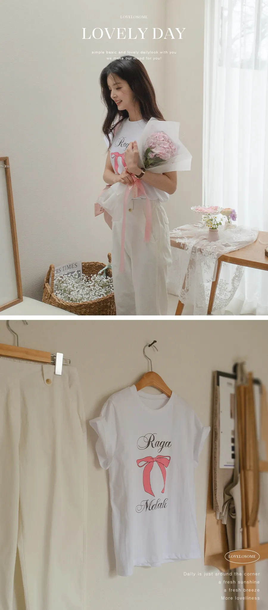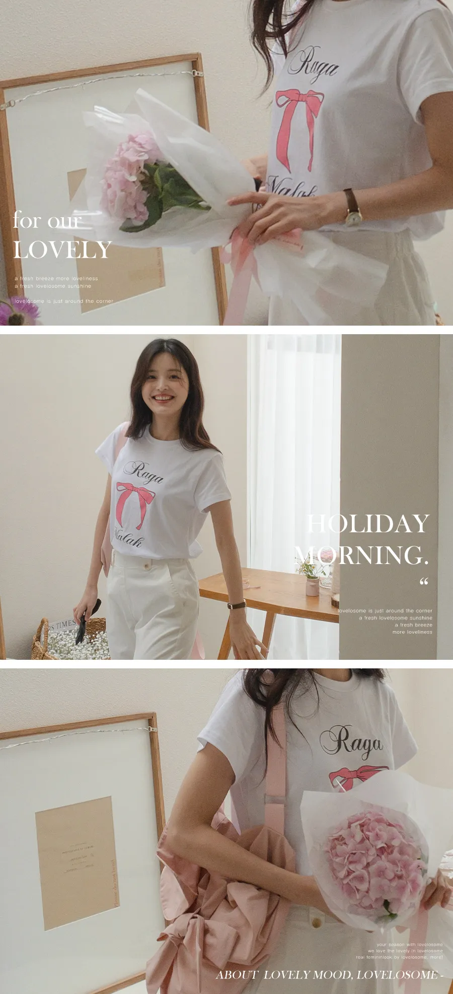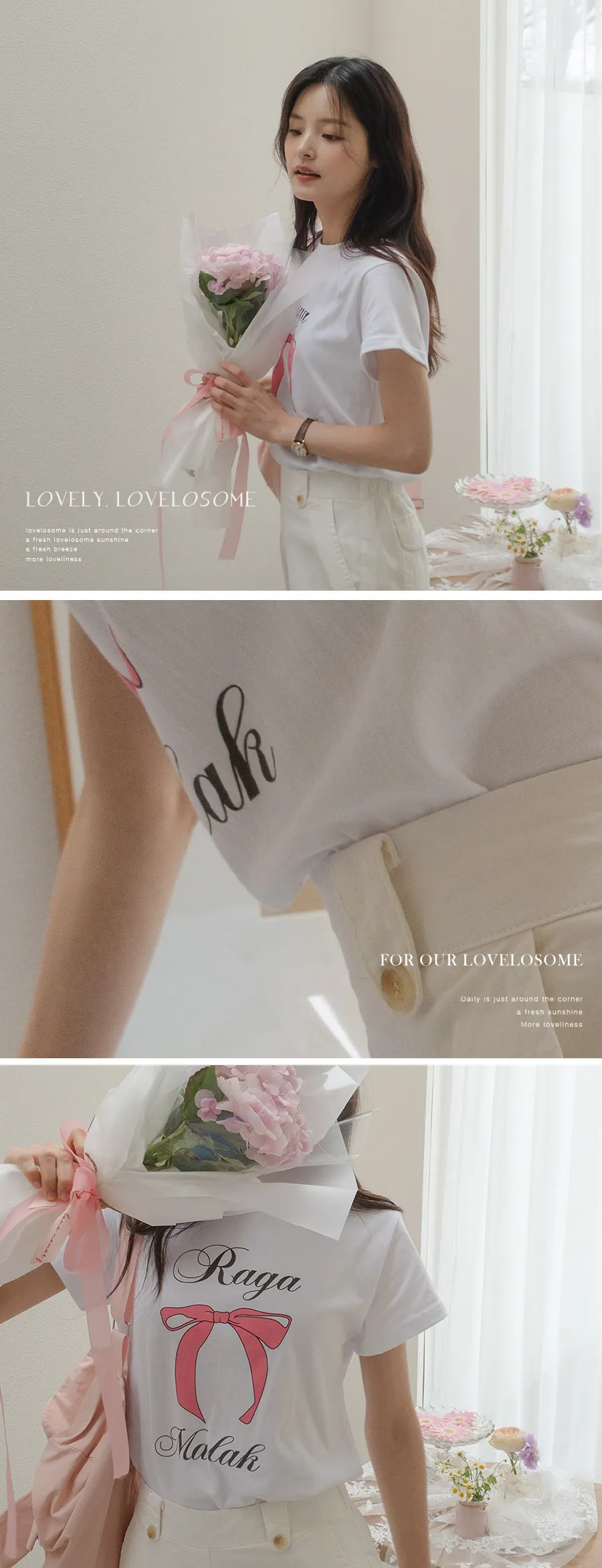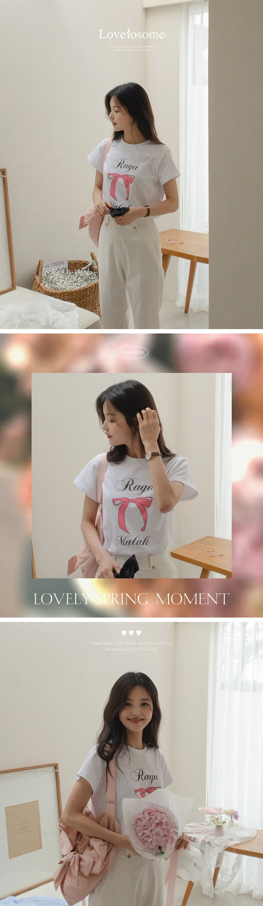 可愛粉紅絲帶印花短袖T卹,以基本版型和蝴蝶結的甜美短袖T卹。一款充滿可愛活潑情調的短袖T卹,俐落的圓領設計以及字母+絲帶的細節。