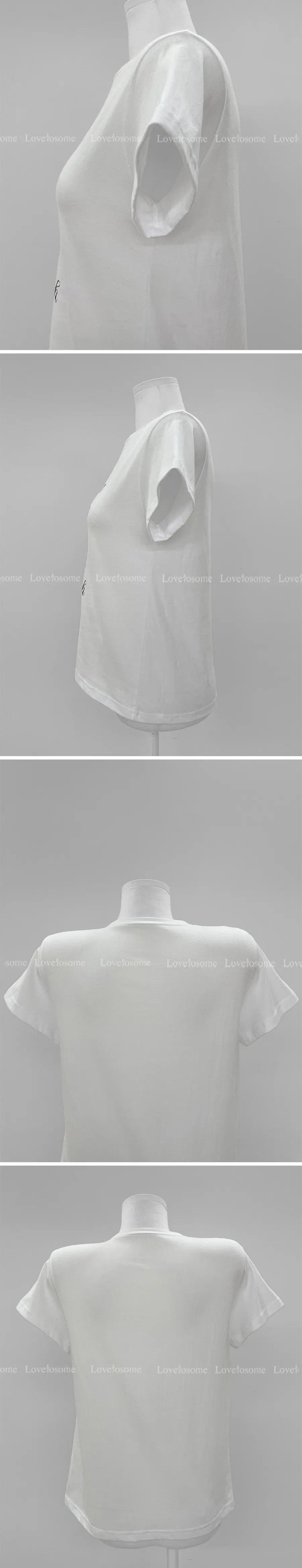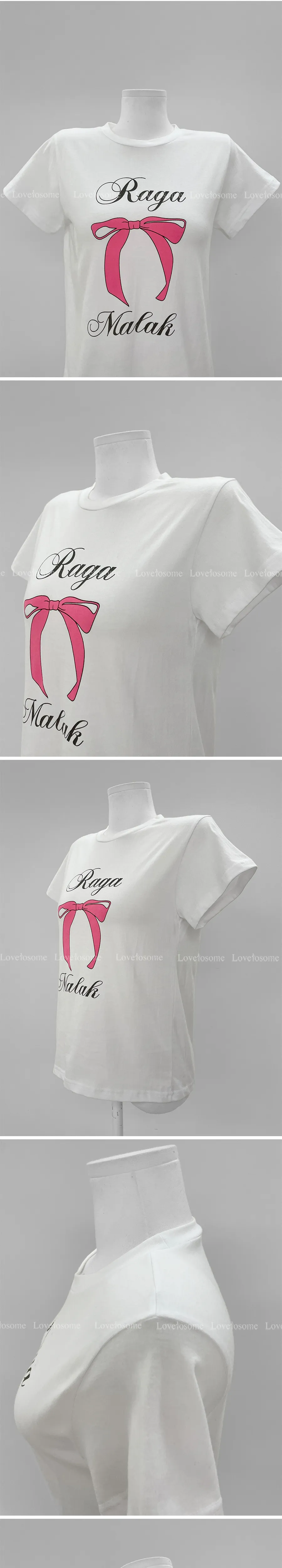 可愛活潑蝴蝶結字母印花圓領短袖上衣