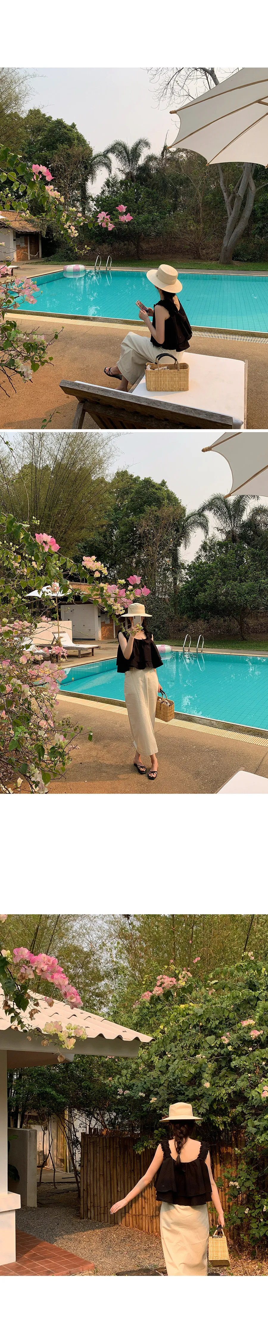 可愛鑲邊褶邊背心層次傘擺無袖上衣