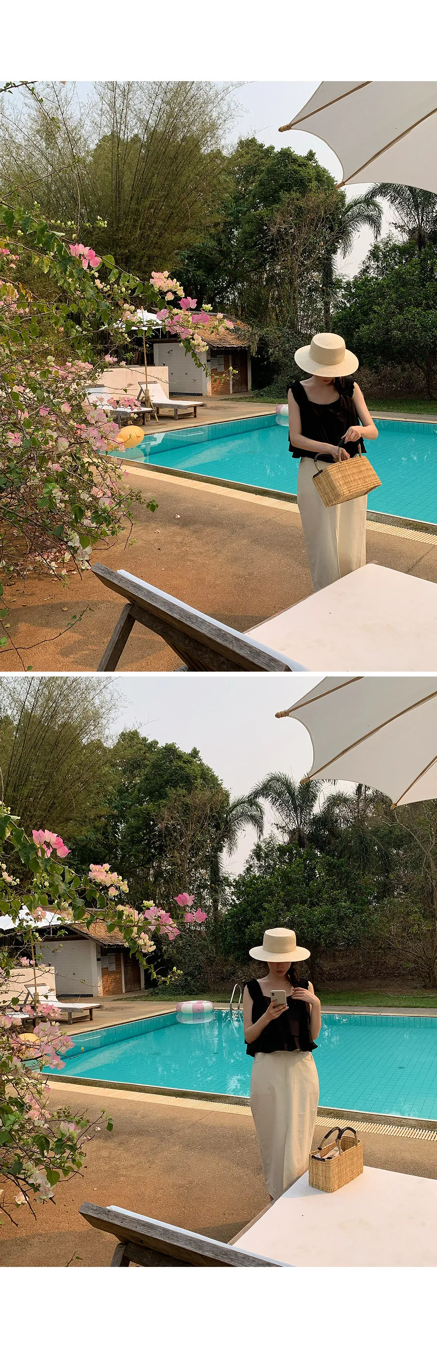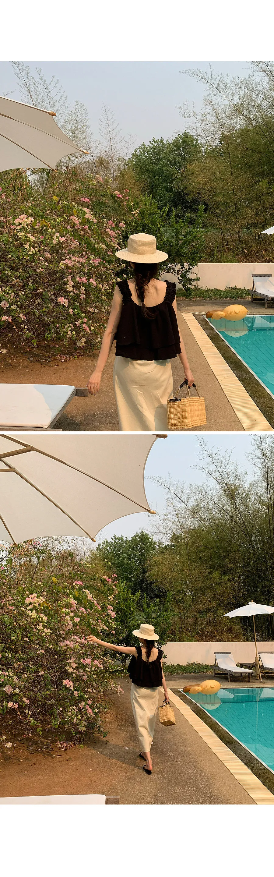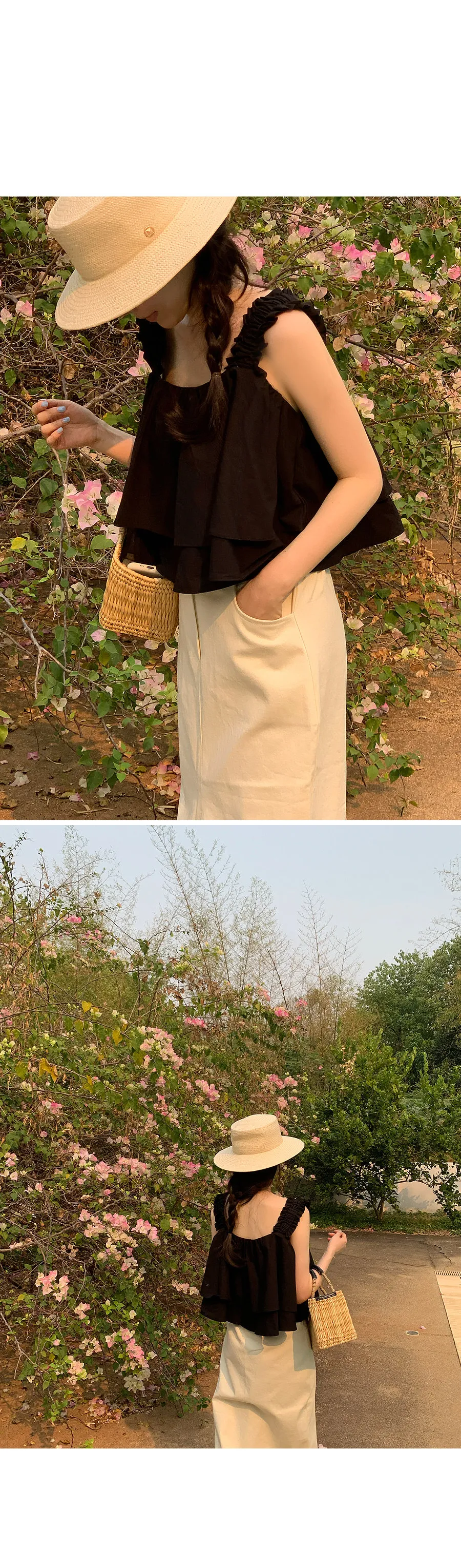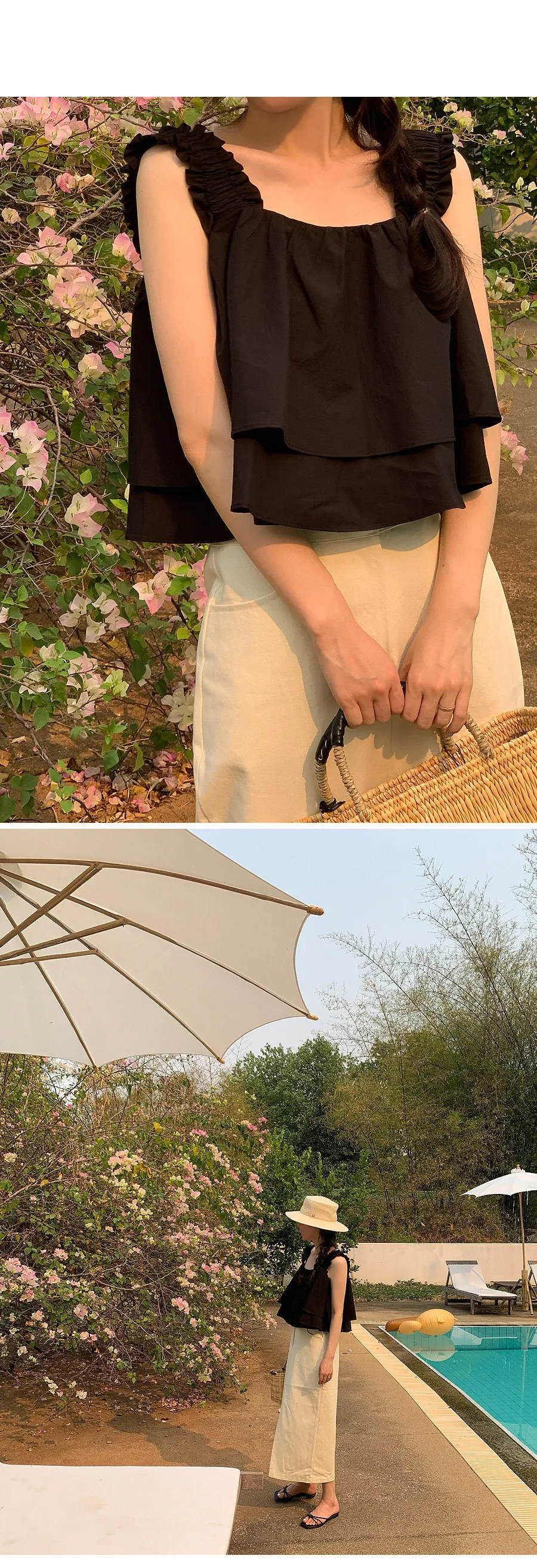 充滿可愛點的無袖上衣!帶狀褶邊背心細節,兩段式設計以其獨特、休閒的剪裁脫穎而出,營造出可愛的氛圍:)