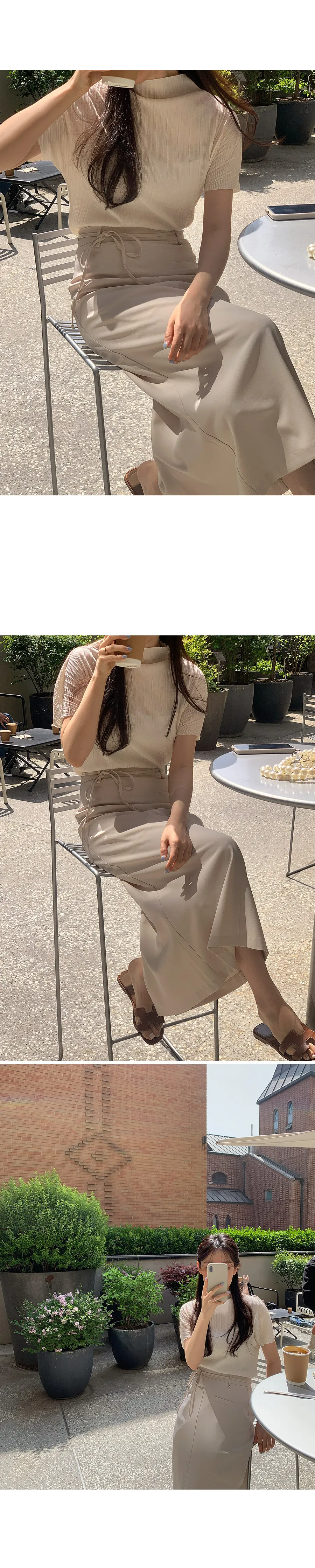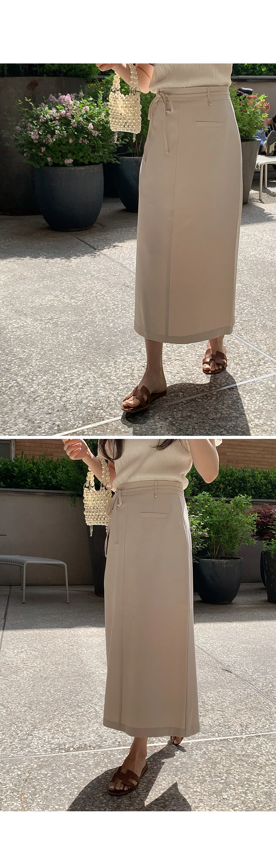 優雅剪裁細腰帶H剪裁後開衩中長裙