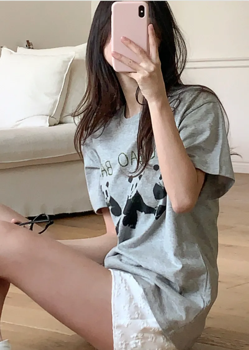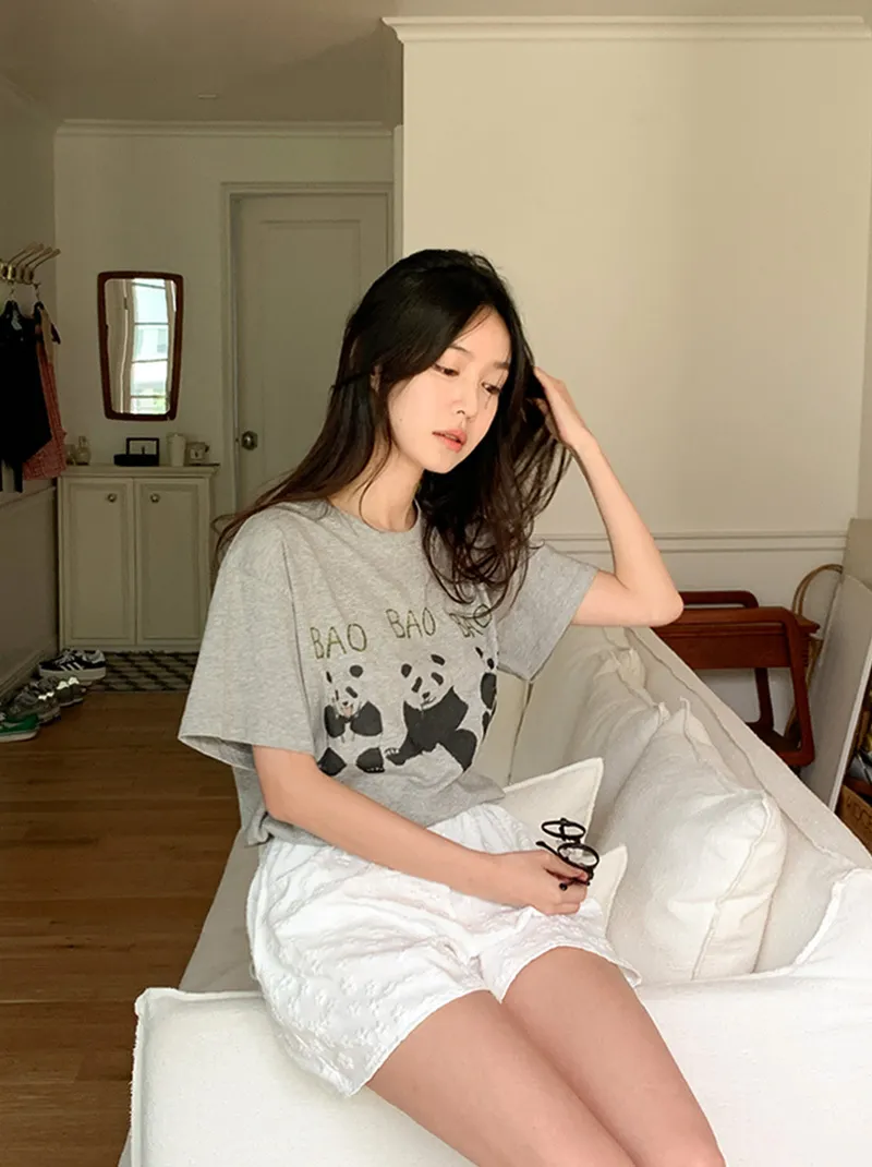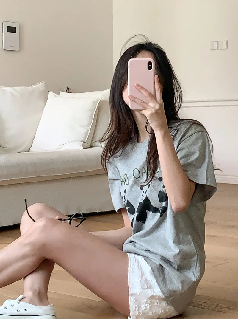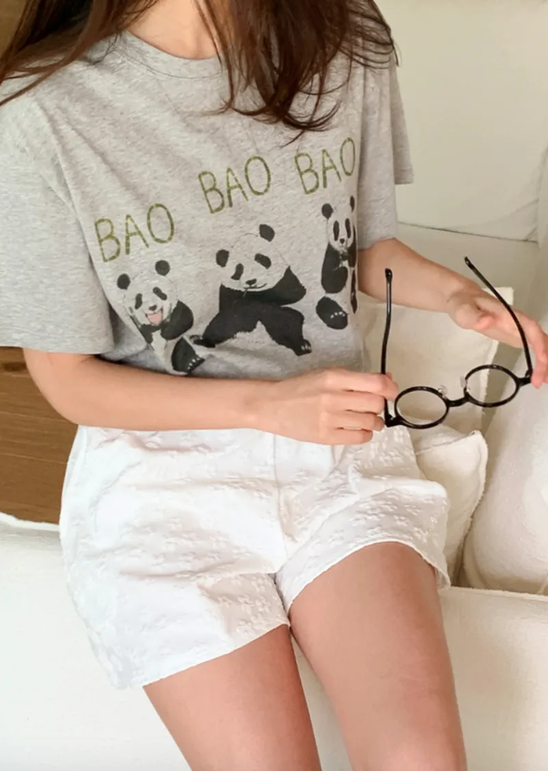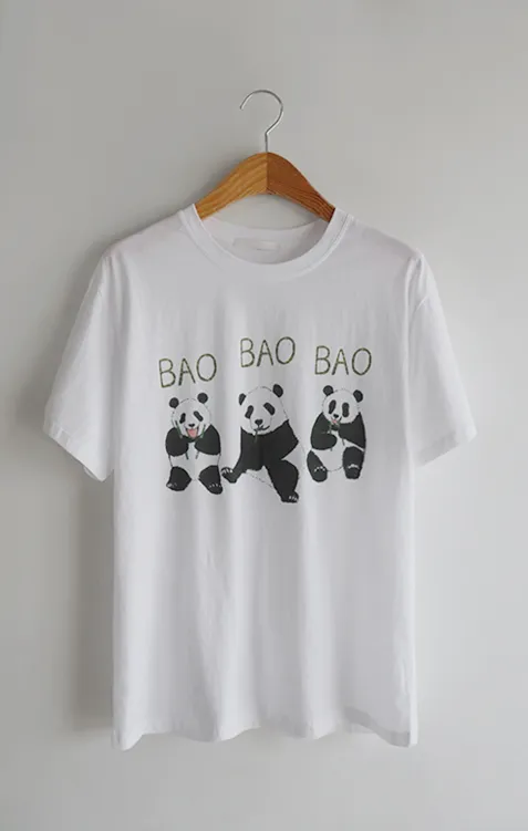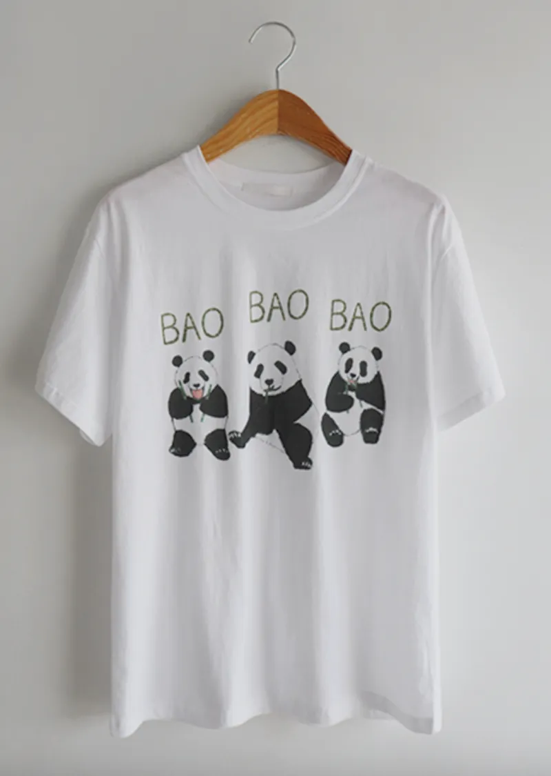 有可愛大印花點的 T 卹:) 輪廓休閒,穿著舒適。 由 100% 棉製成,穿著舒適。 適度寬鬆的廓形,無緊繃感! 簡潔的圓領非常適合日常穿著。 可愛的熊貓印花非常適合為造型增添活潑氣息。