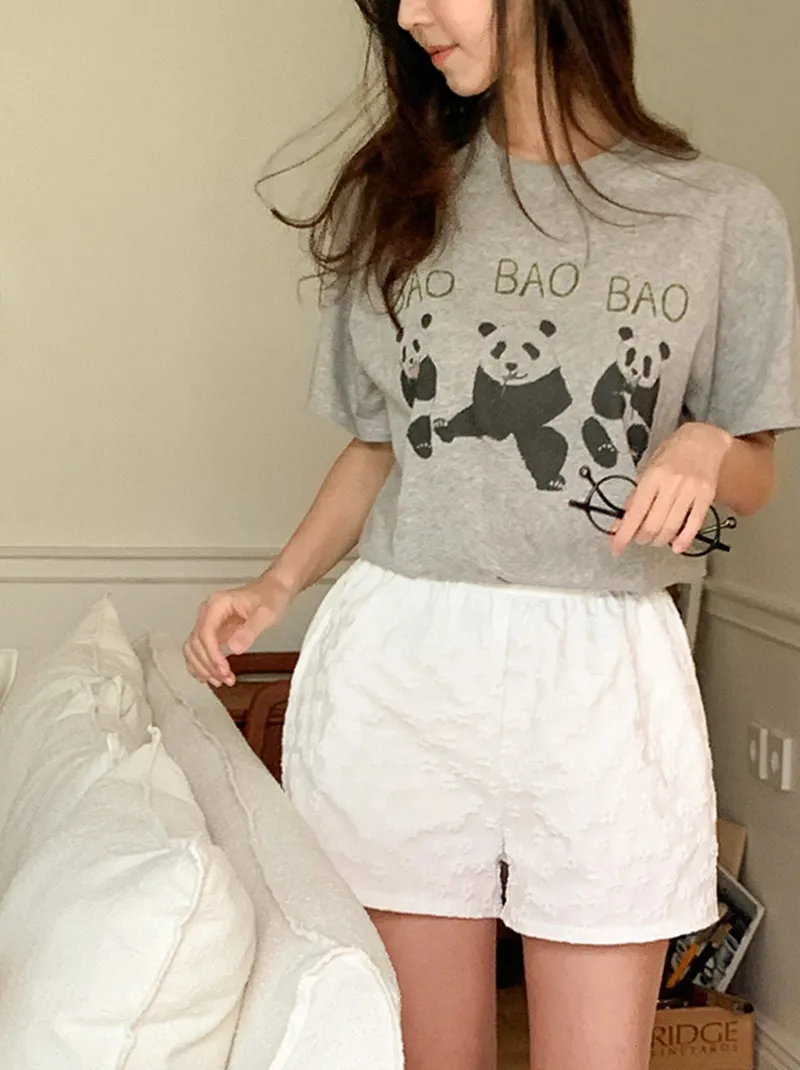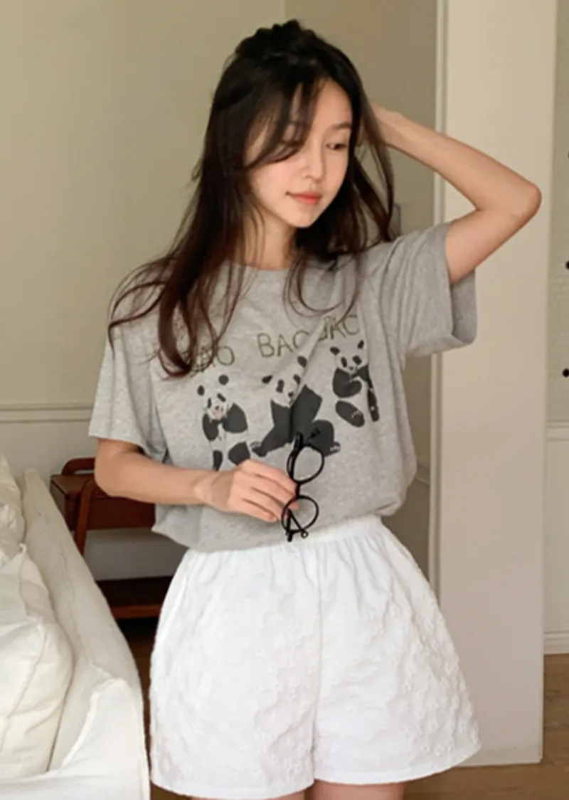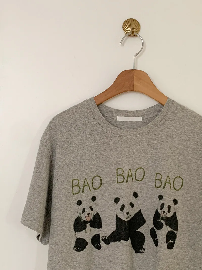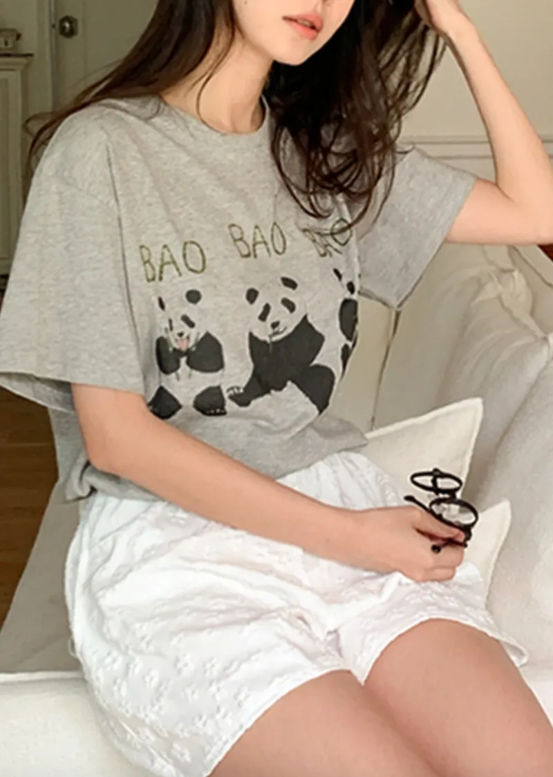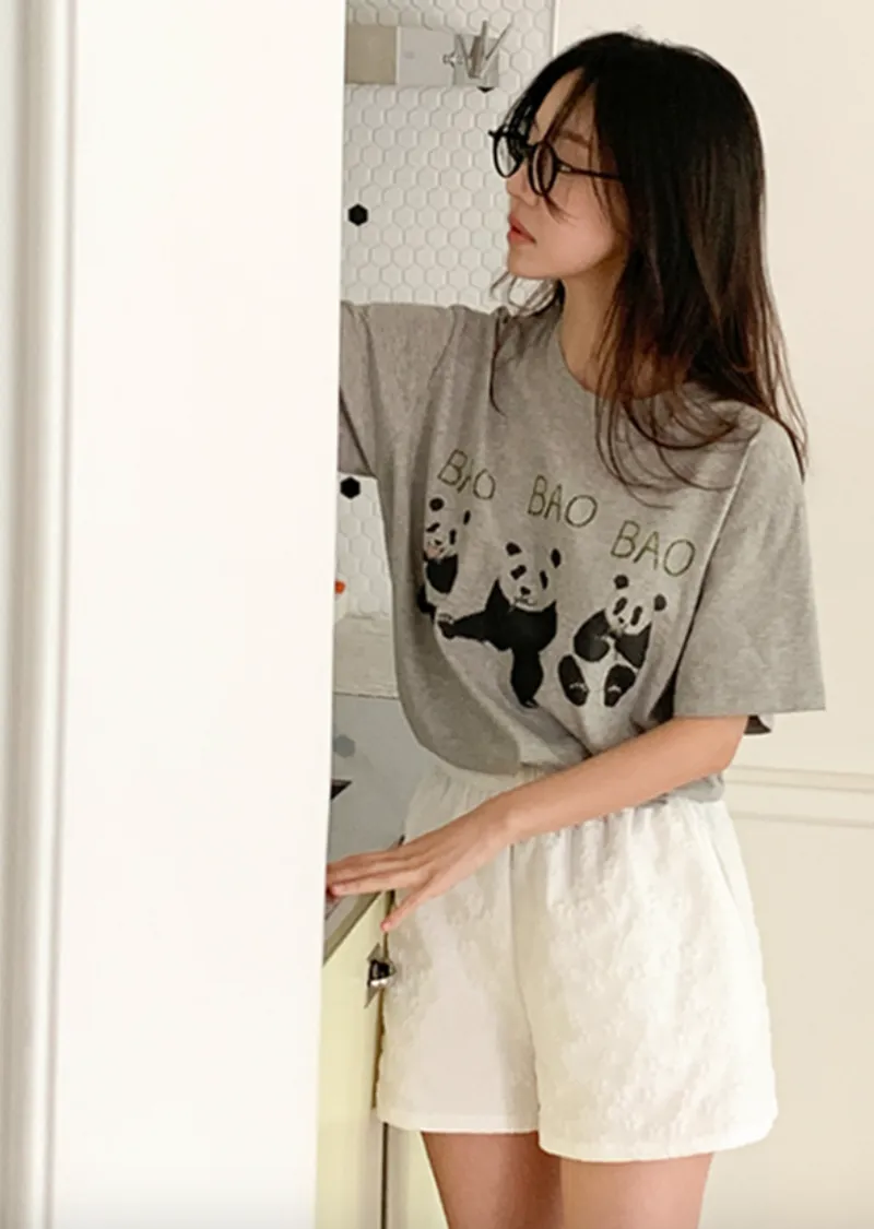 有可愛大印花點的 T 卹:) 輪廓休閒,穿著舒適。 由 100% 棉製成,穿著舒適。 適度寬鬆的廓形,無緊繃感! 簡潔的圓領非常適合日常穿著。 可愛的熊貓印花非常適合為造型增添活潑氣息。