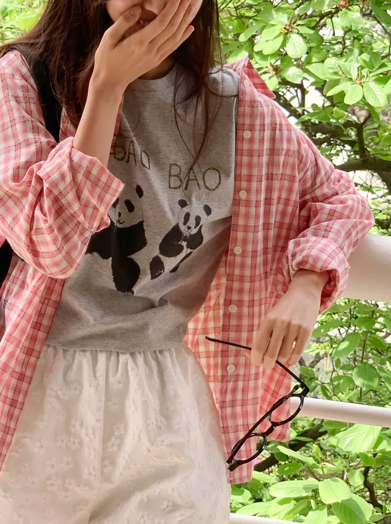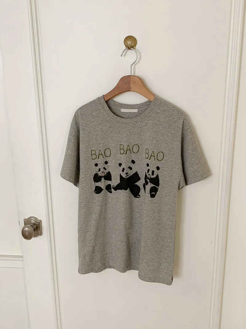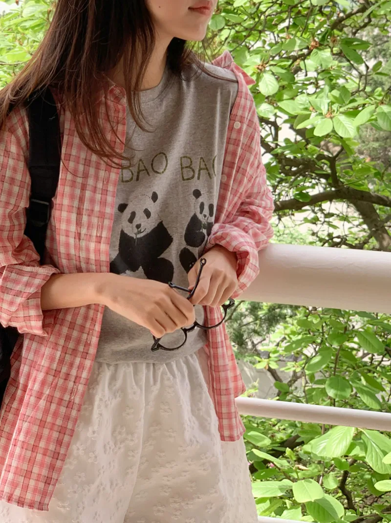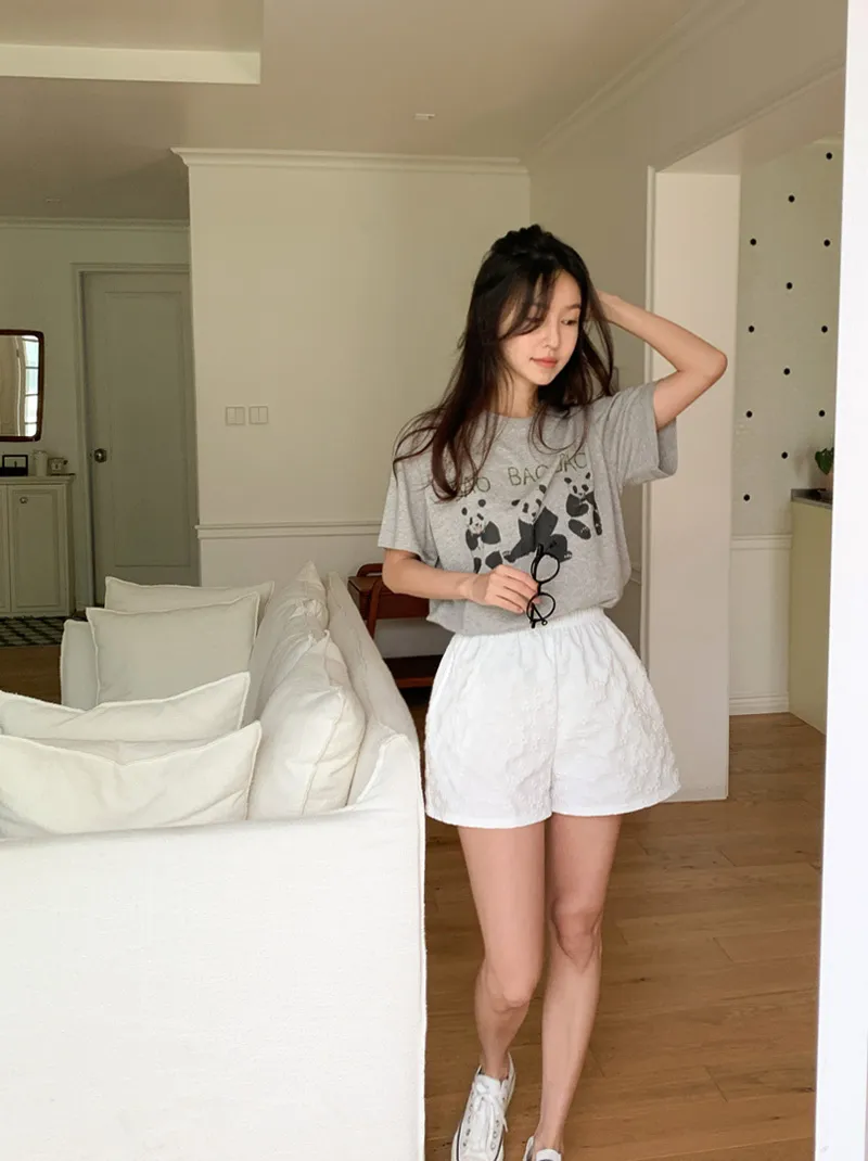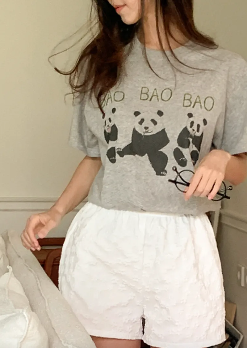 有可愛大印花點的 T 卹:) 輪廓休閒,穿著舒適。 由 100% 棉製成,穿著舒適。 適度寬鬆的廓形,無緊繃感! 簡潔的圓領非常適合日常穿著。 可愛的熊貓印花非常適合為造型增添活潑氣息。