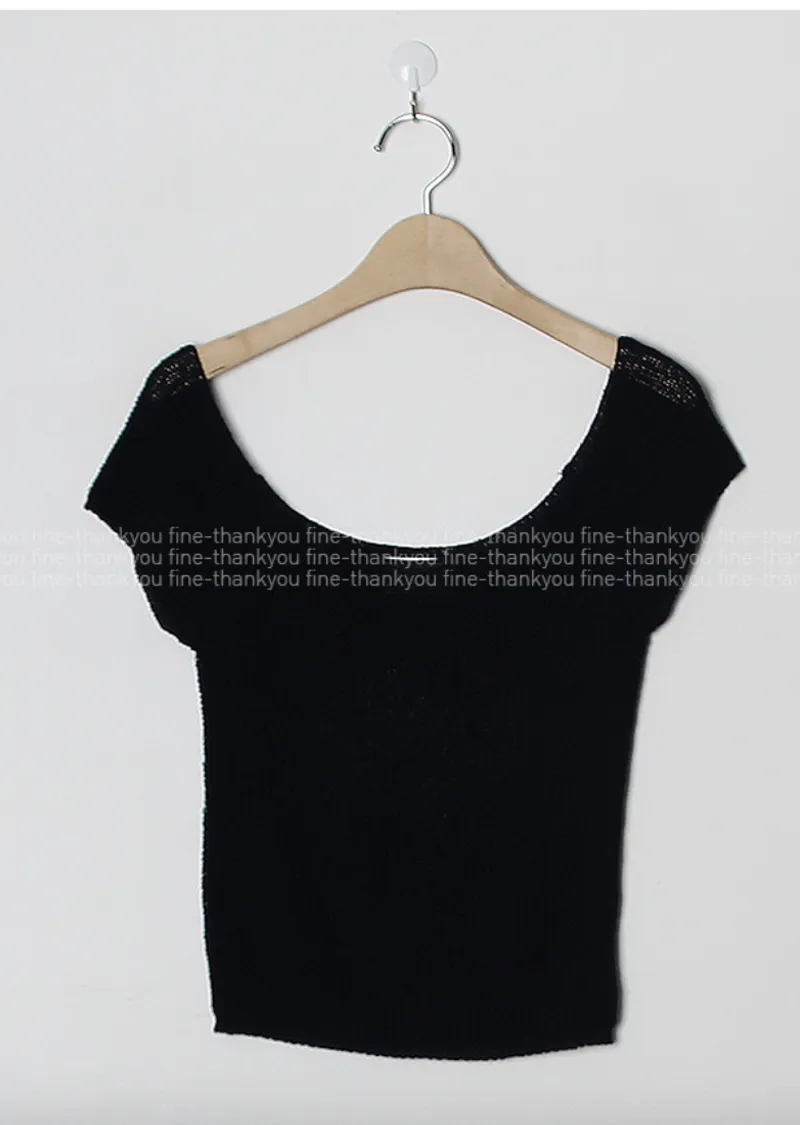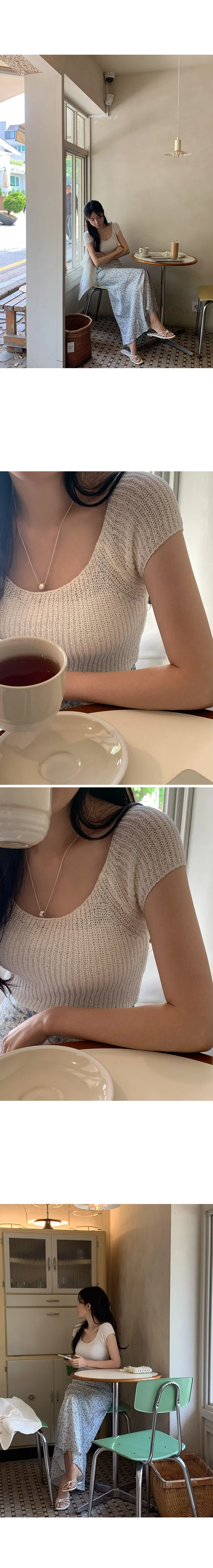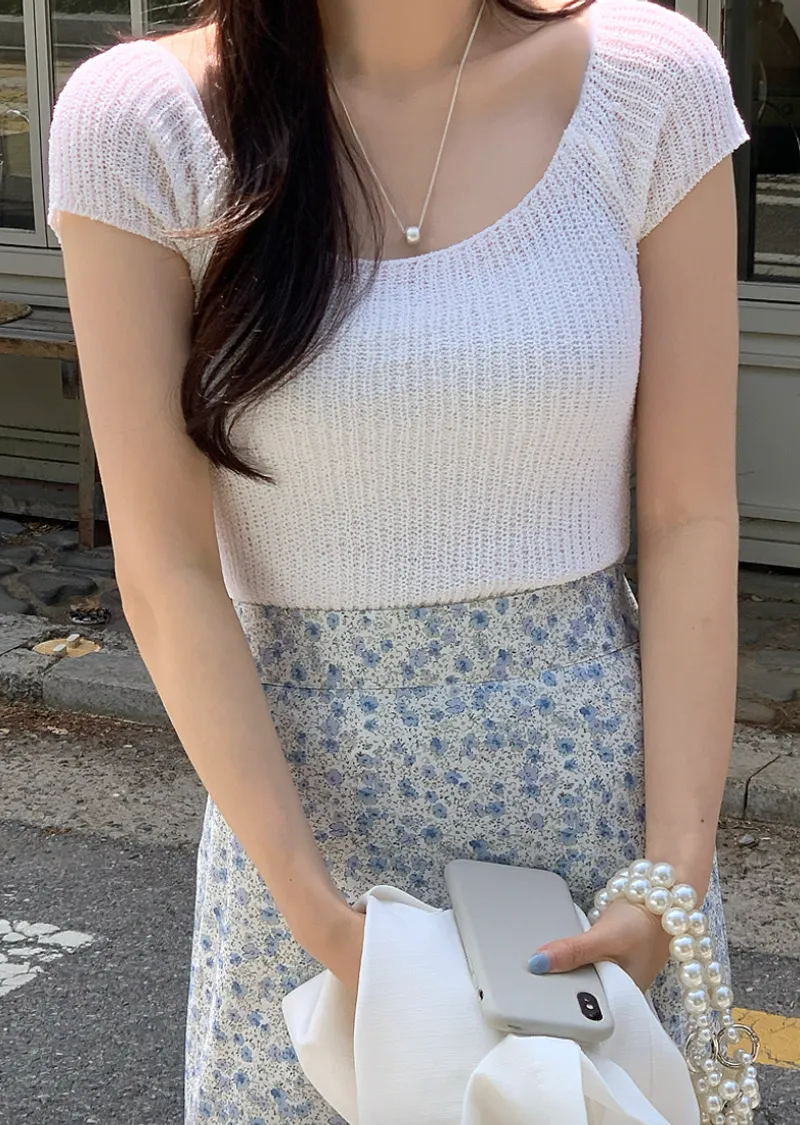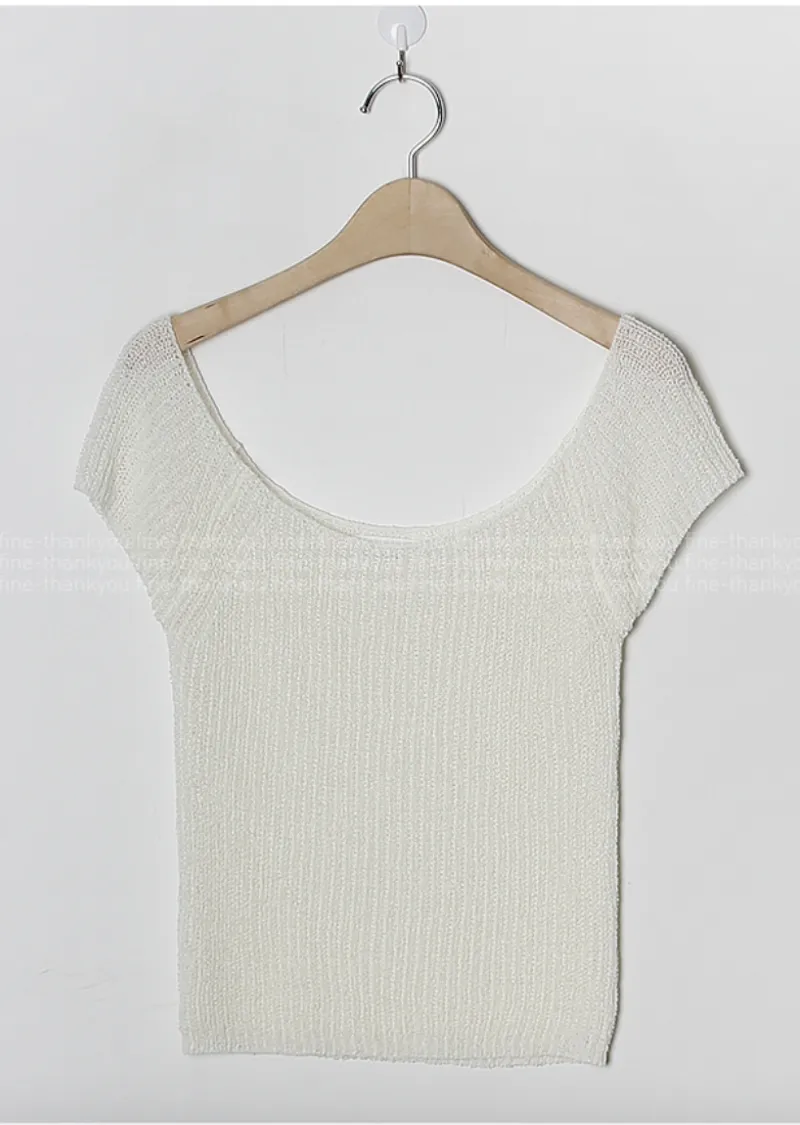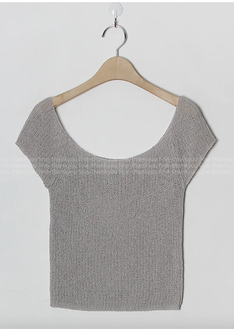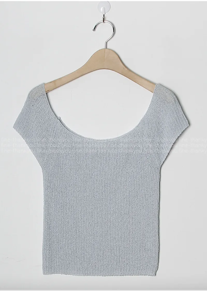 柔美U領薄款短袖針織上衣