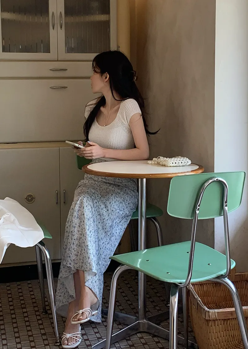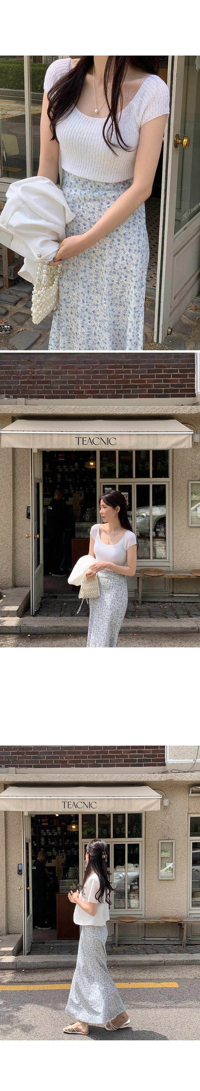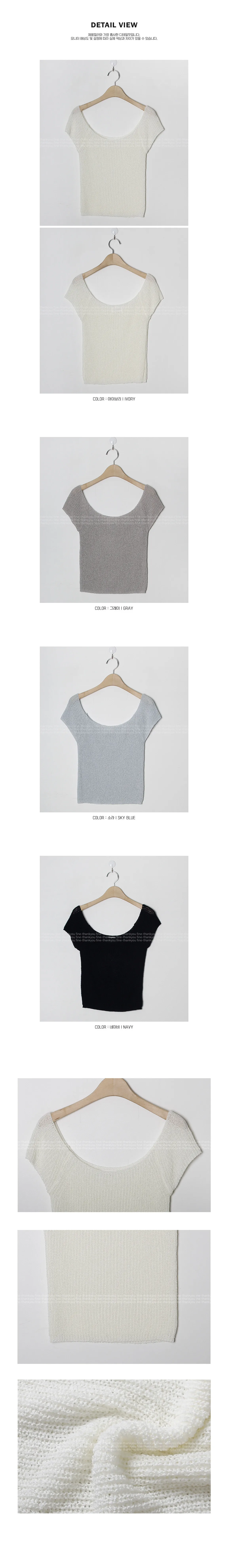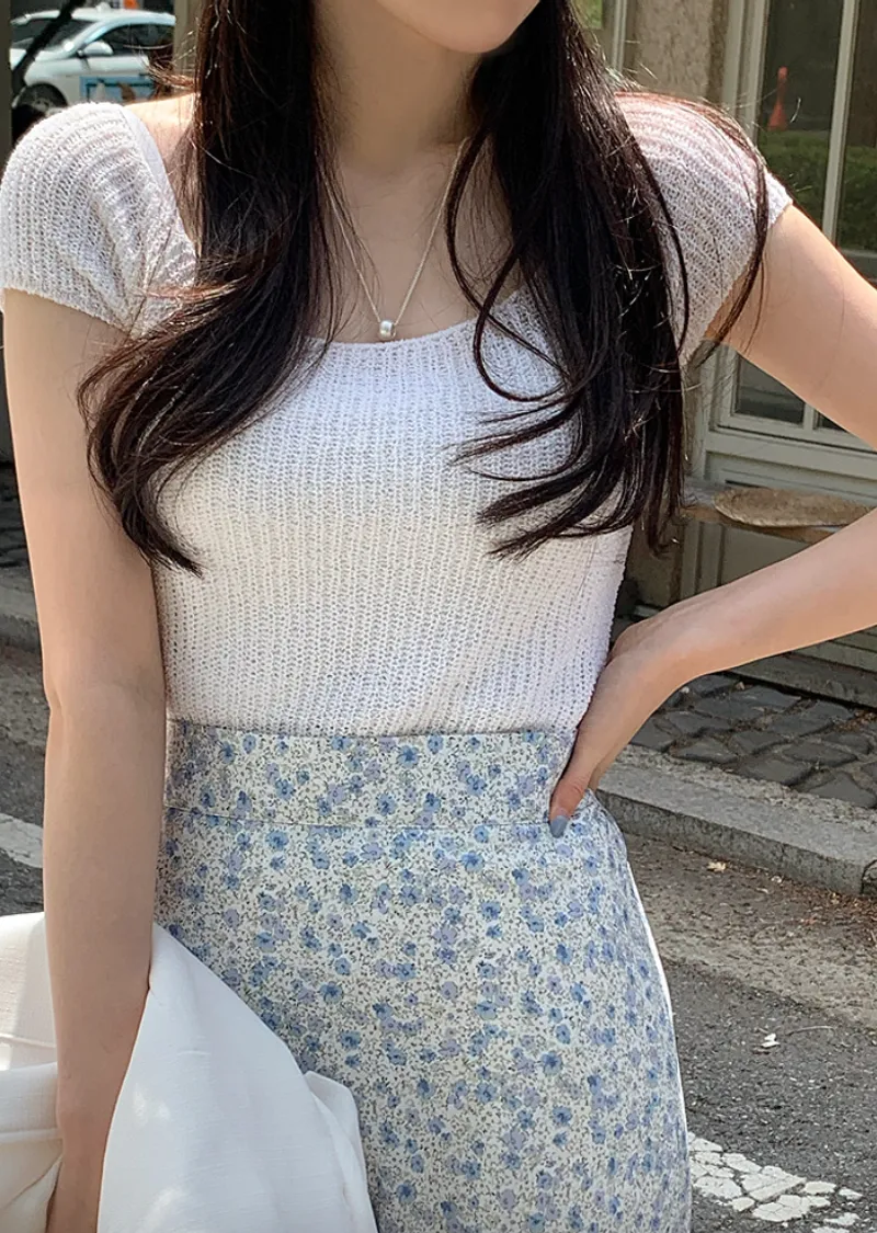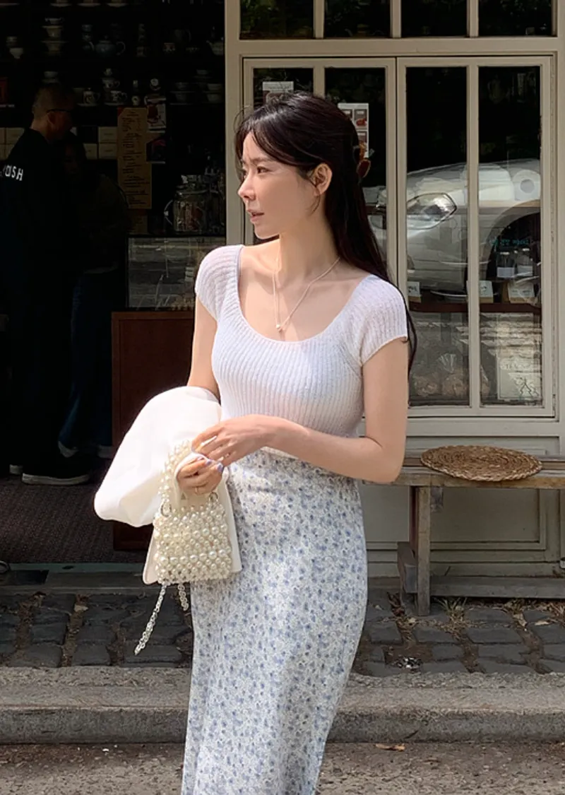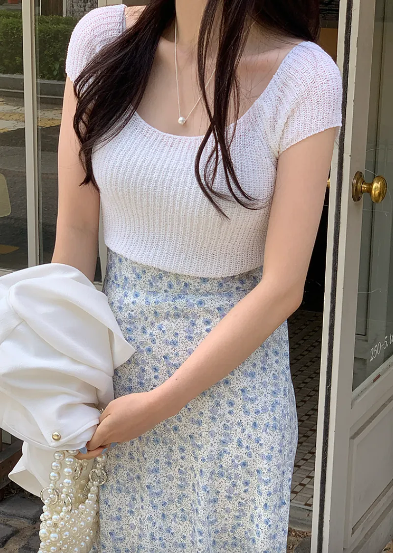 柔美U領薄款短袖針織上衣