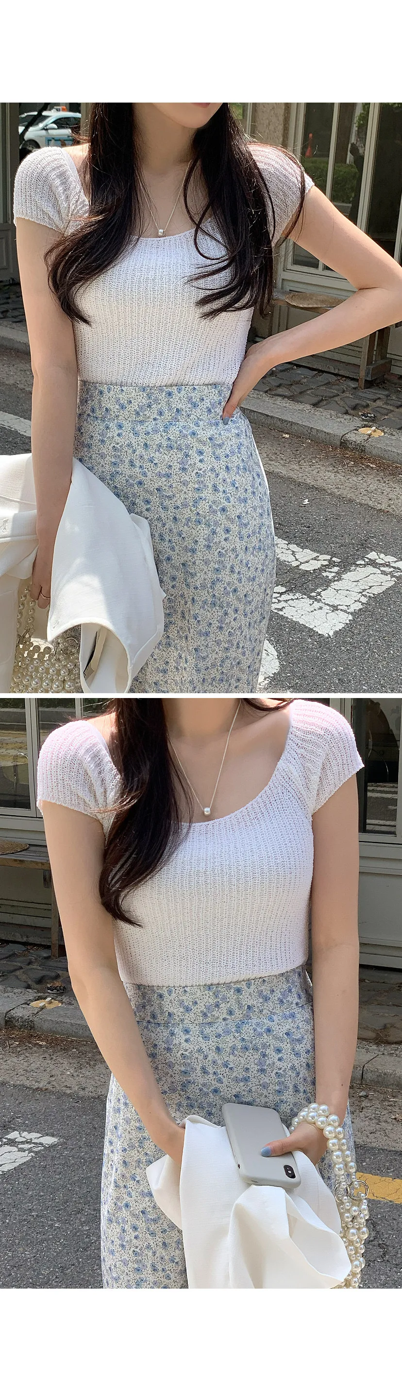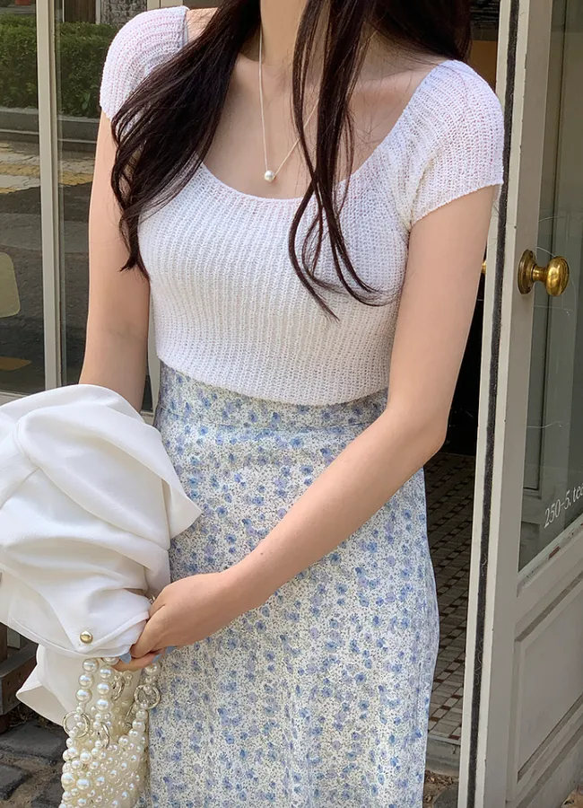 柔美U領薄款短袖針織上衣