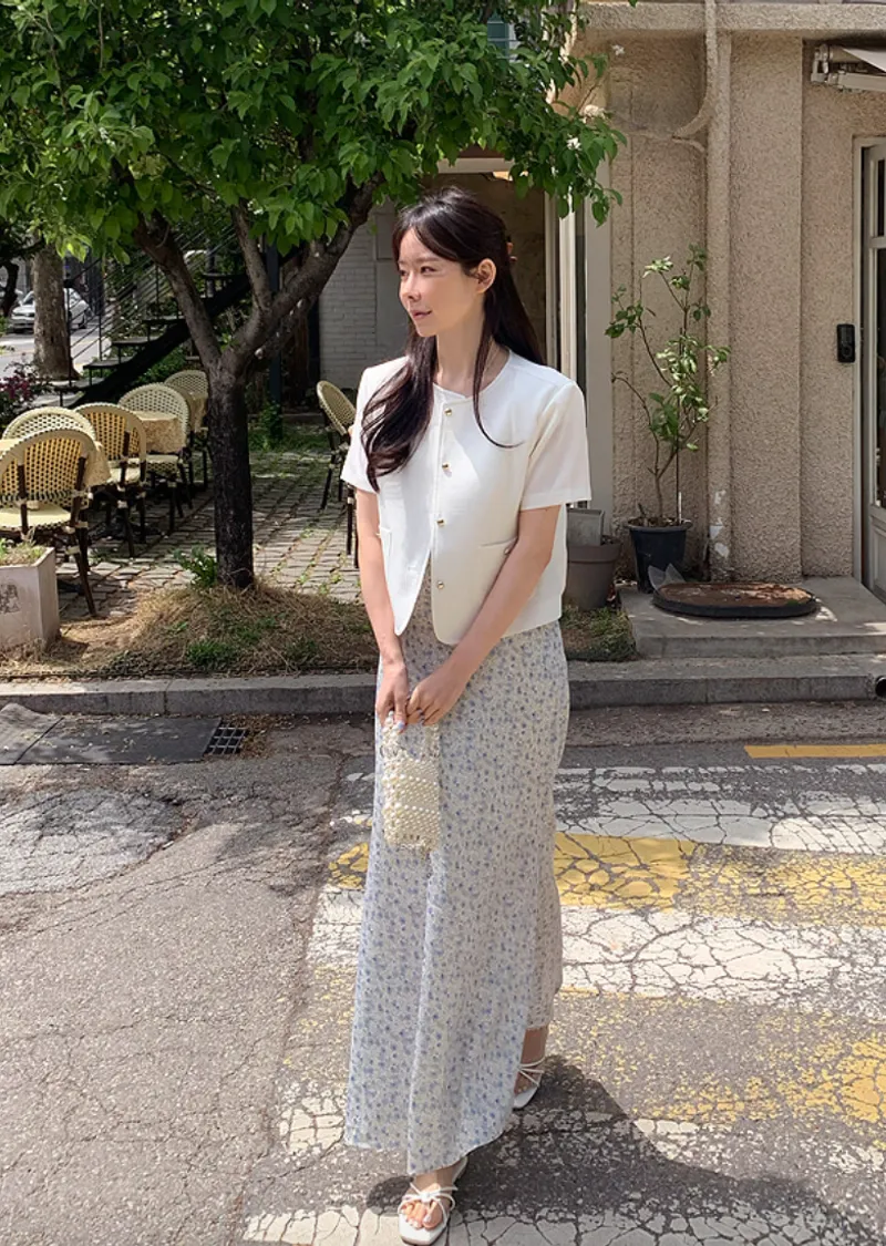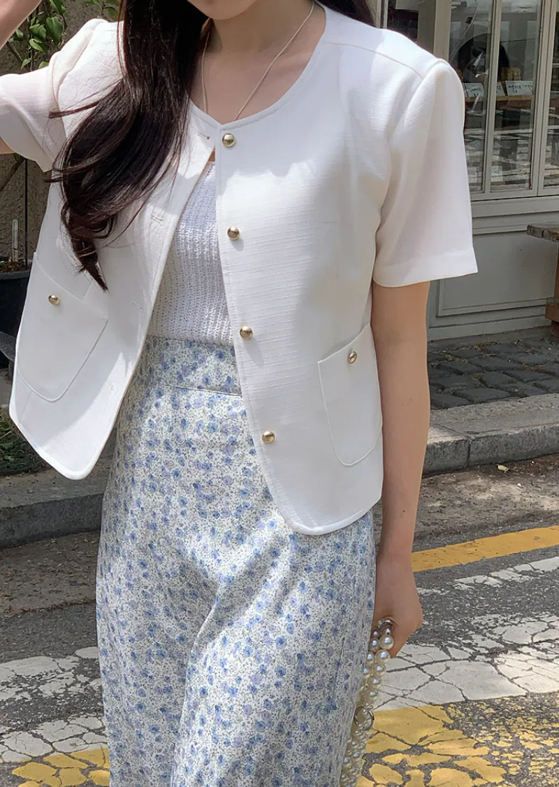 簡約奢華輪廓金扣短袖外套
